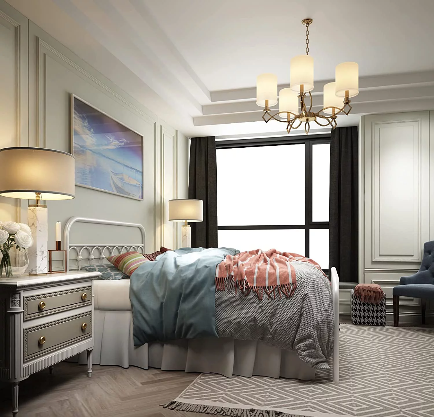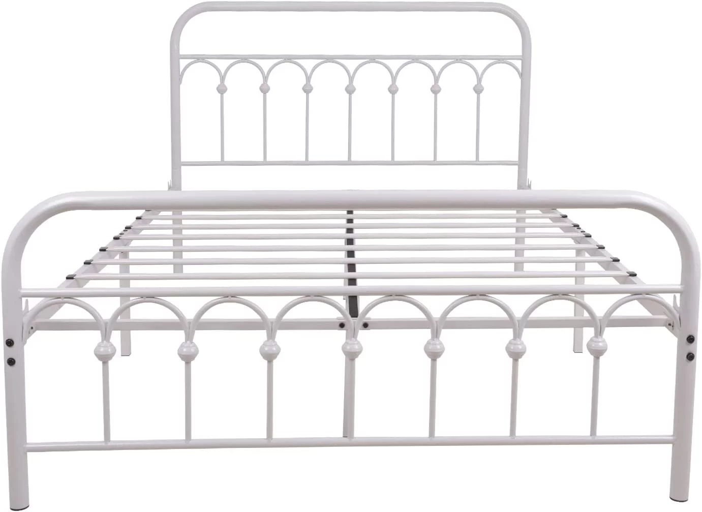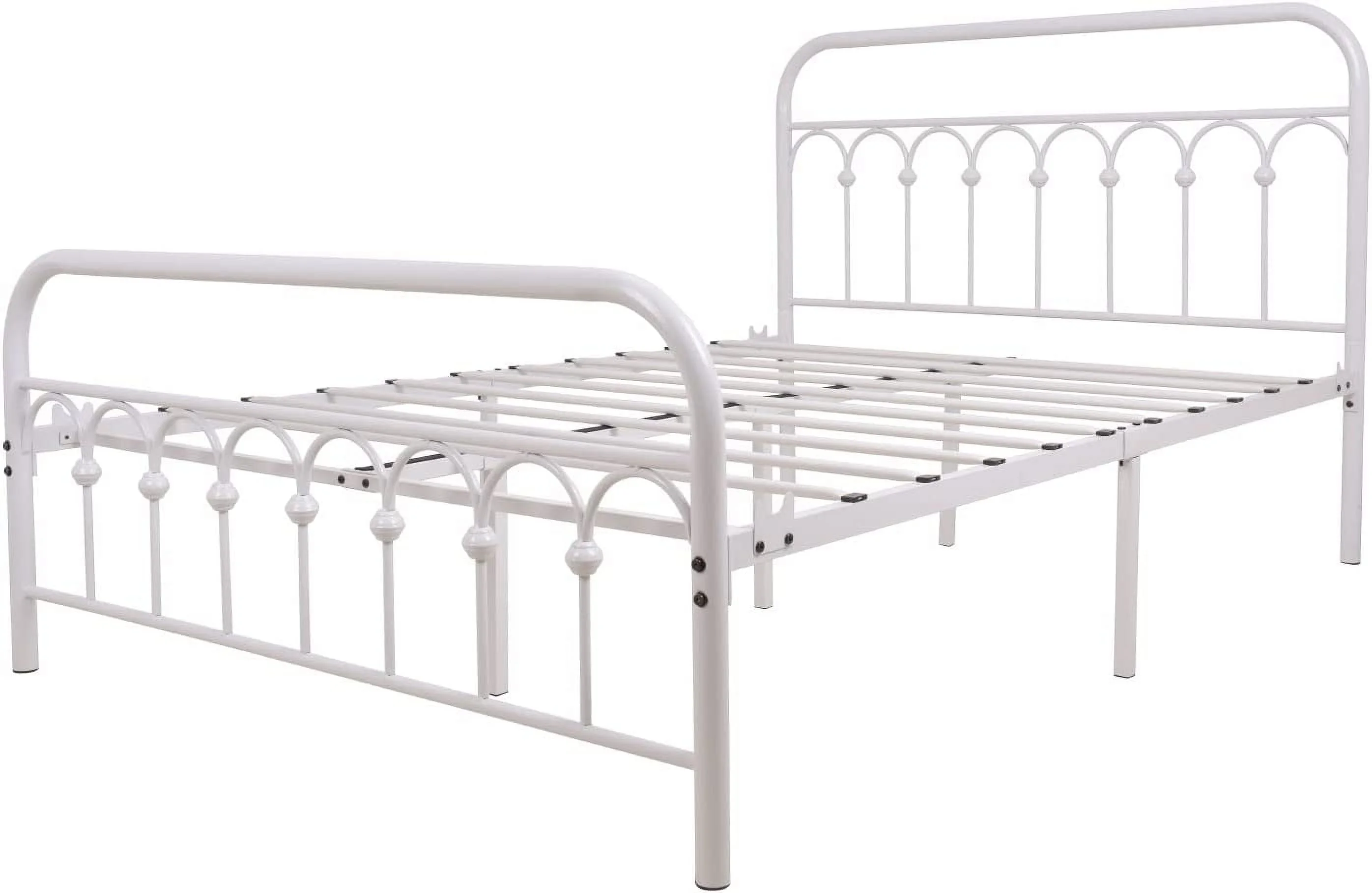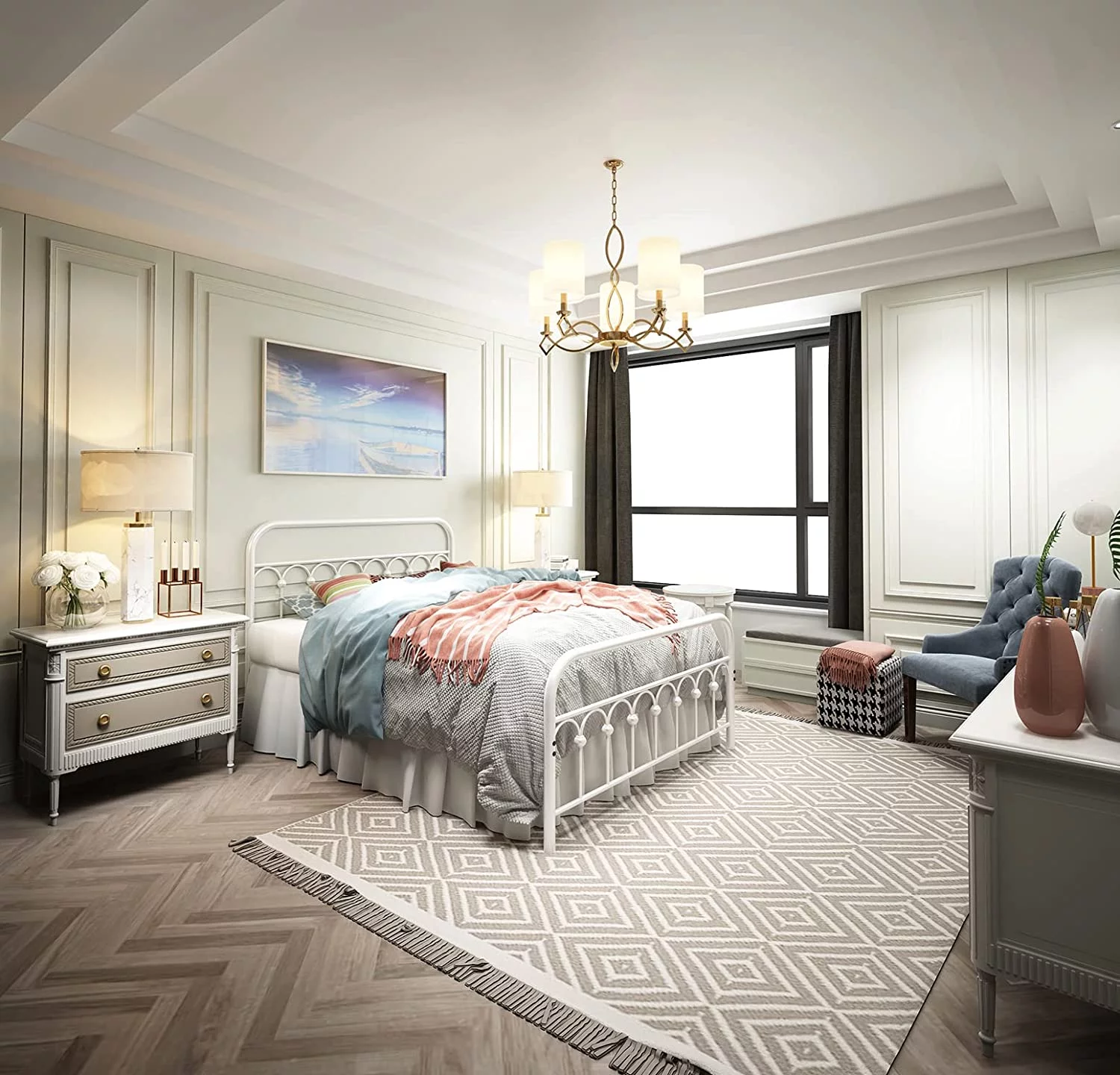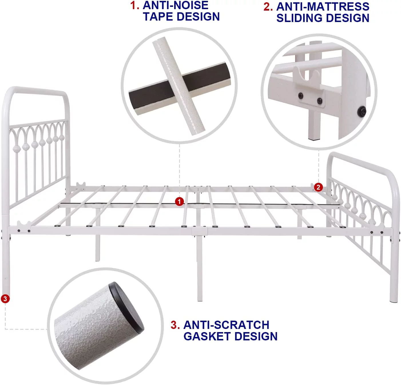 Queen size Contemporary Metal Platform Bed with Grey Upholstered Headboard