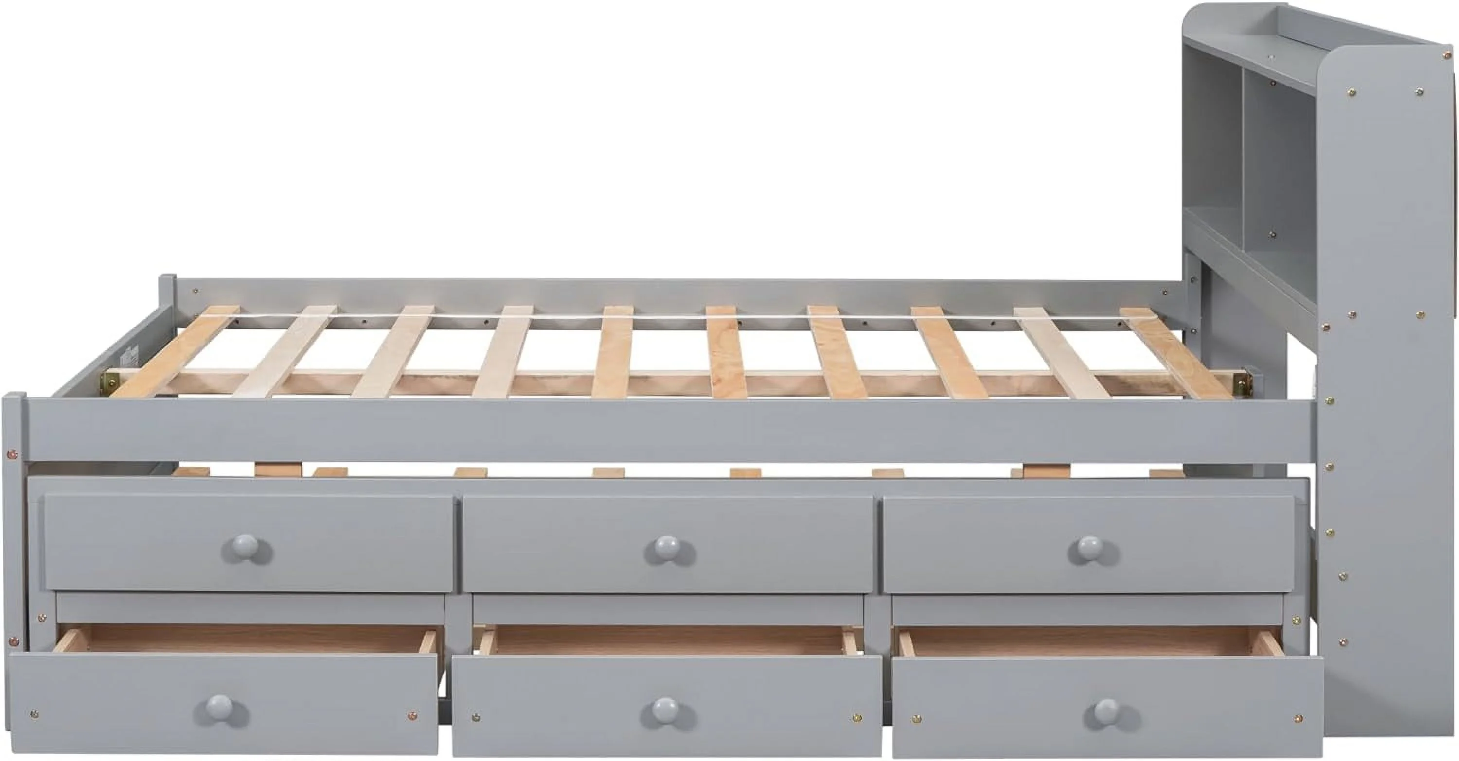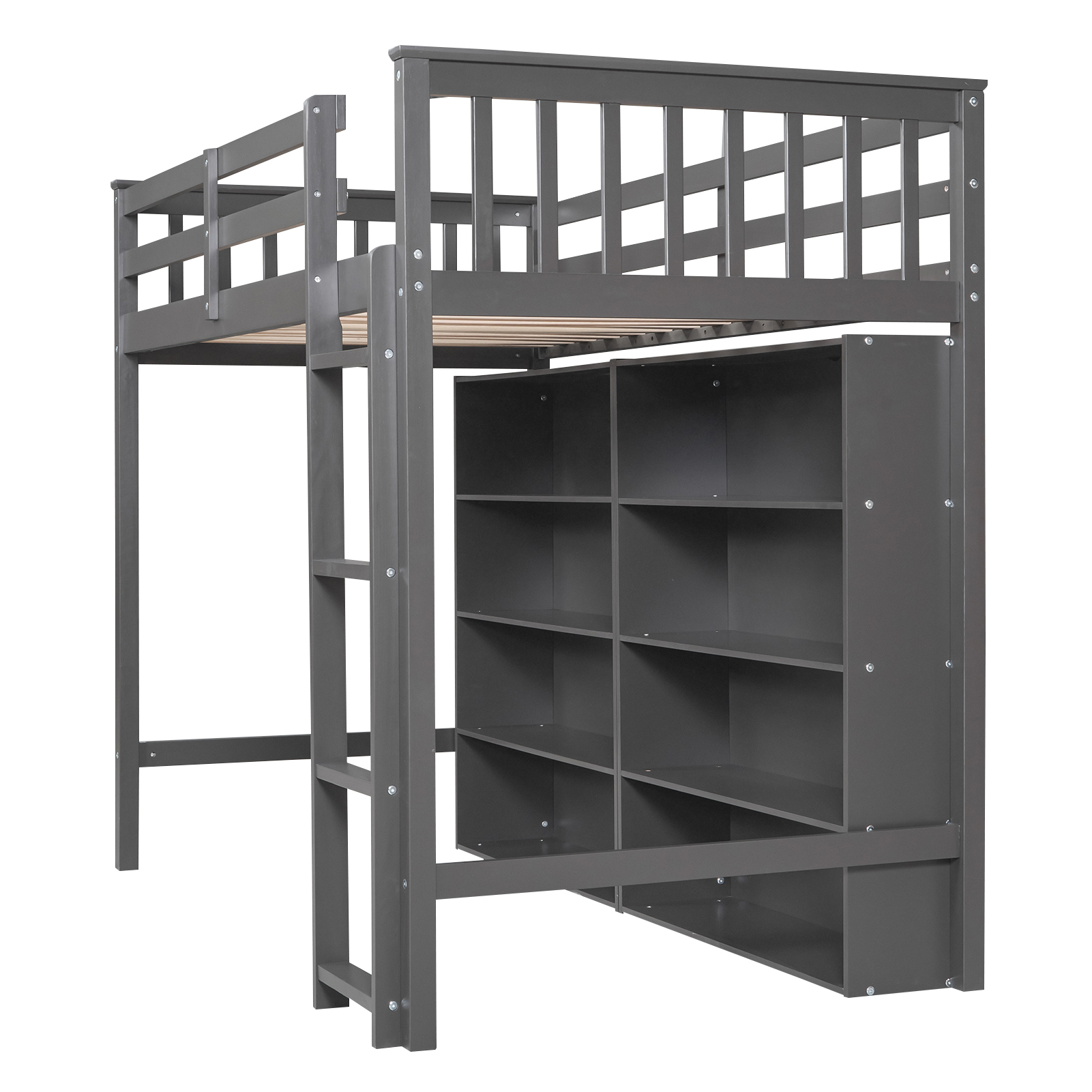 Twin Size Loft Bed with 8 Open Storage Shelves and Built-in Ladder, Gary