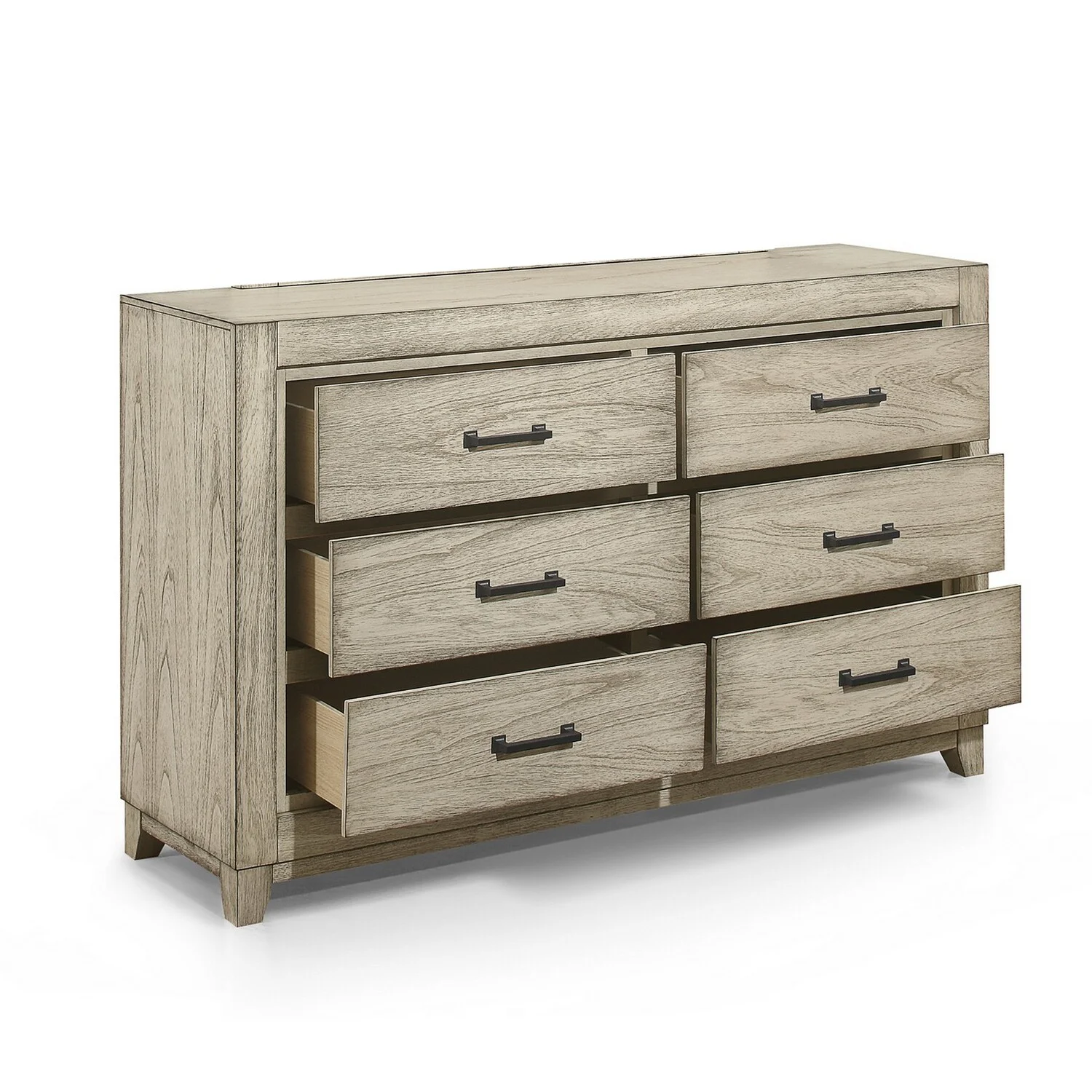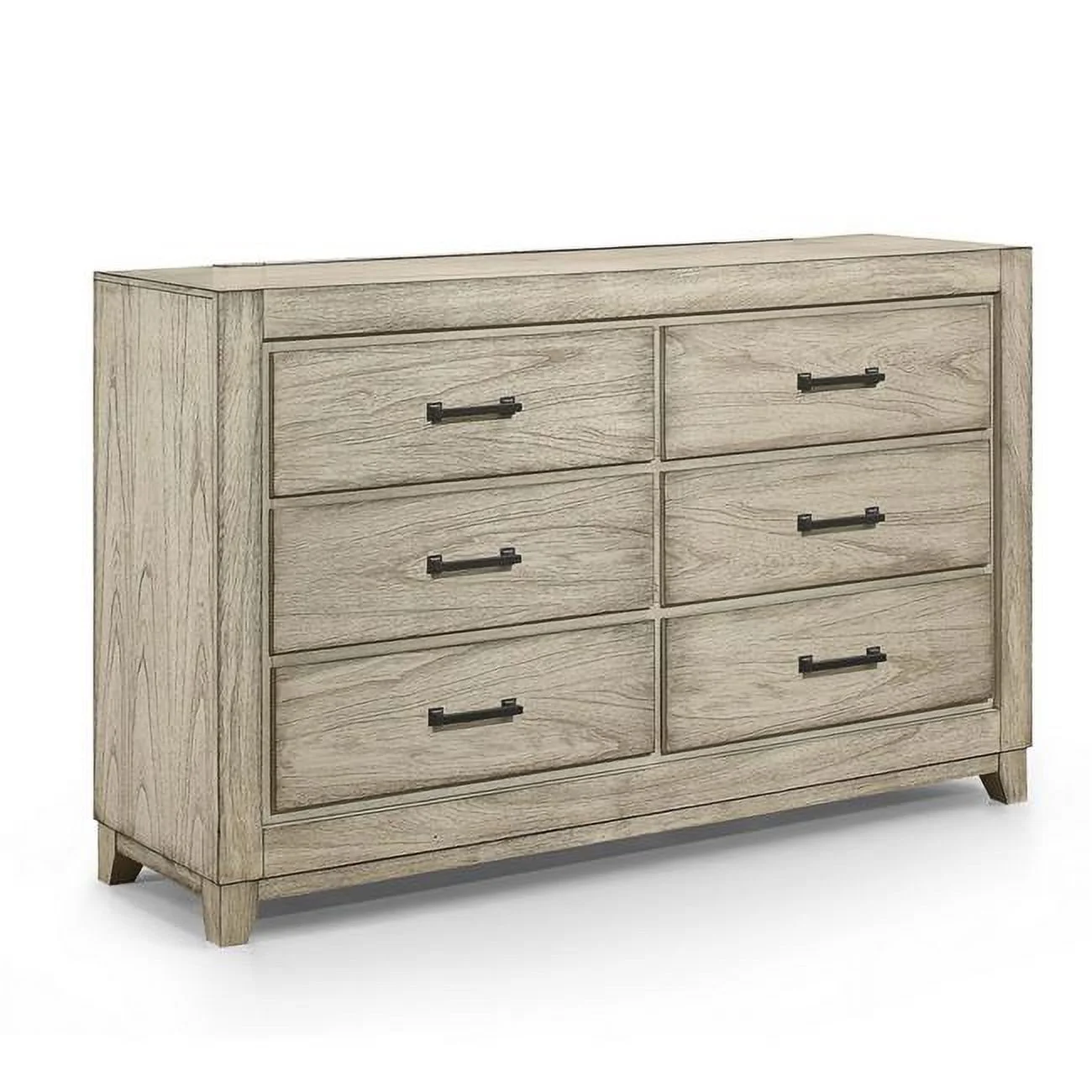 Benjara BM309505 61 in. Alo 6-Drawers Dresser with with Metal Handles, Rustic White