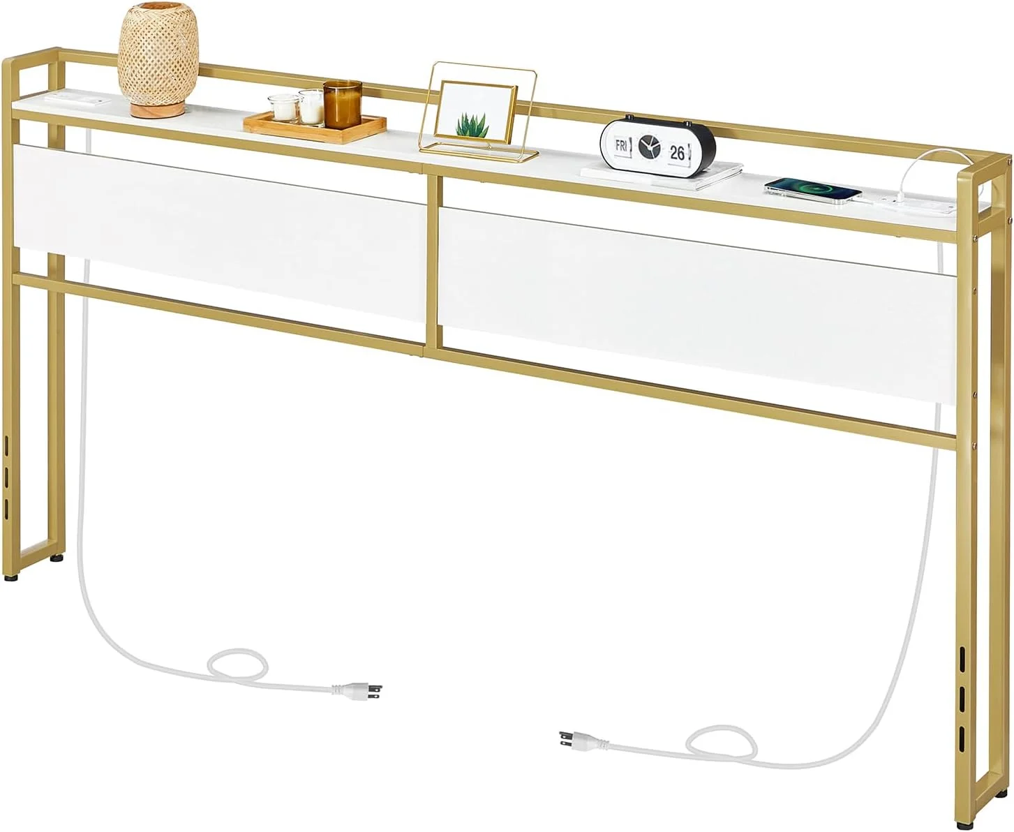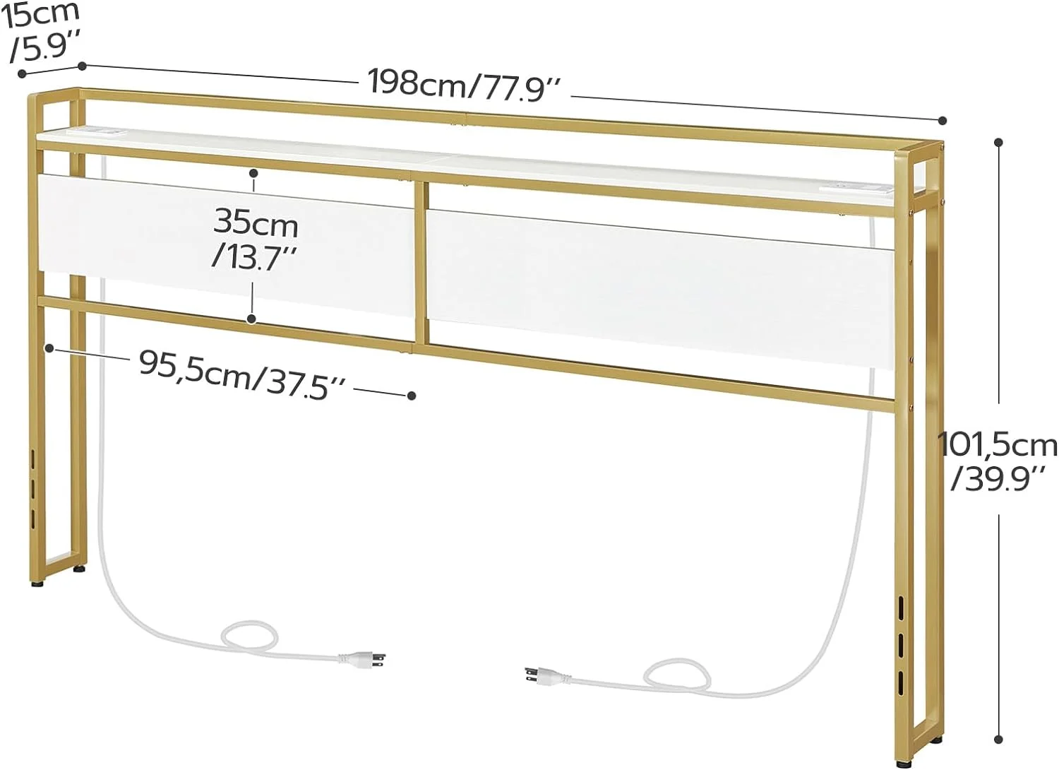 Benjara Wooden Eastern King Headboard with Inbuilt LED Lighting, White