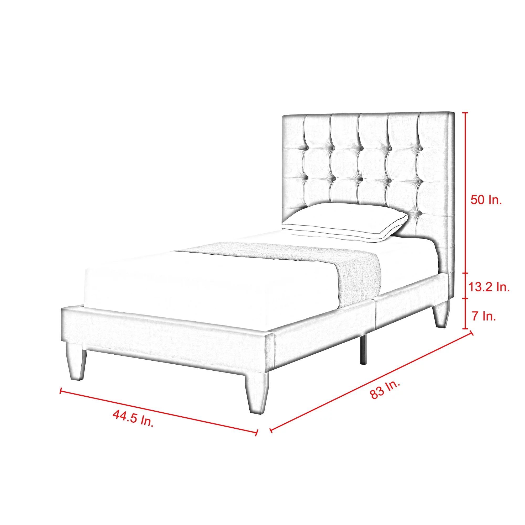 Inspired Home Saverio Velvet Platform Bedframe Twin Size Tufted Modern and Contemporary, Blush