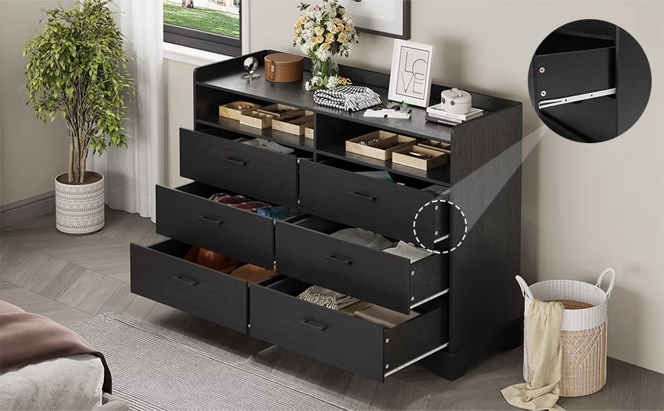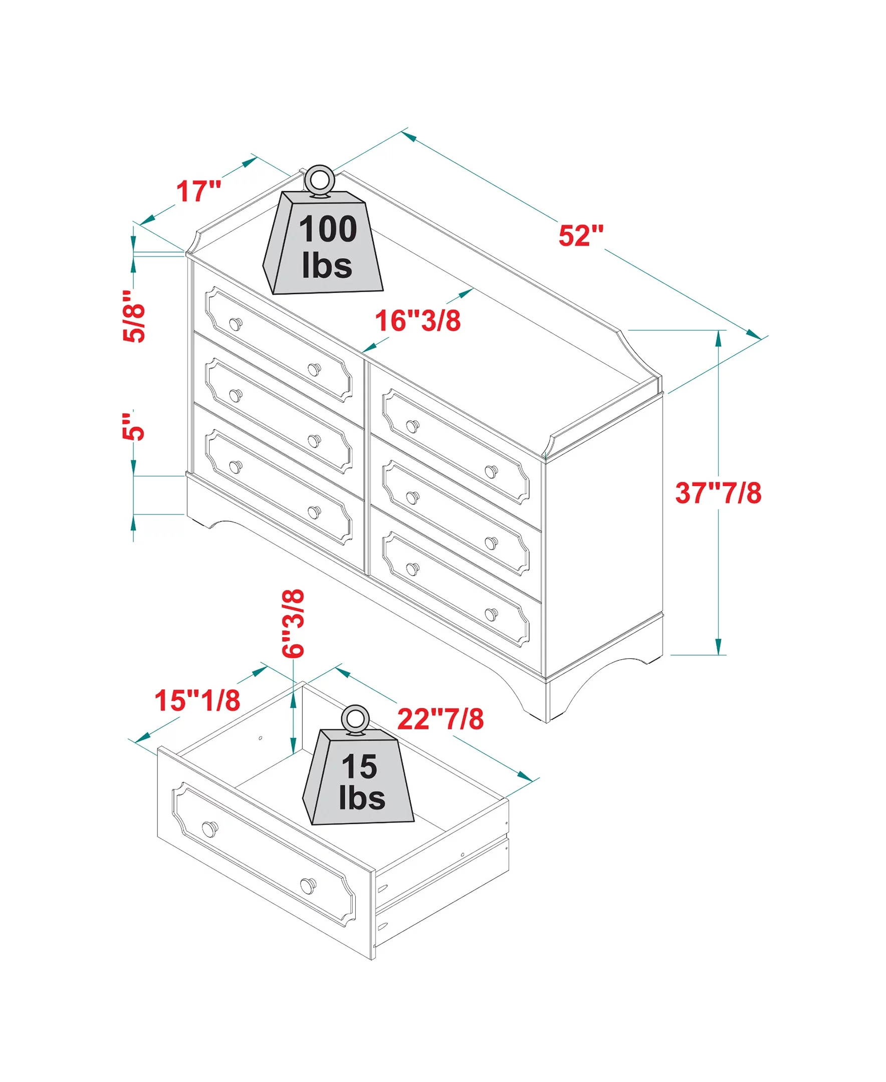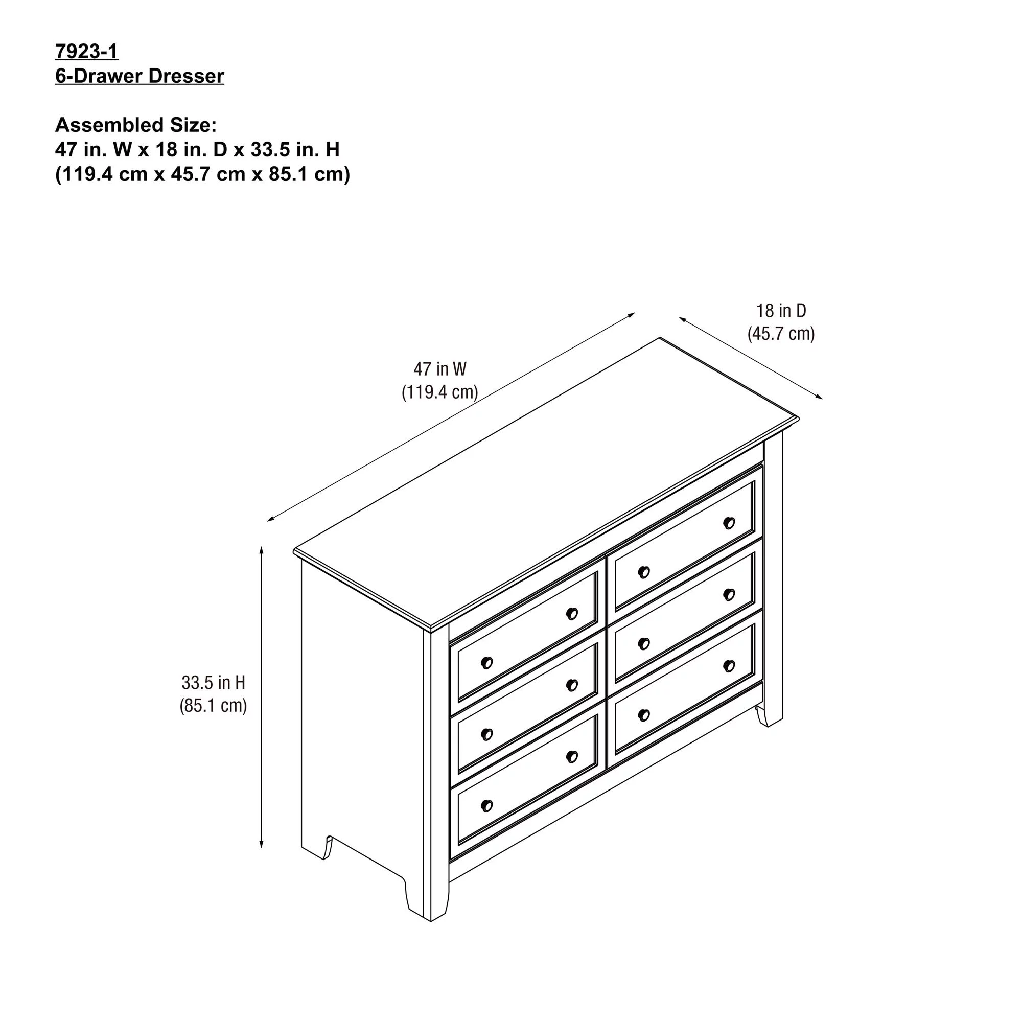 Twin Star Home Modern Farmhouse 6-Drawer Bedroom Dresser, Multiple Finishes