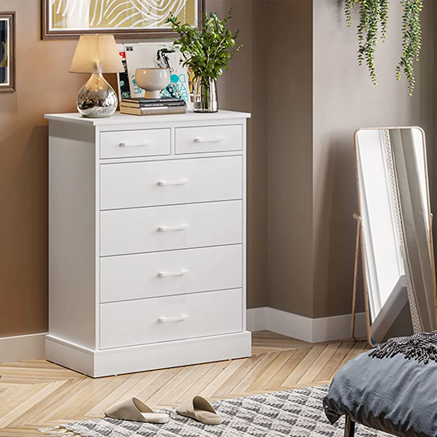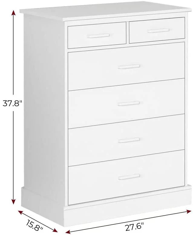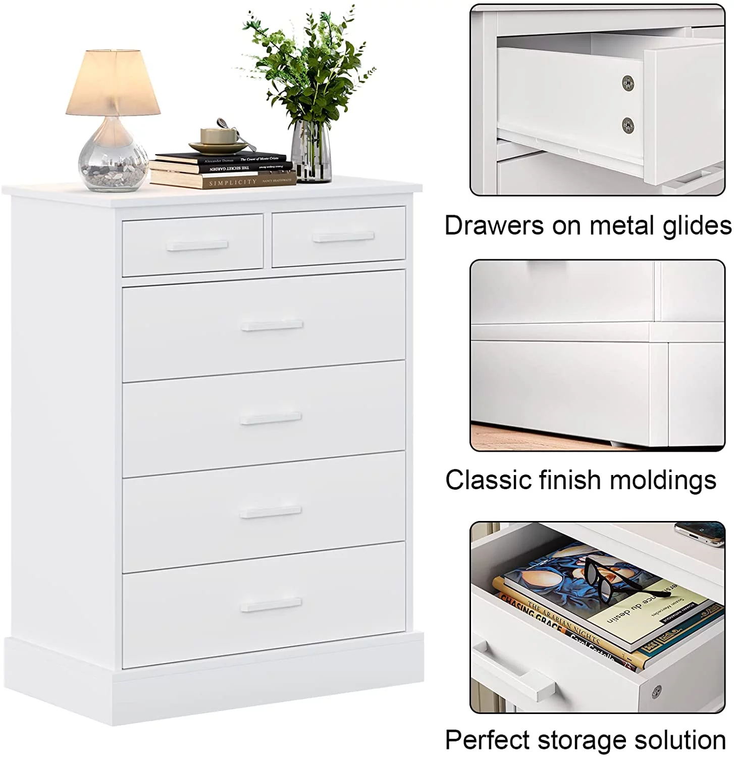 Classic 6-Drawer Dresser, Wood Storage Tower Clothes Organizer, Storage Cabinet for Bedroom Hallway Entryway,White