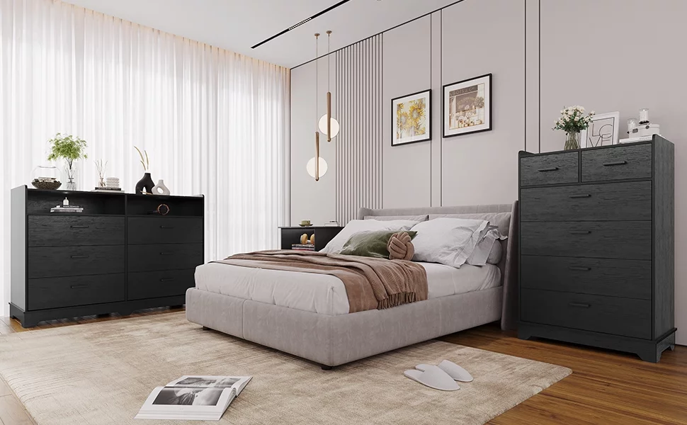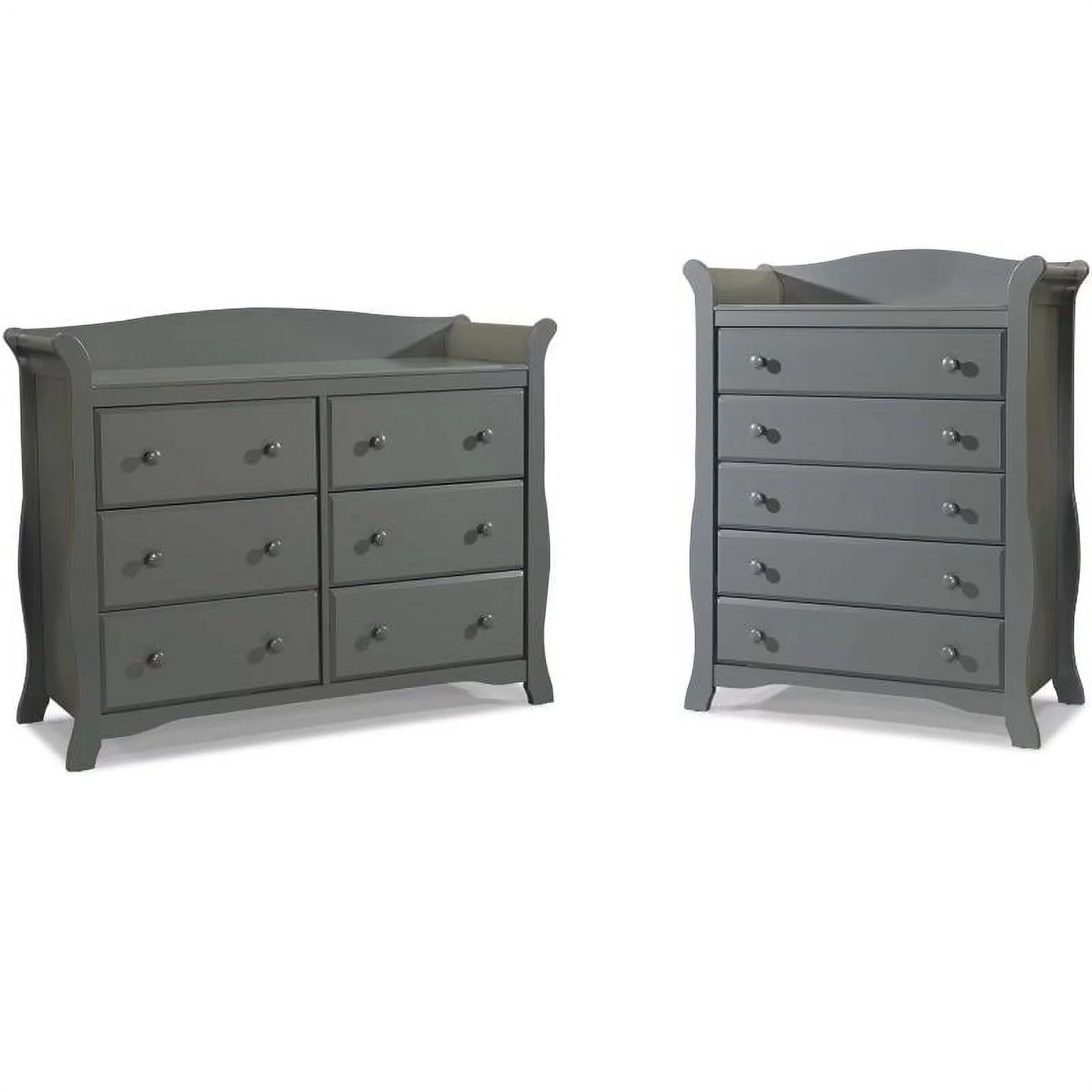 6-Drawer Double Dresser and 5-Drawer Chest Nursery Furniture Set in Slate Gray