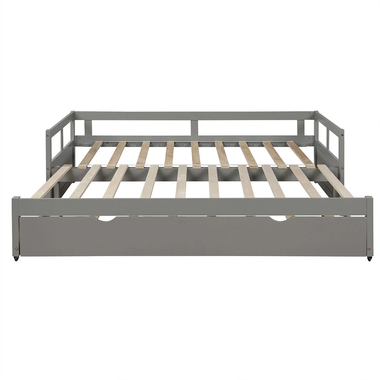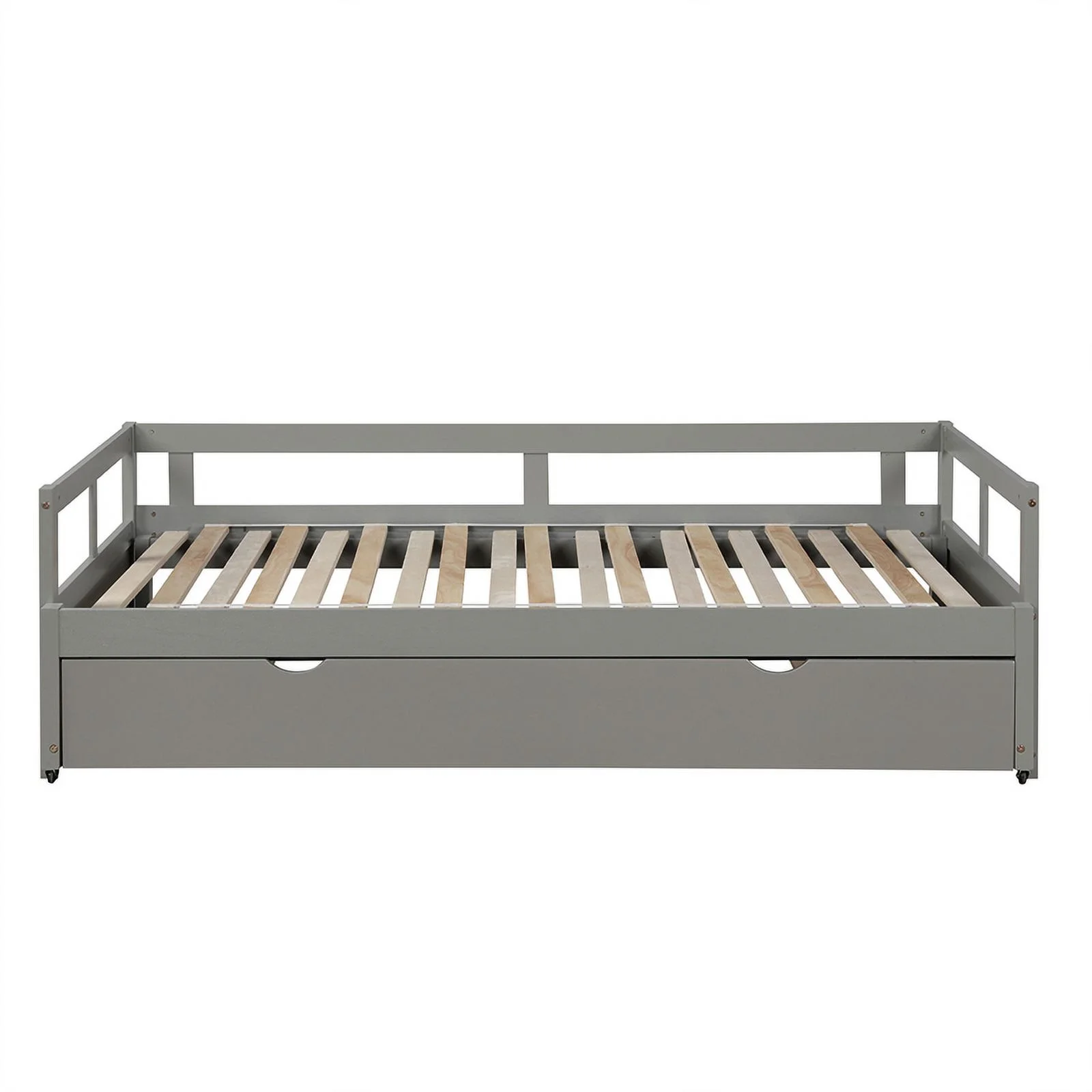 CRO Decor Extending Daybed with Trundle Wooden Daybed with Trundle (Gray)