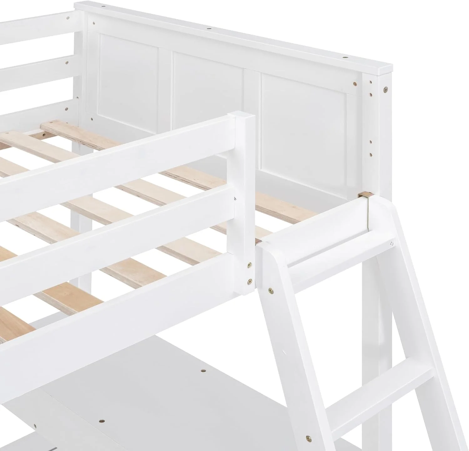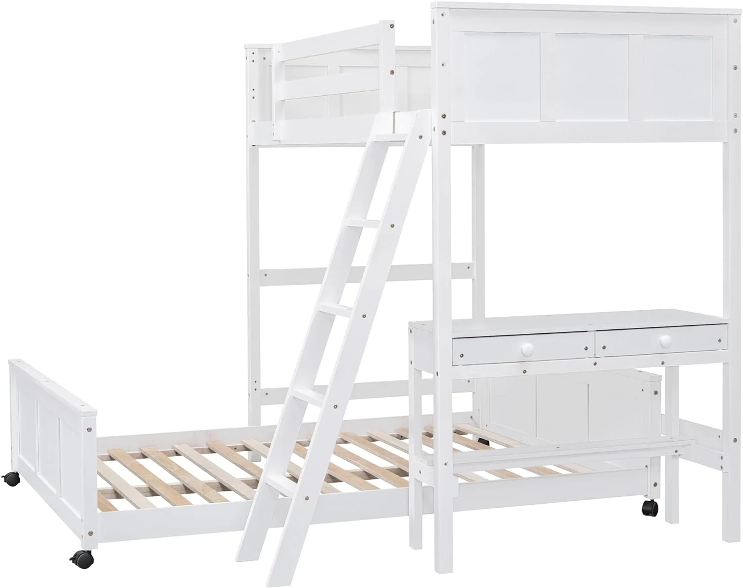 CoSoTower Twin Over Full Bunk Bed with Built-In Desk and Three Drawers,White
