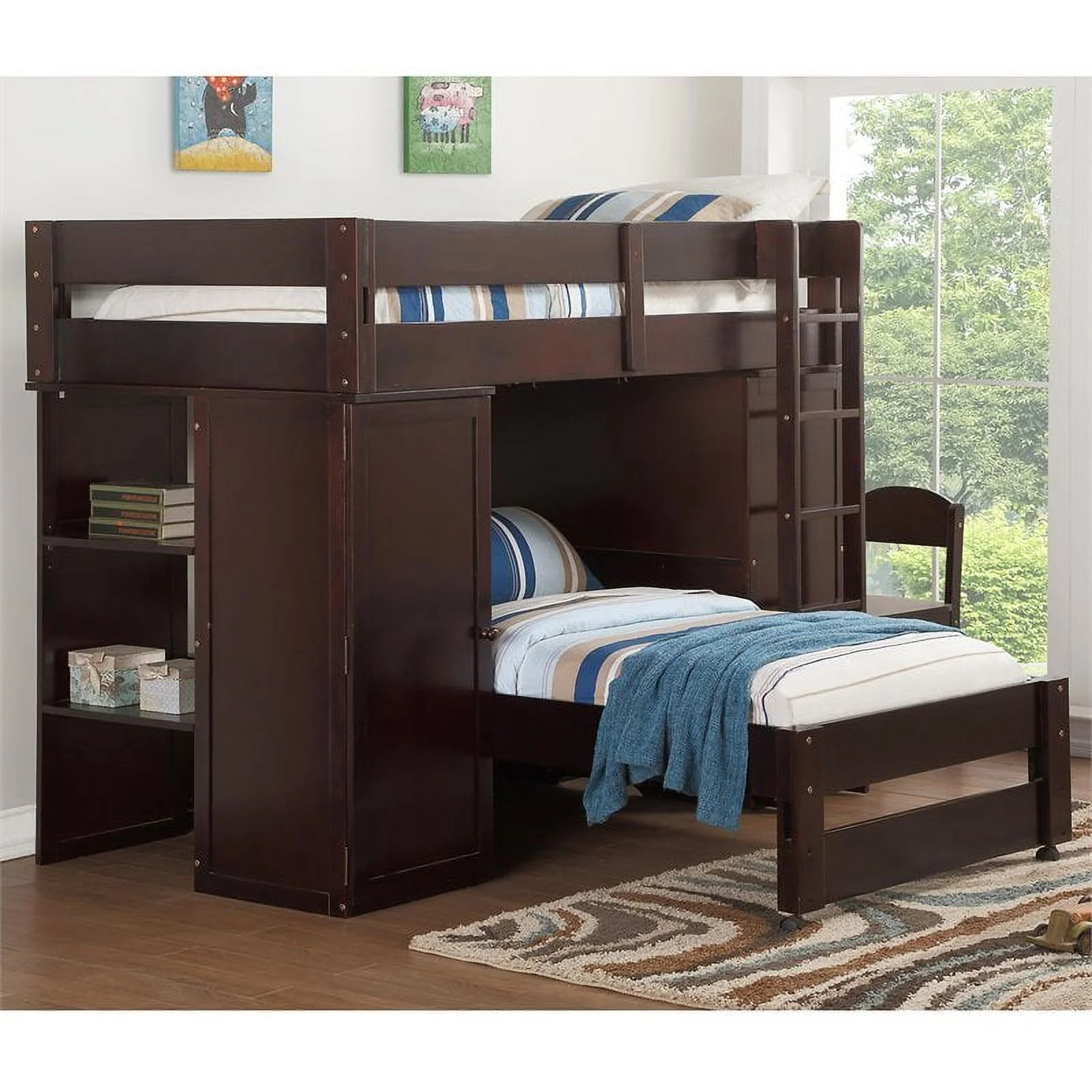 Rosebery Kids Loft Bed & Twin Bed with Desk, Chair, Storage Shelves in Wenge