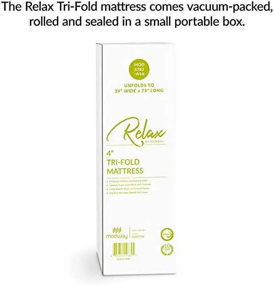 HBBOOMLIFE 4\u201D Relax Twin XL Tri-Fold Mattress Topper CertiPUR- Certified w/ Removable Cover (39"x80\u201D)