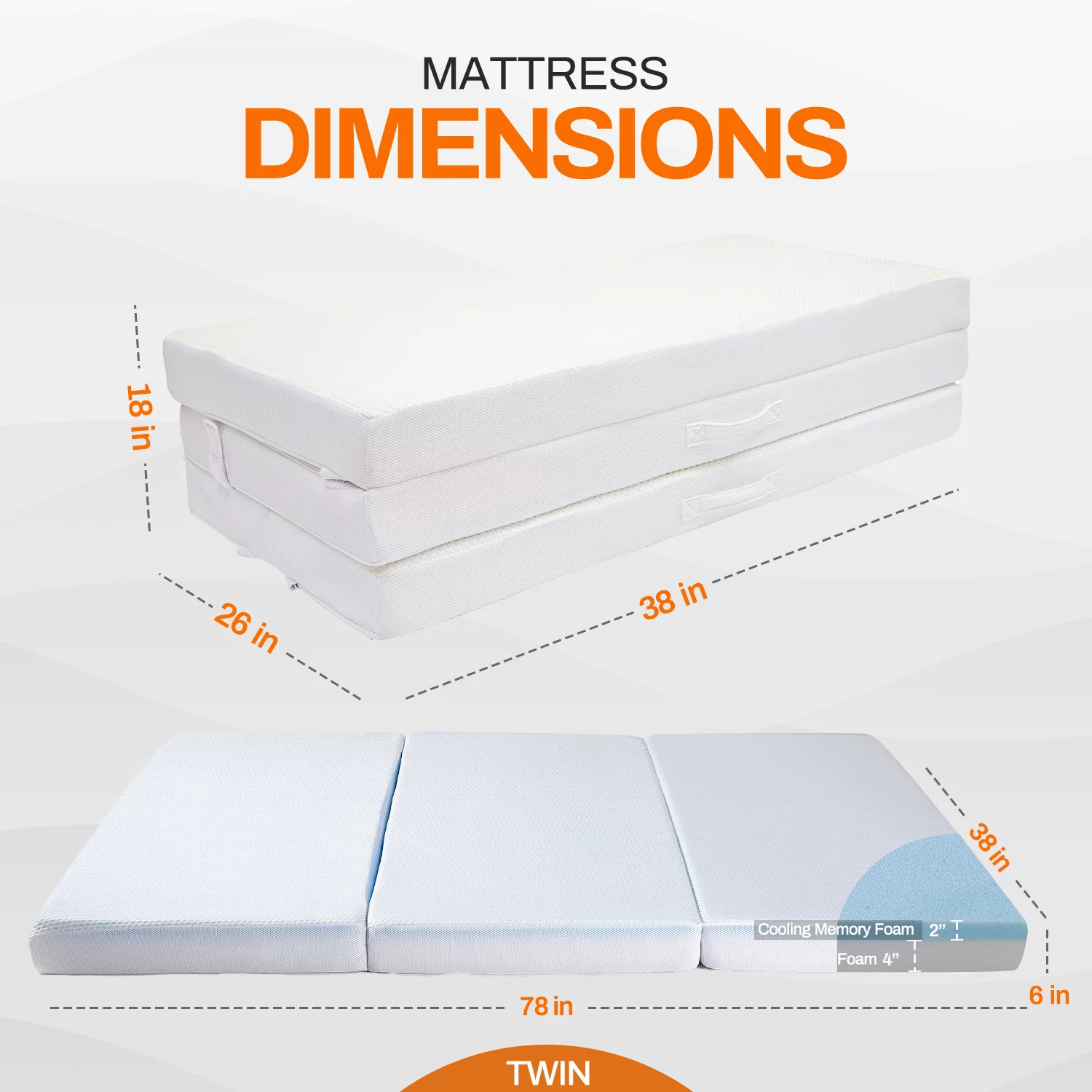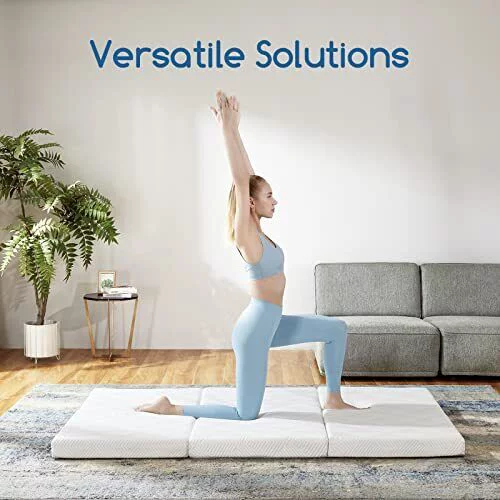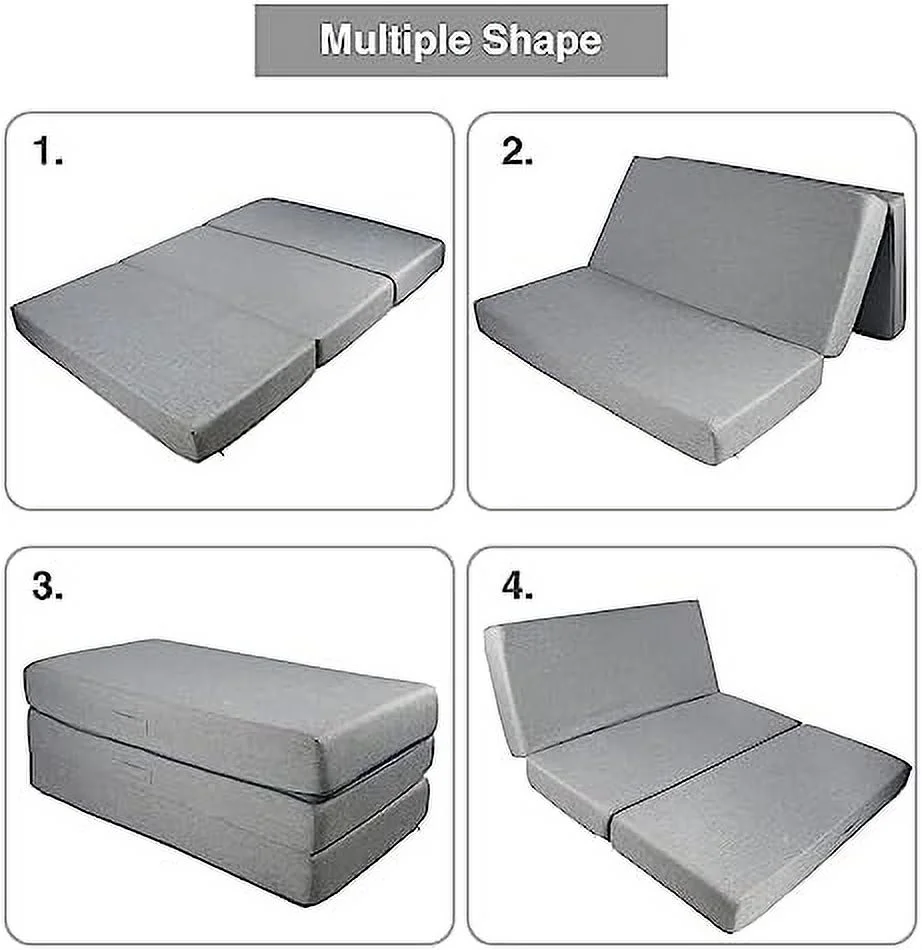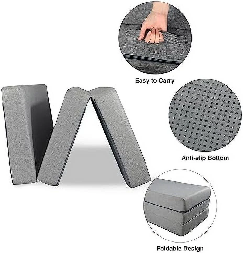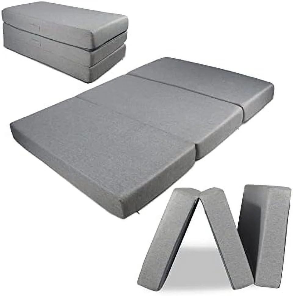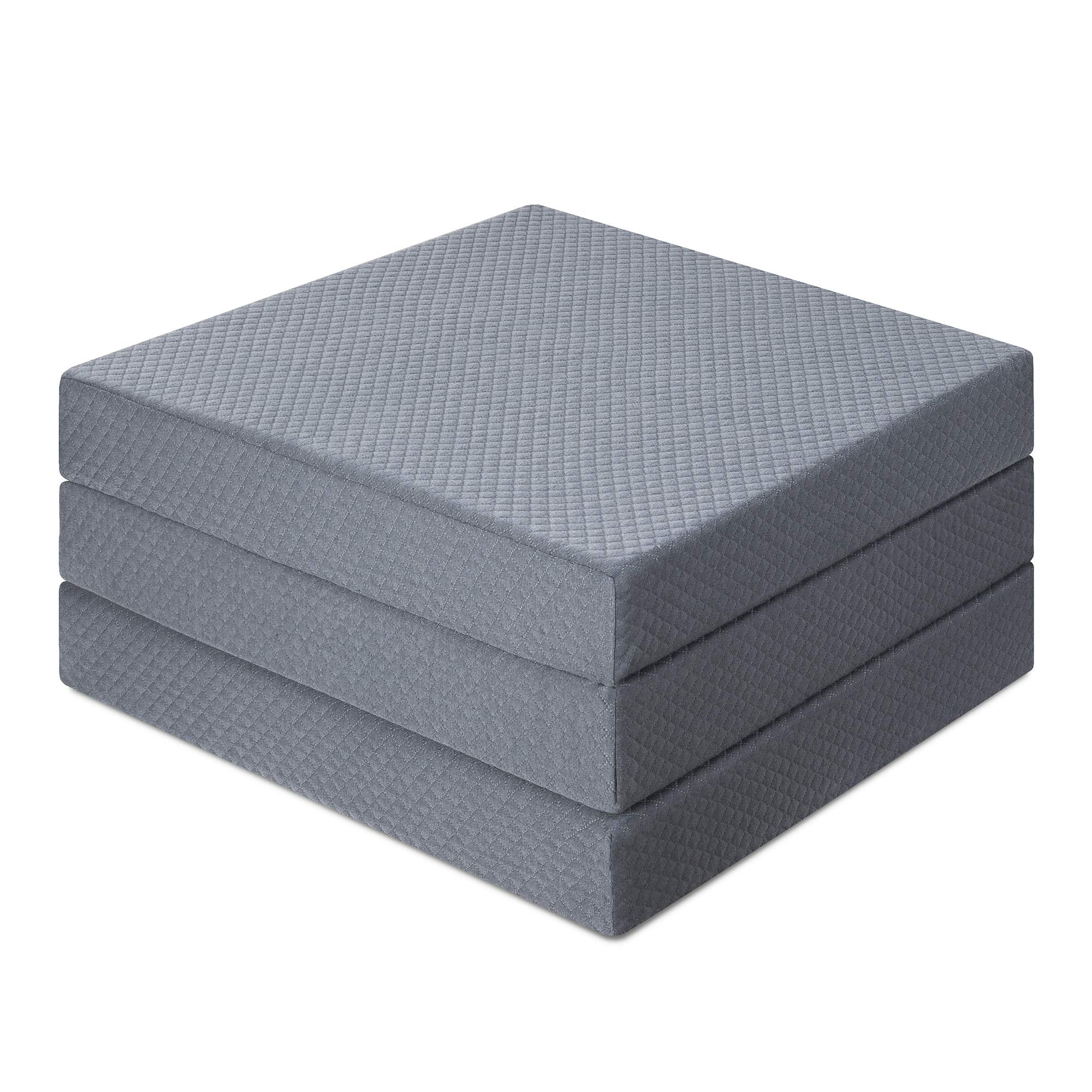 Folding Mattress - Trifold Foam Mattress Topper with Removable Cover -Lightweight