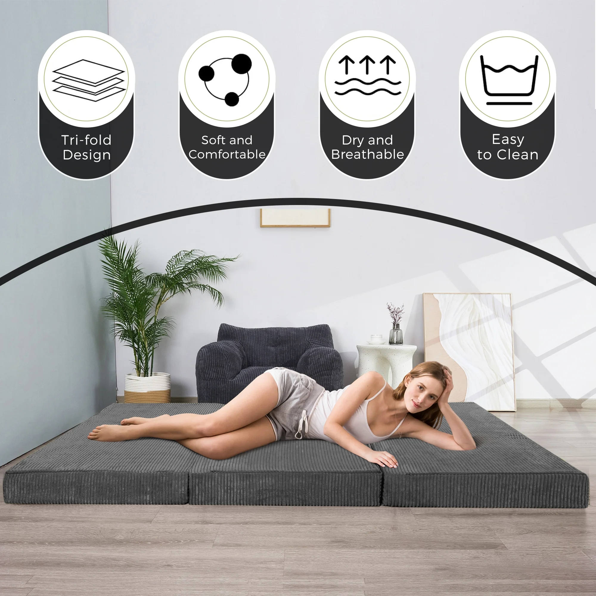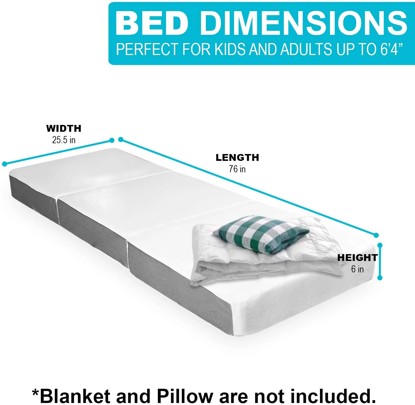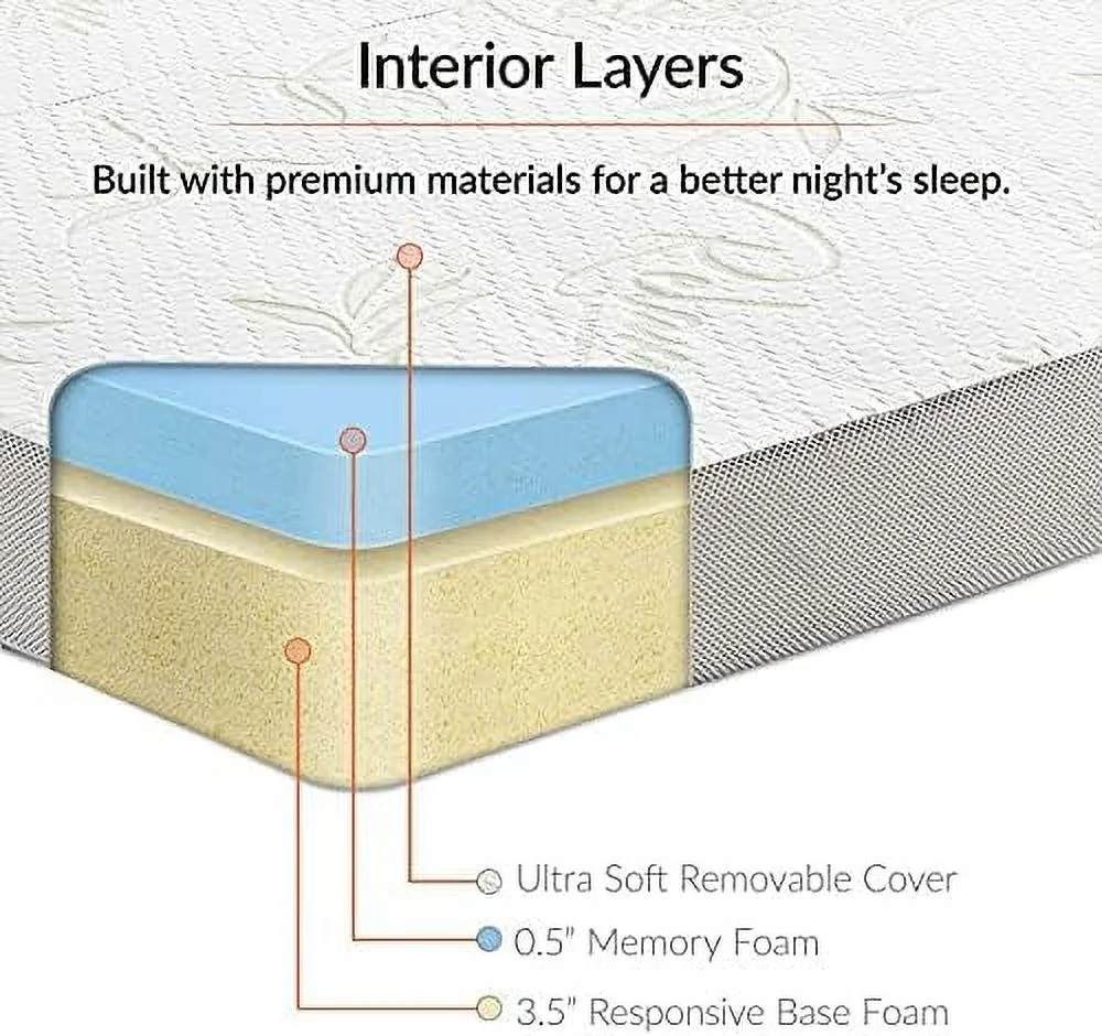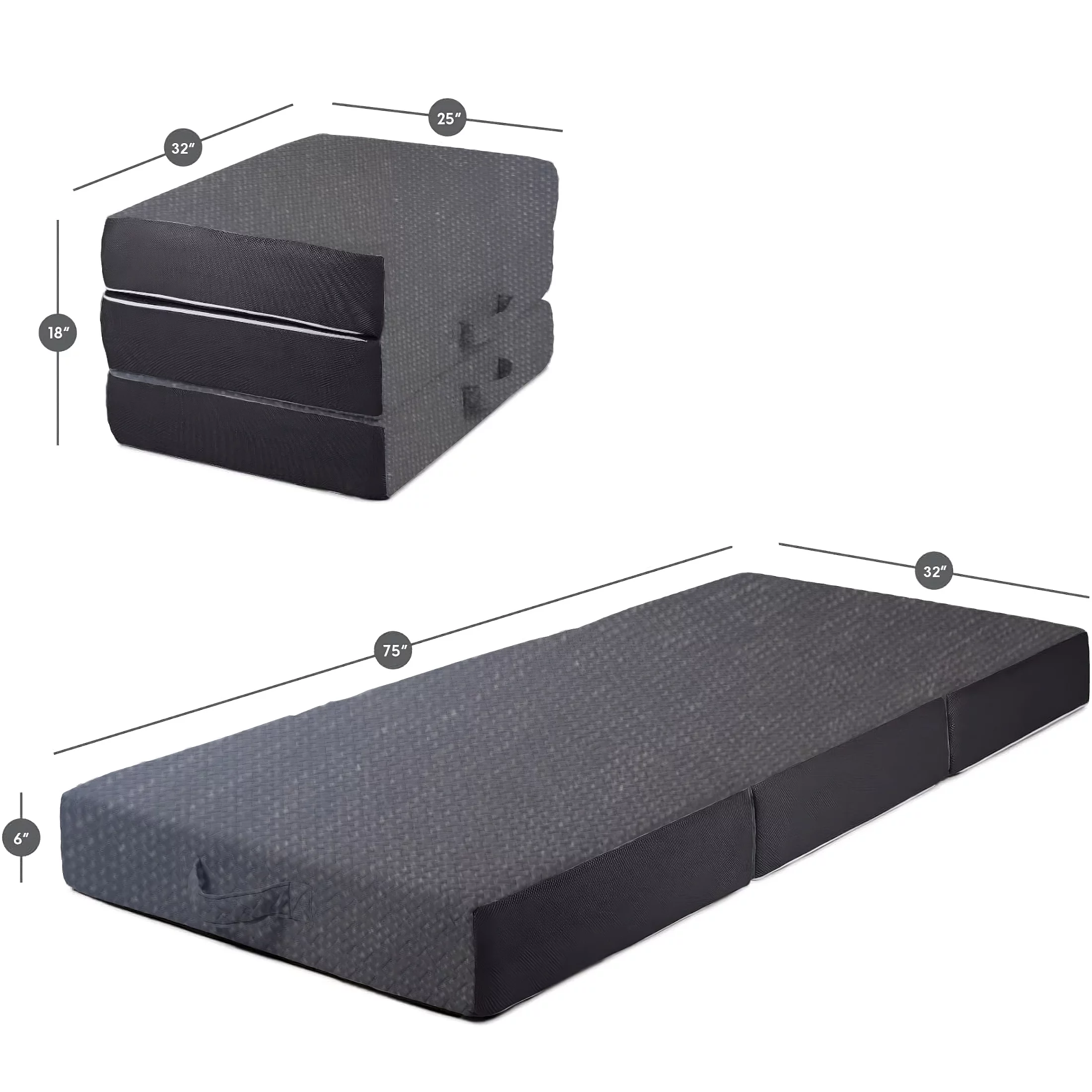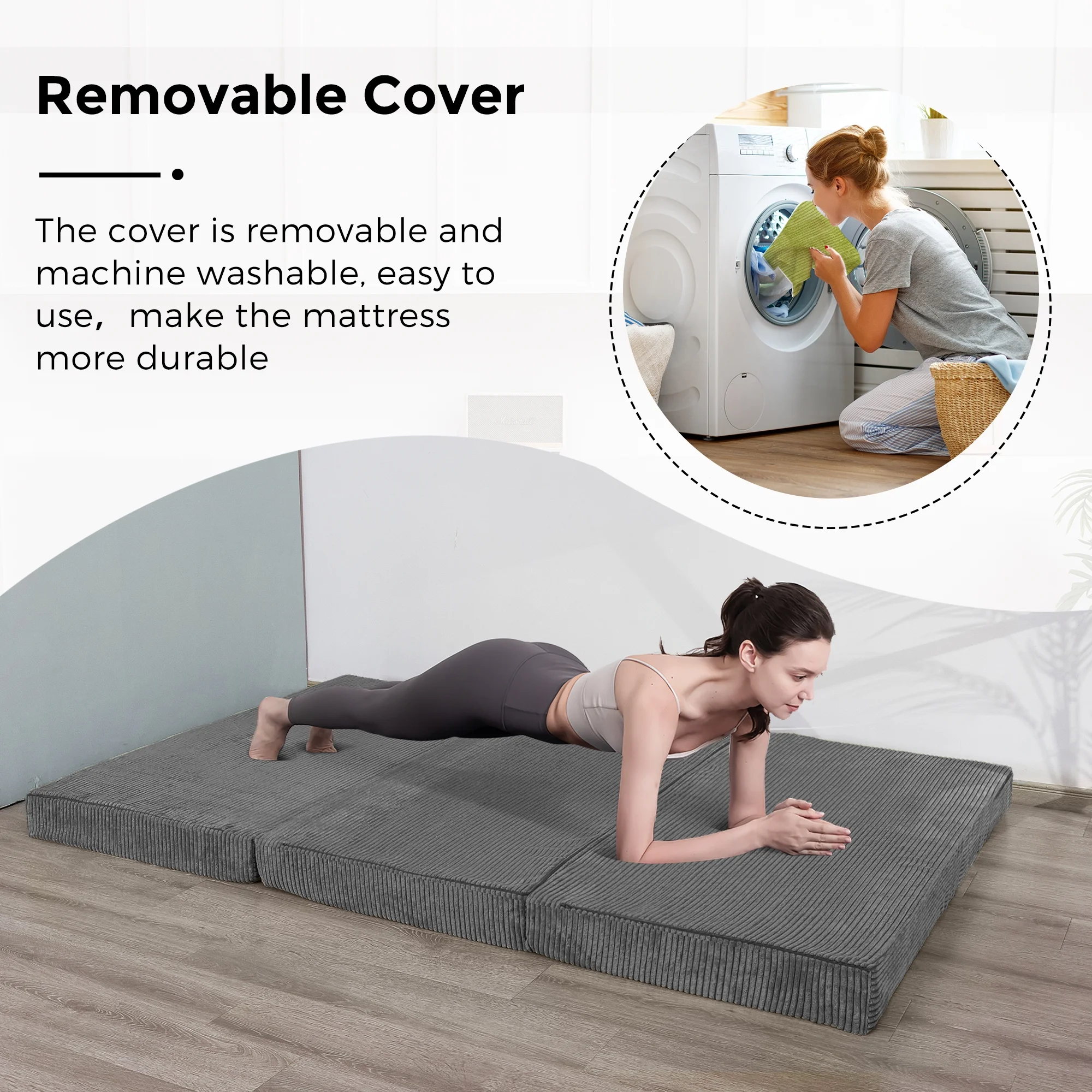 Folding Mattress - Trifold Foam Mattress Topper with Removable Cover -Lightweight