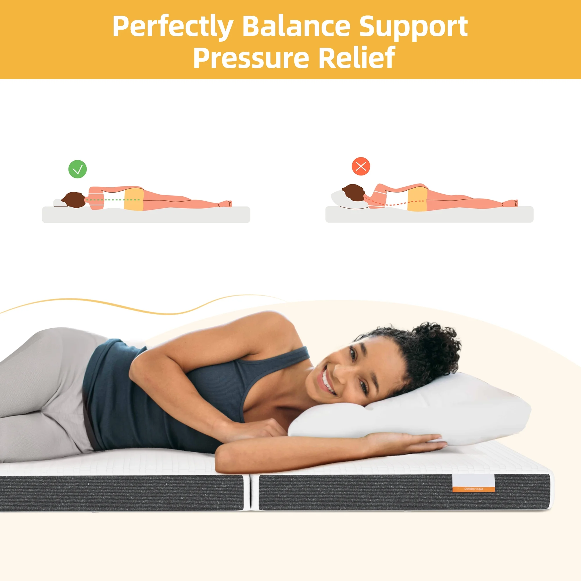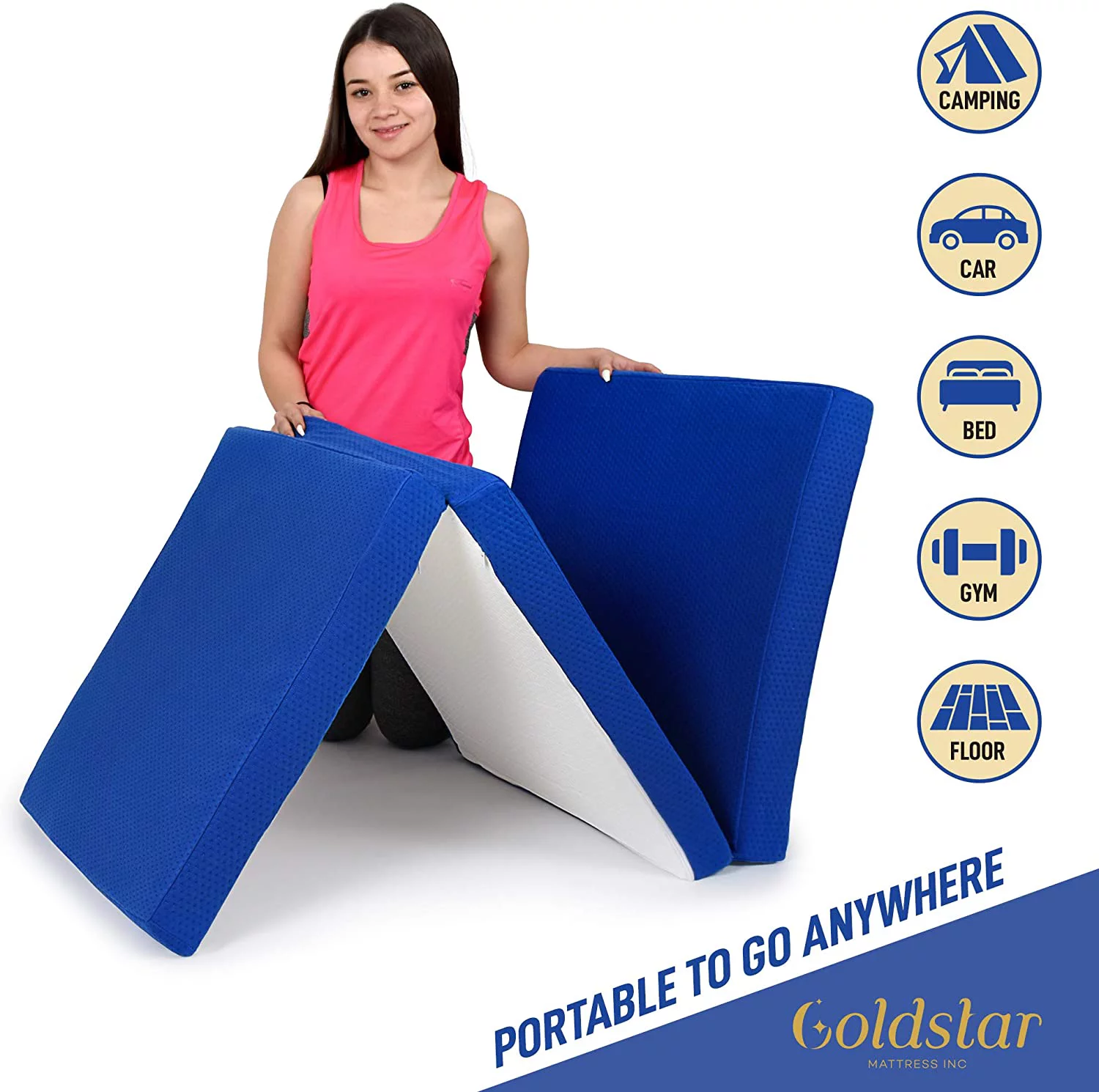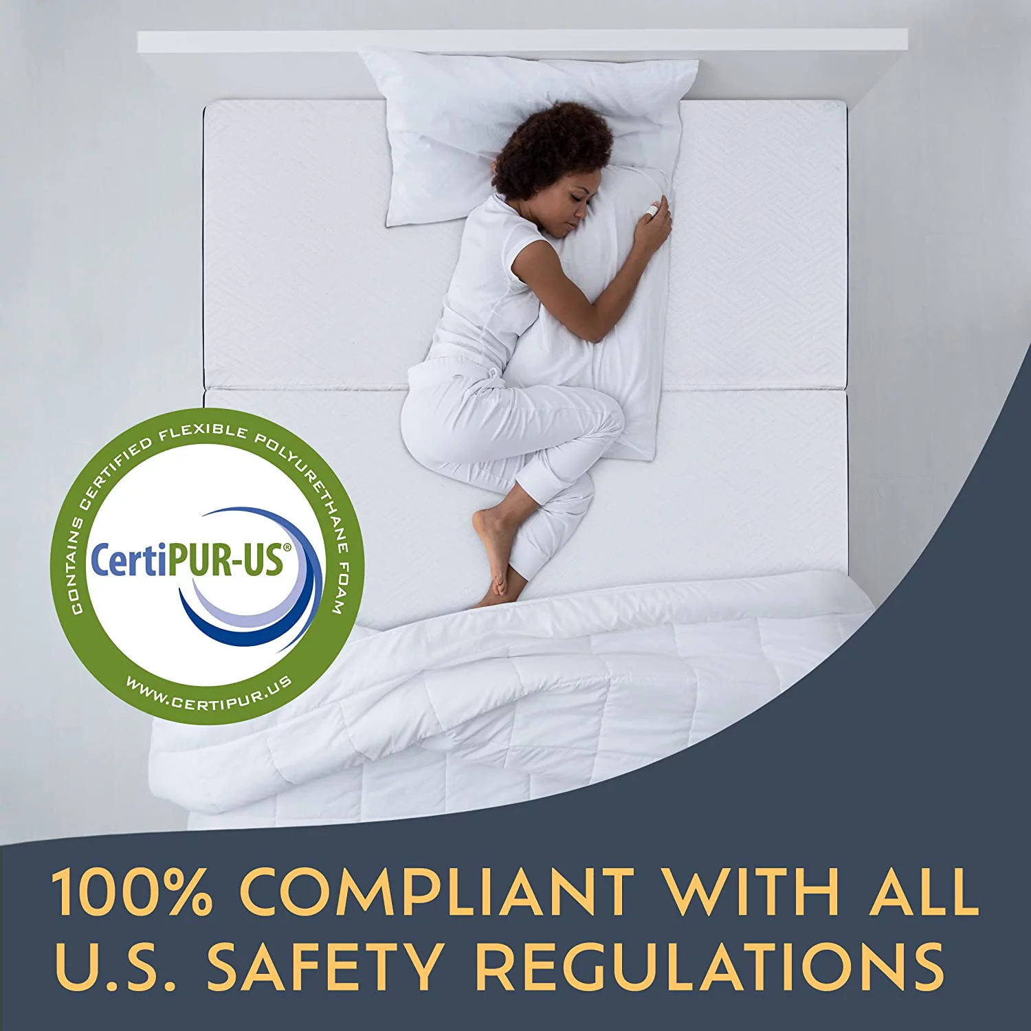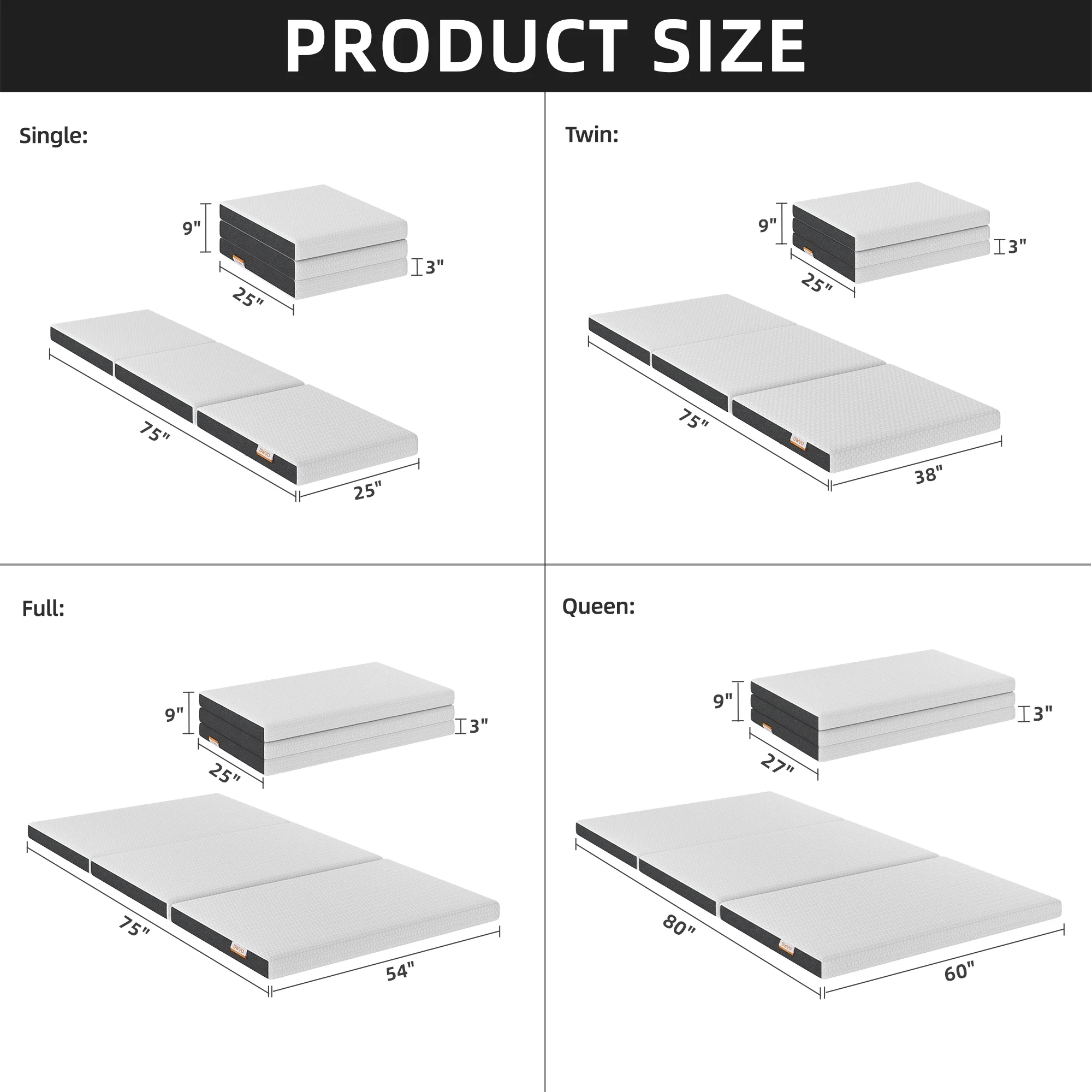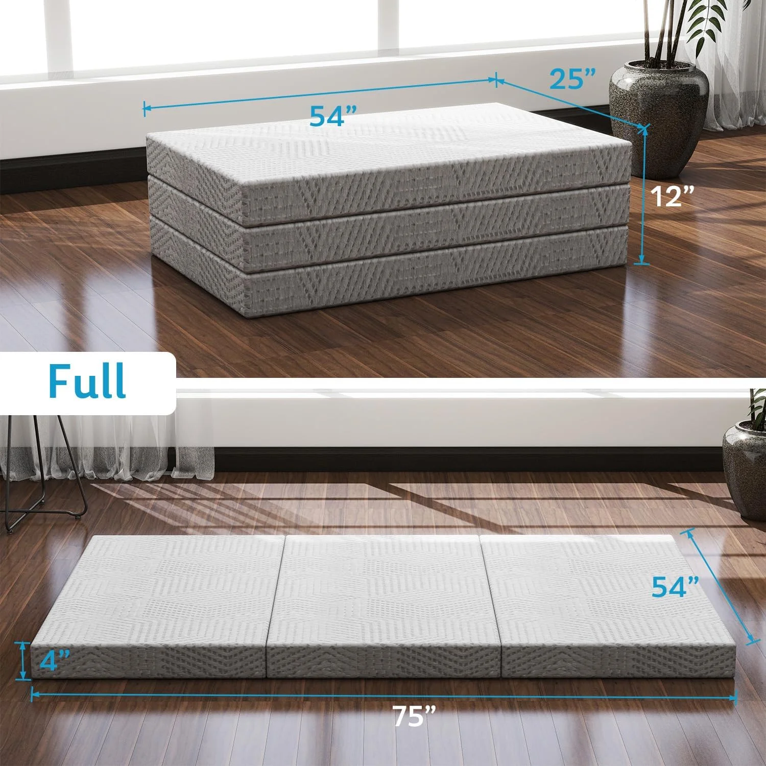 Folding Mattress - Trifold Foam Mattress Topper with Removable Cover -Lightweight