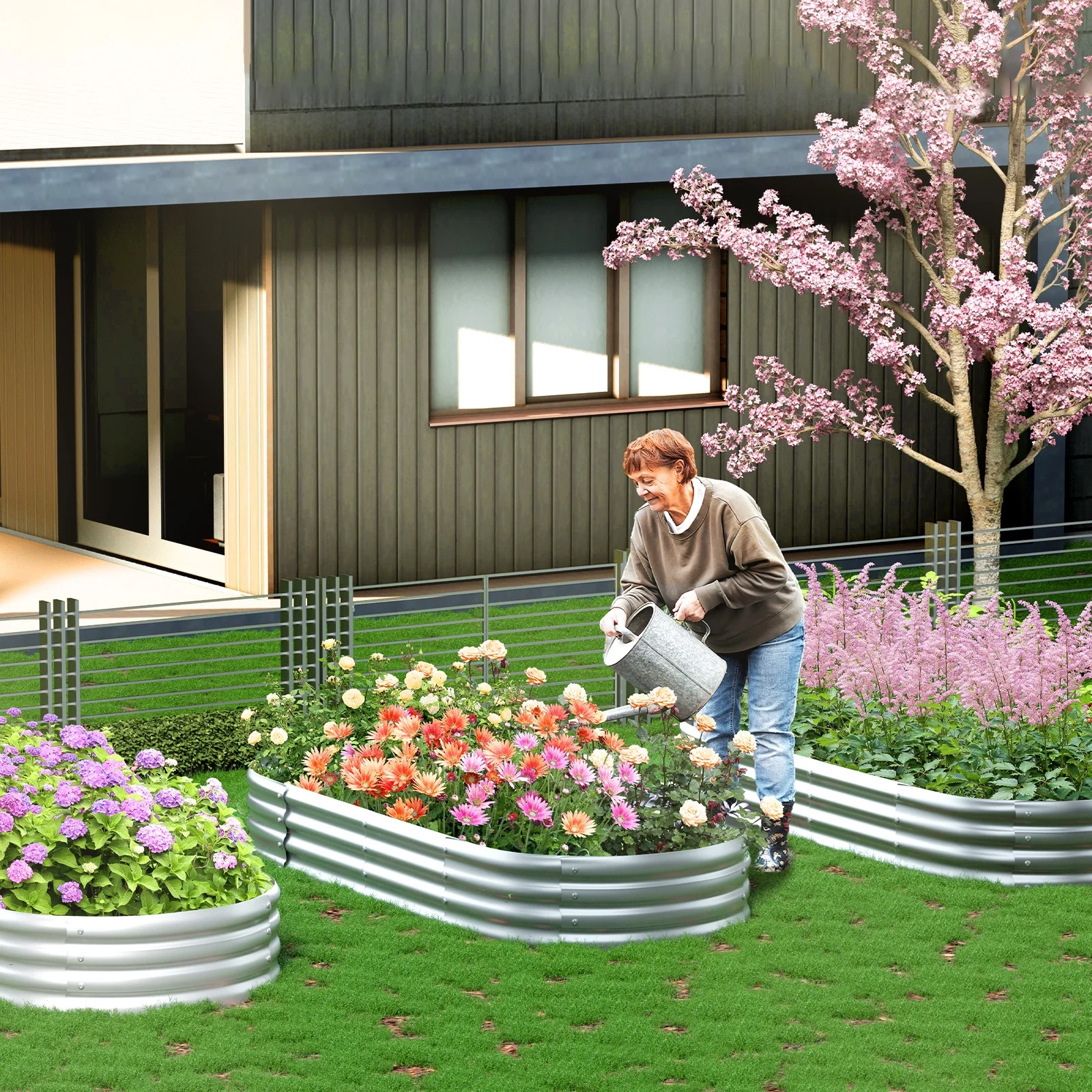 TRAMULL 8X4X2ft Galvanized Raised Garden Bed, Oval Above Ground Modular Metal Outdoor Planter Boxes(Antique White)