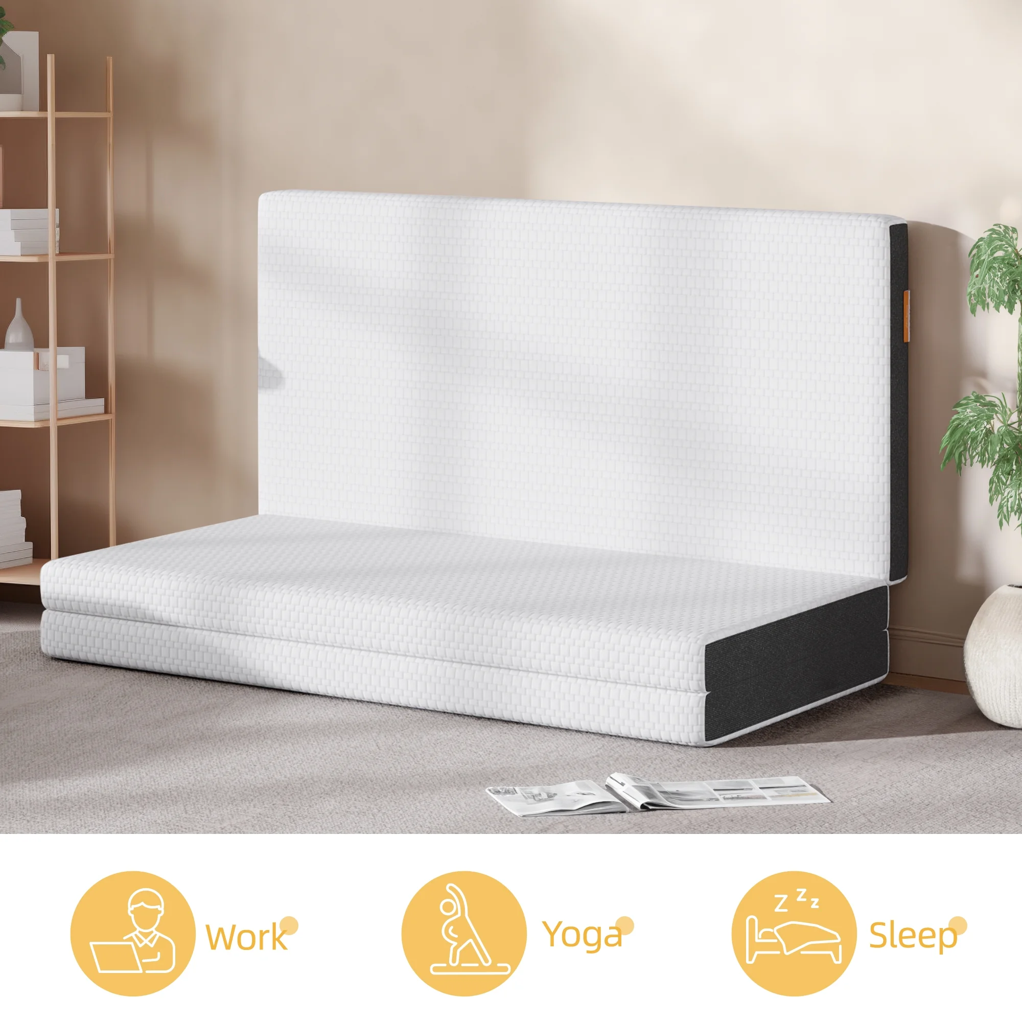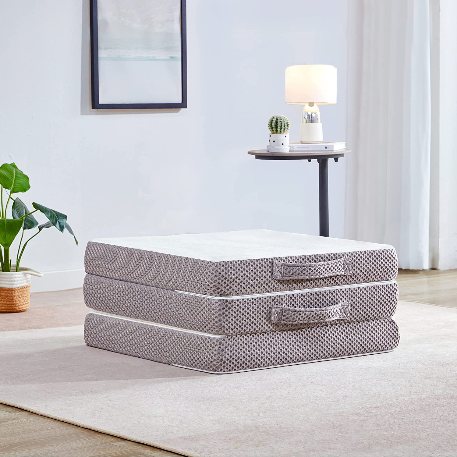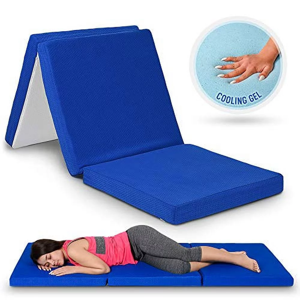 JIAH 4 Inch Gel Tri-fold Mattress Topper with Bamboo Cover, Breathable and Portable Floor Guest Bed (Twin)