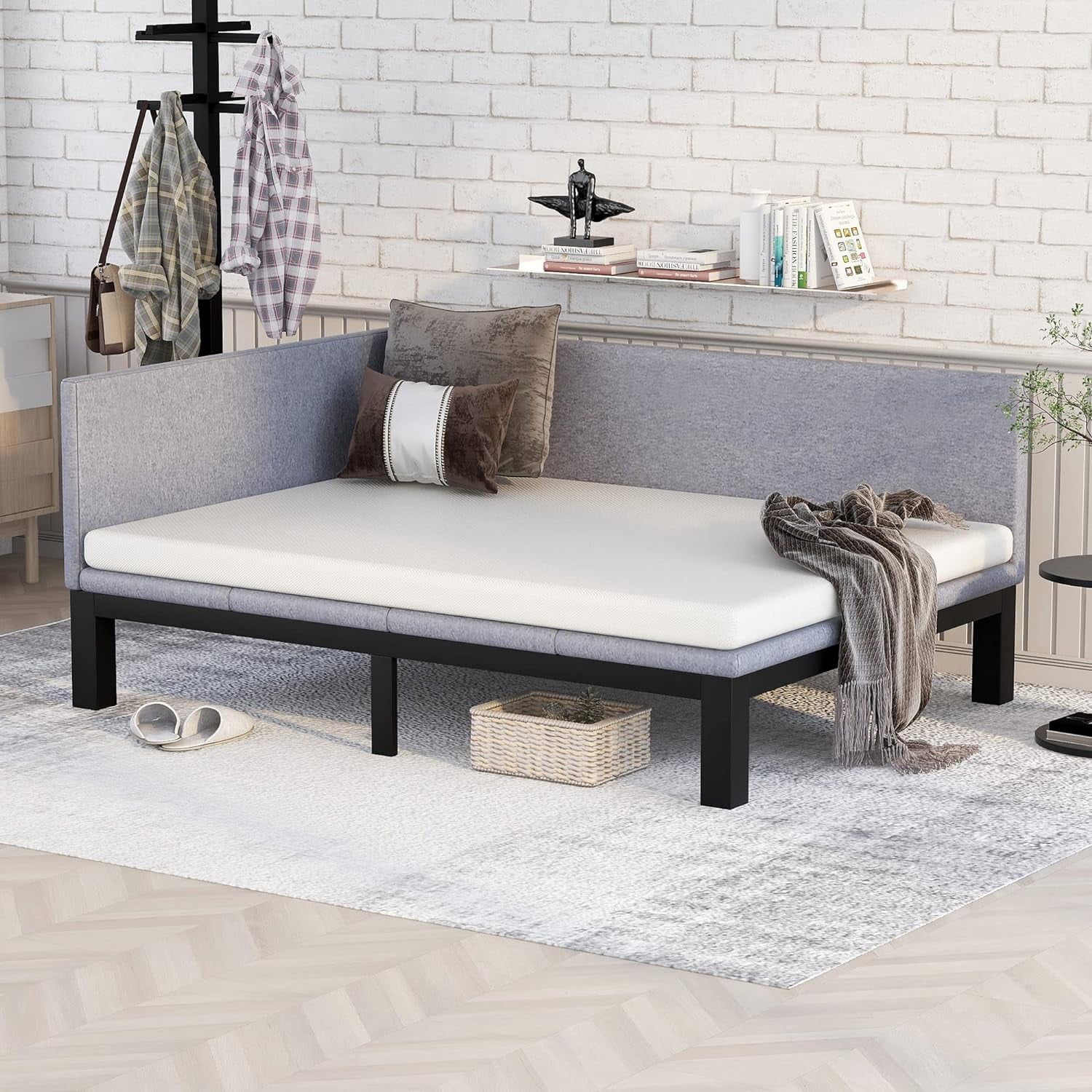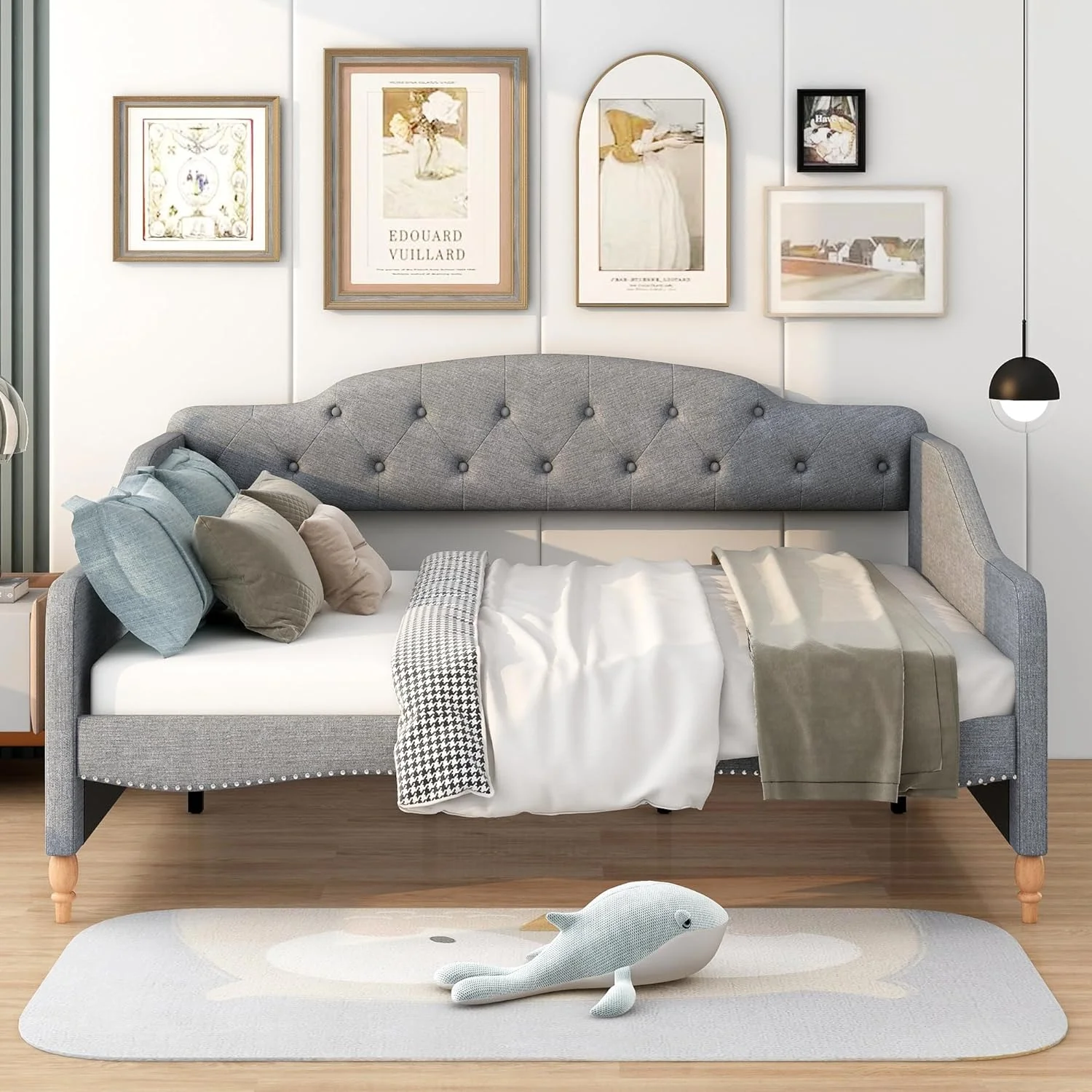 Full Size Daybed, Upholsered Daybed, Sofa Bed Frame Full Size, Lie-Gray