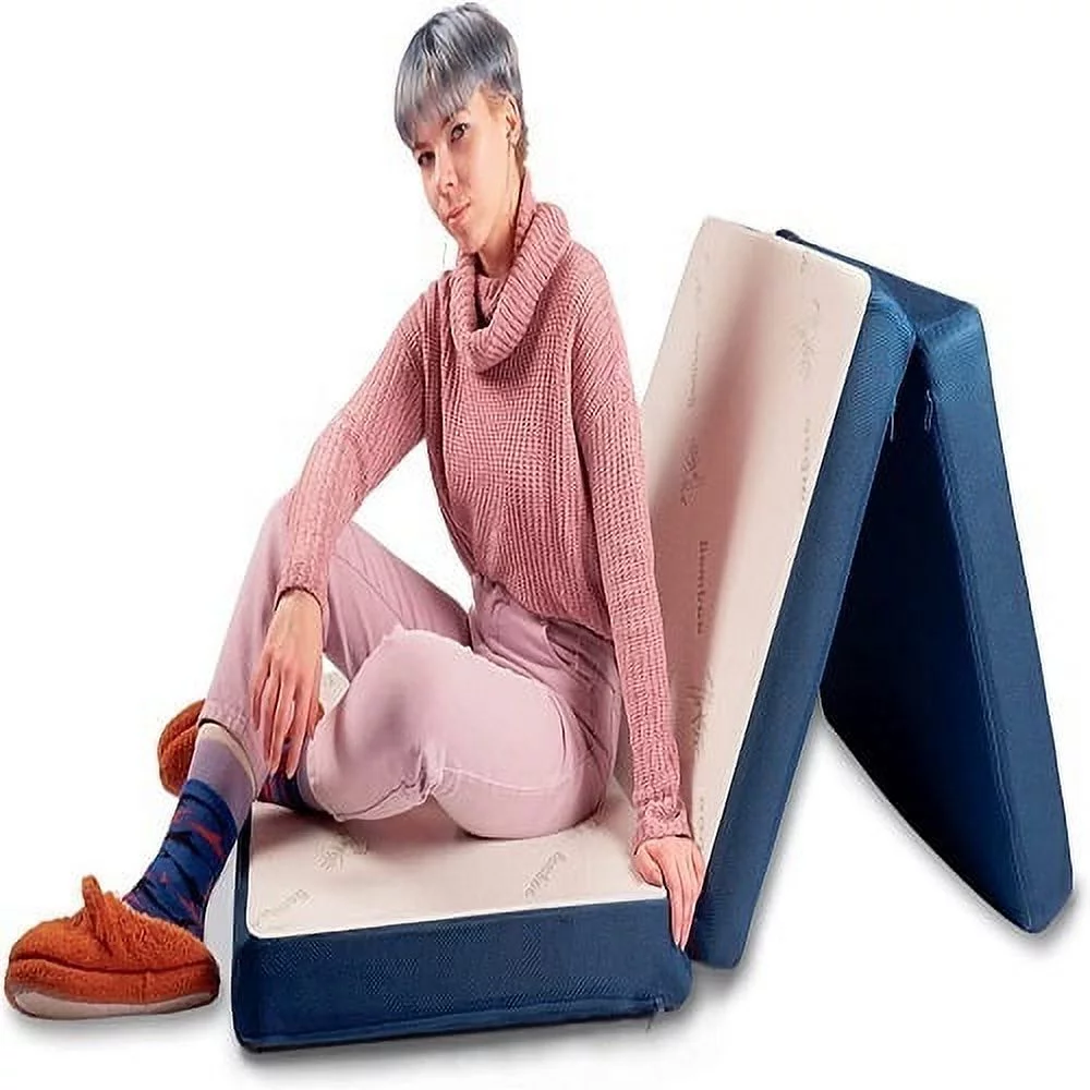 Folding Mattress Twin Size - 4 Inch Portable Memory Foam Trifold Mattr...
