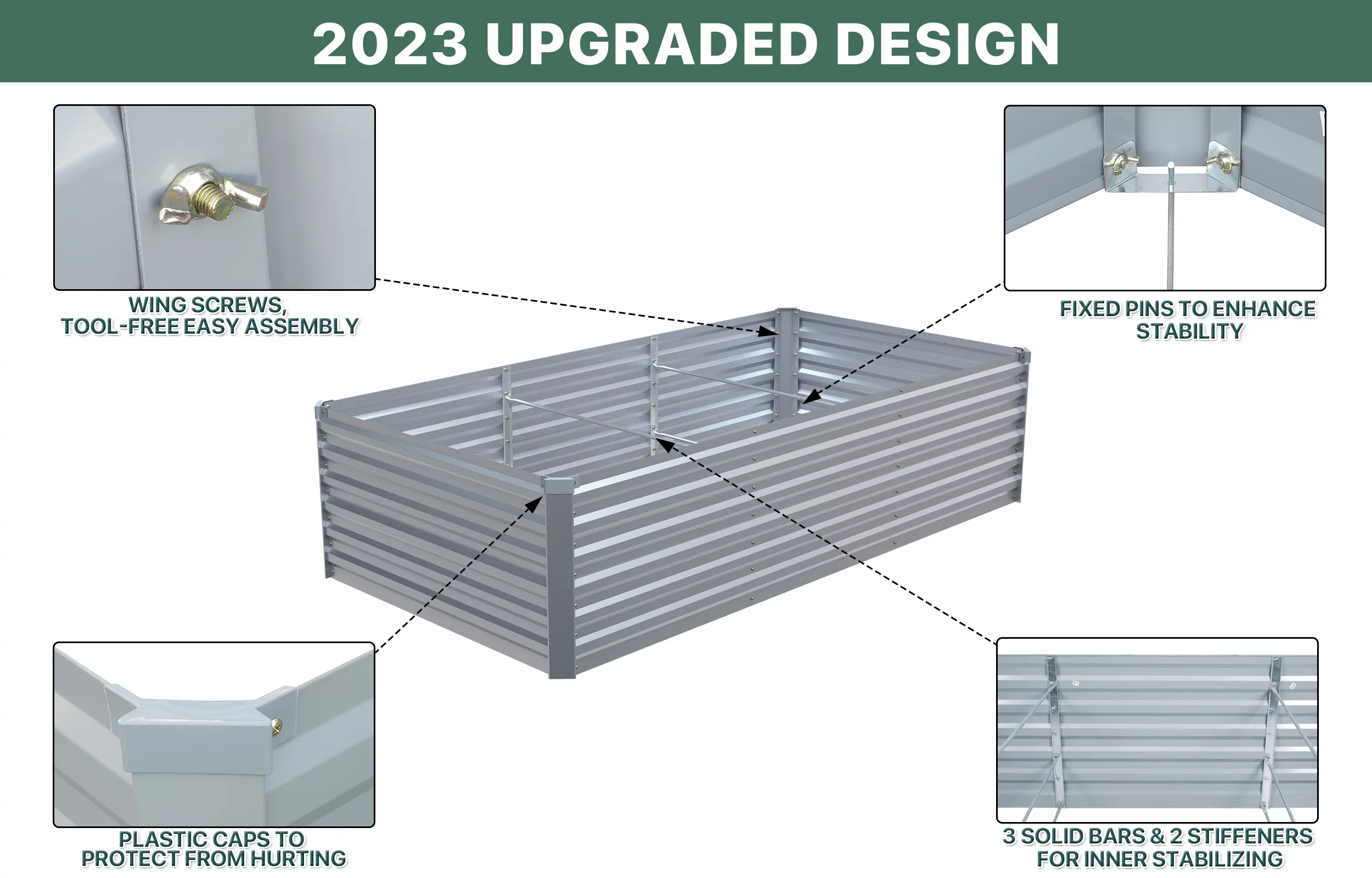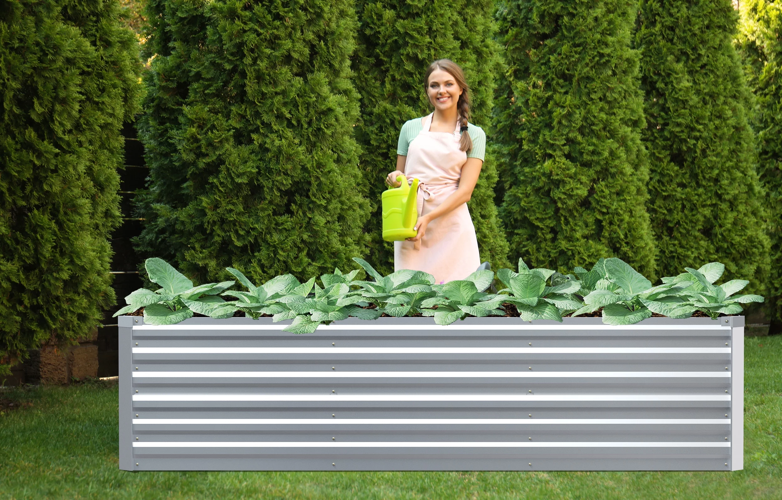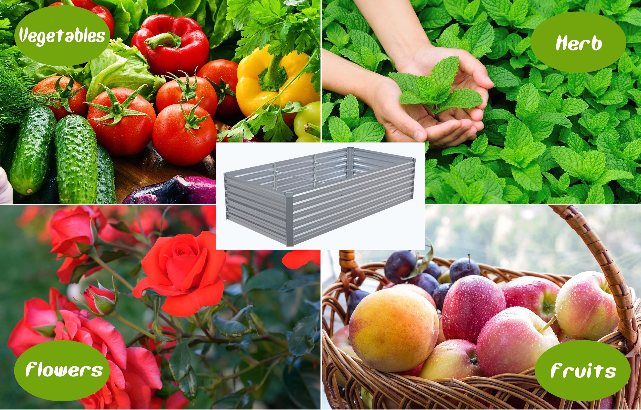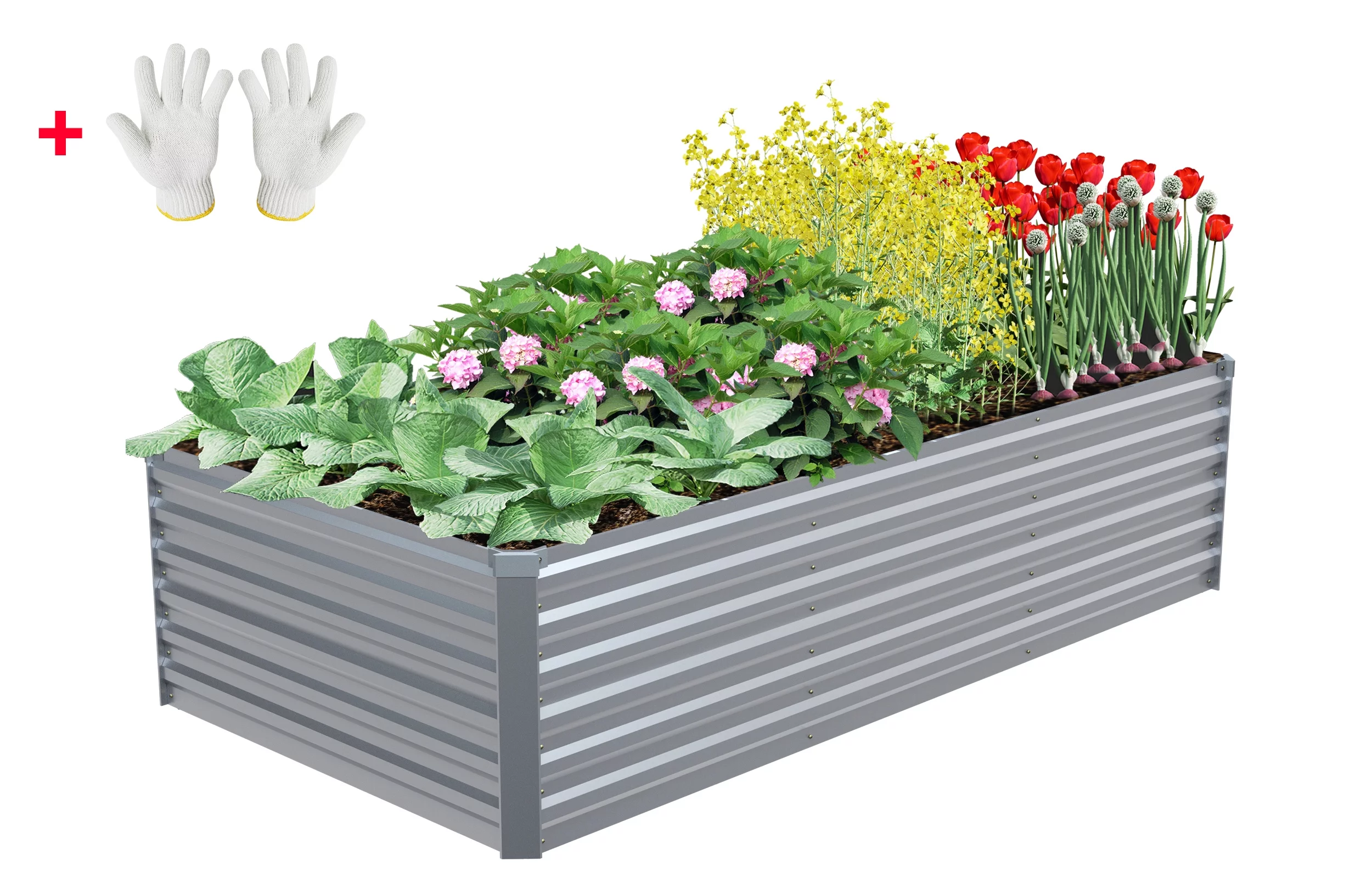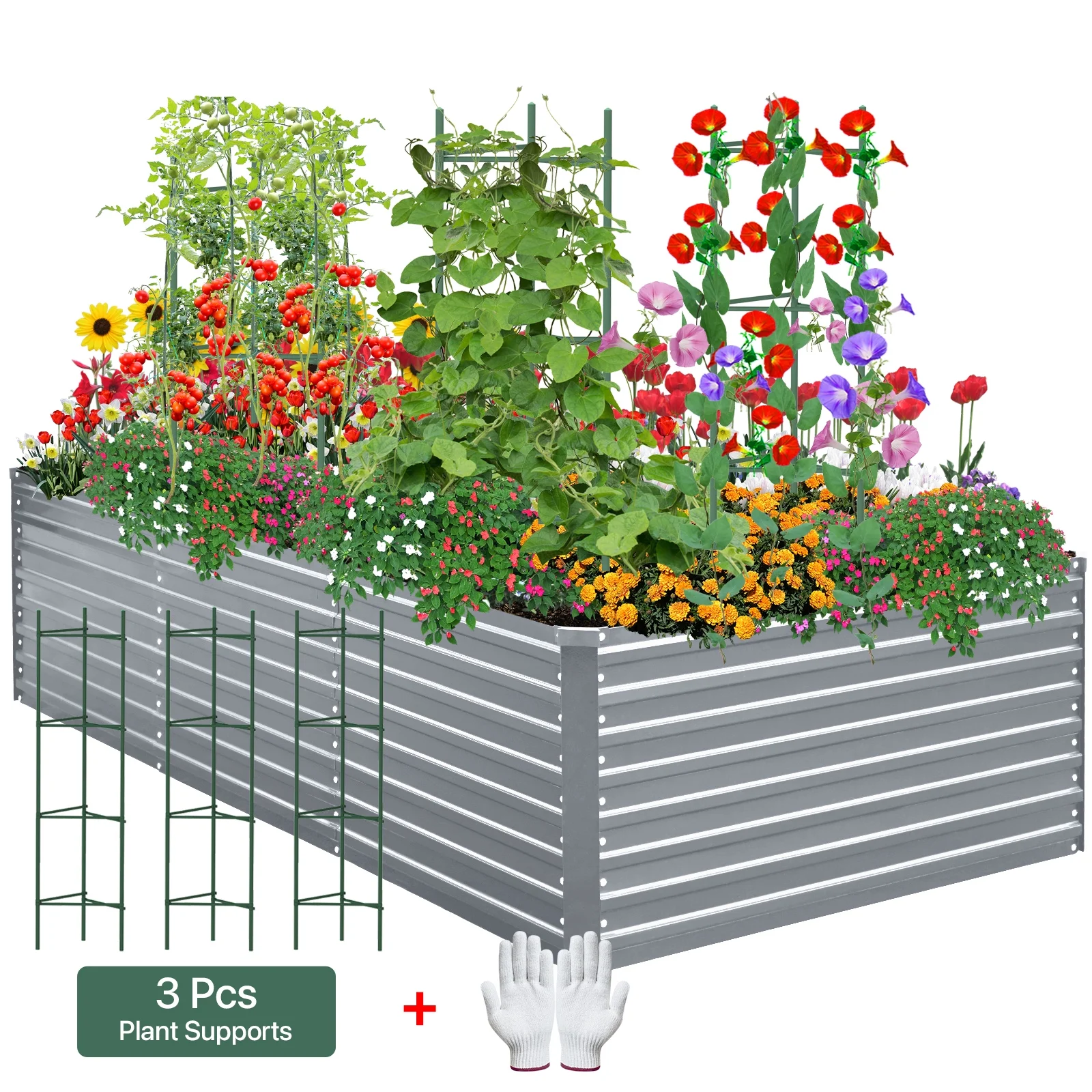 AMOBORO 8x4x2ft Outdoor Metal Raised Garden Bed Planter Box for Vegetables, Flowers, Herbs w/ 3 Tomato Cages Silver
