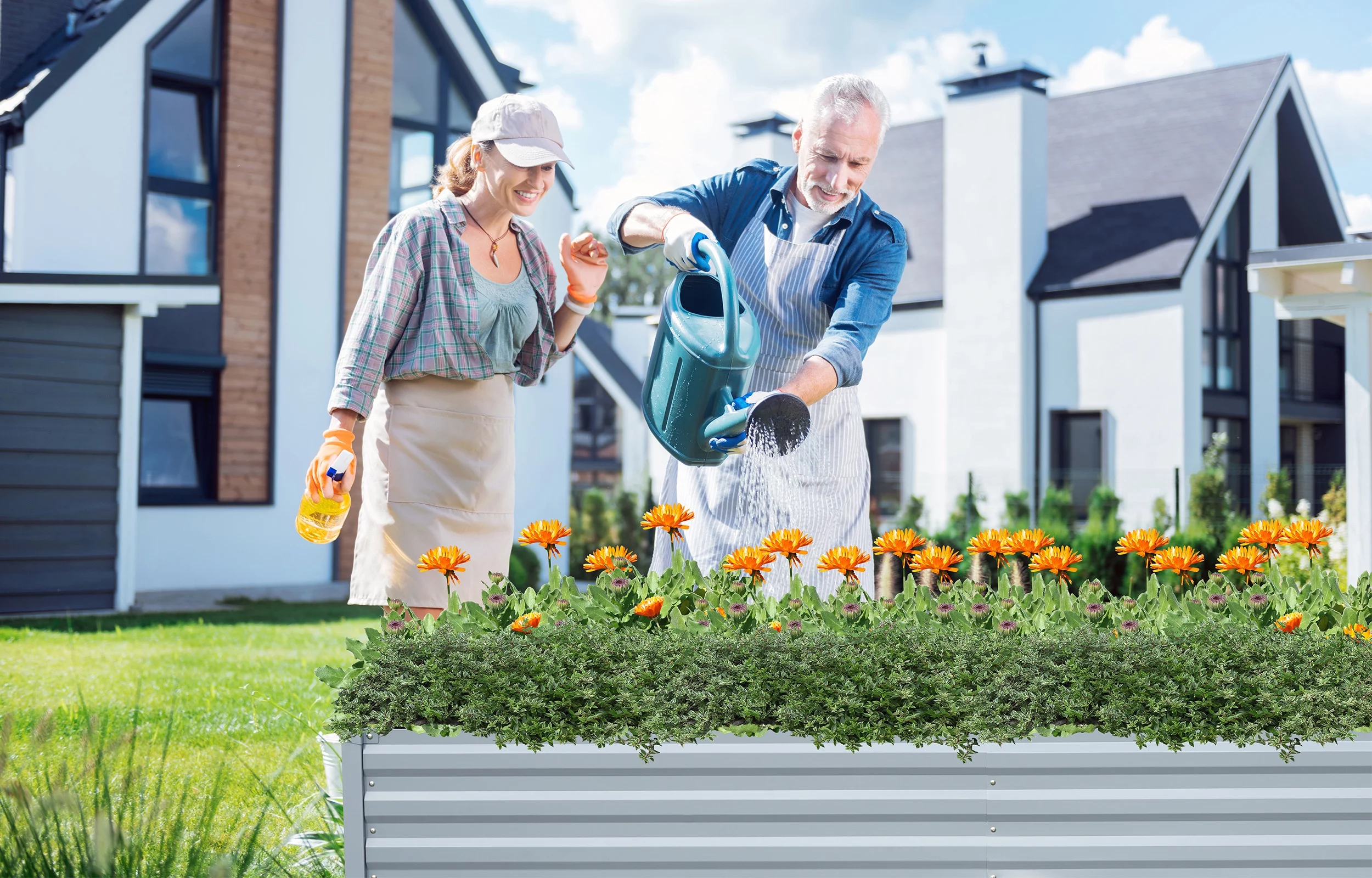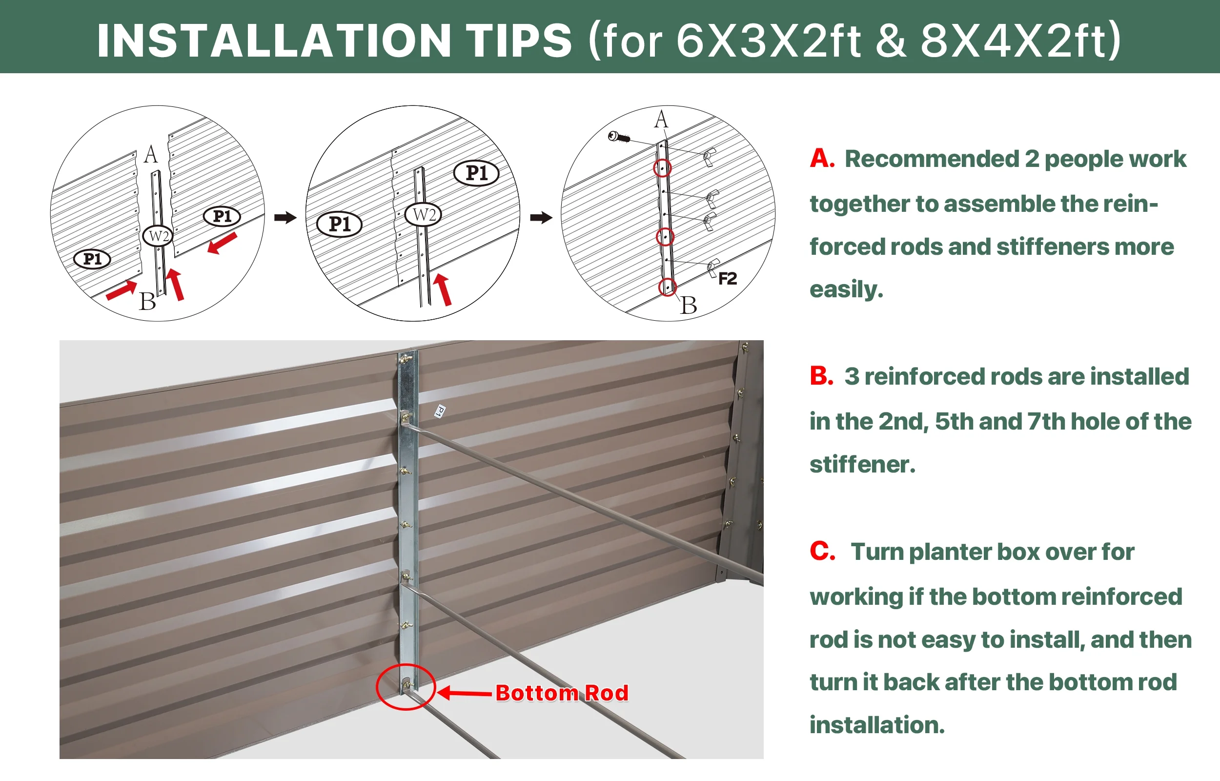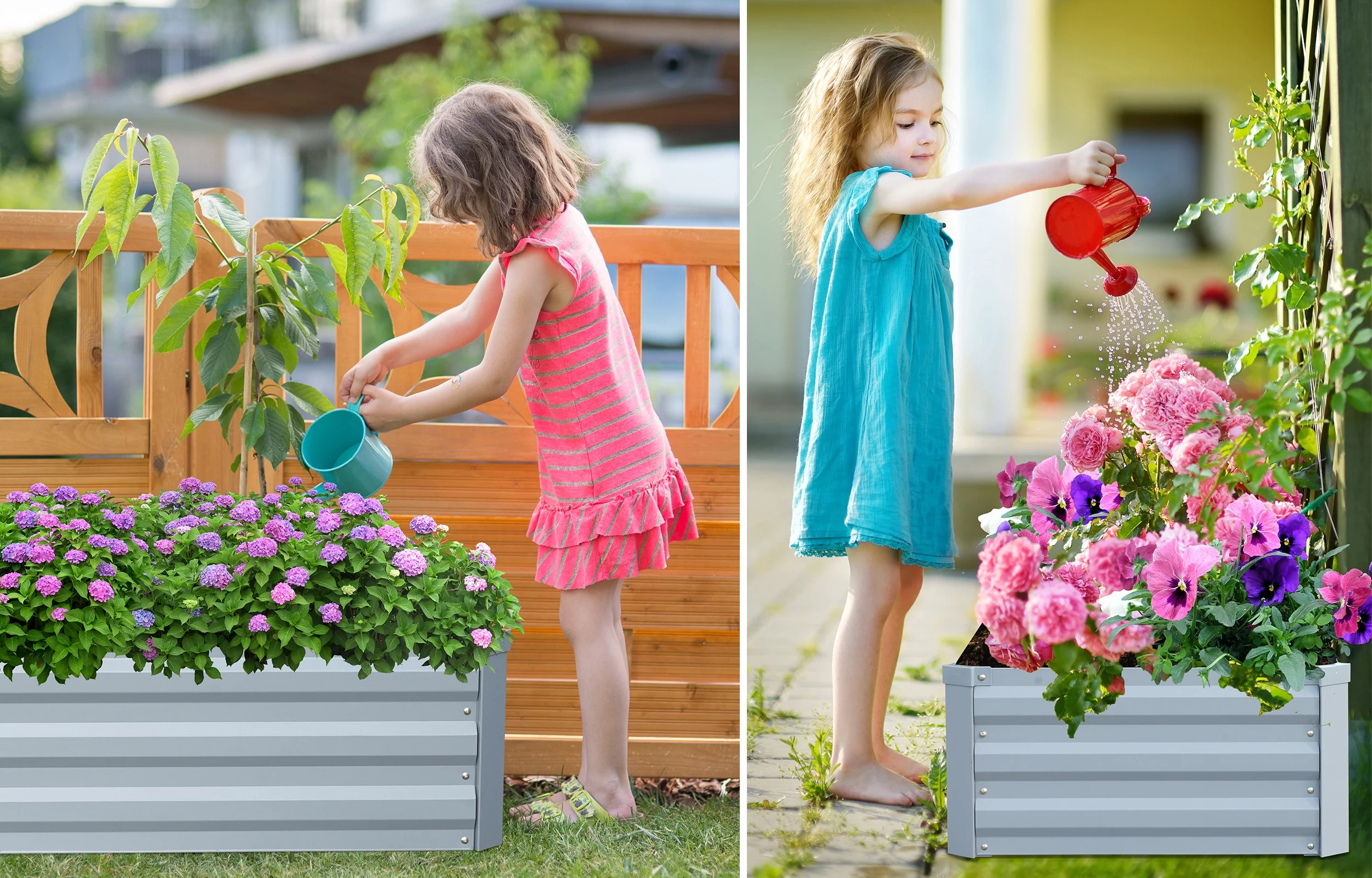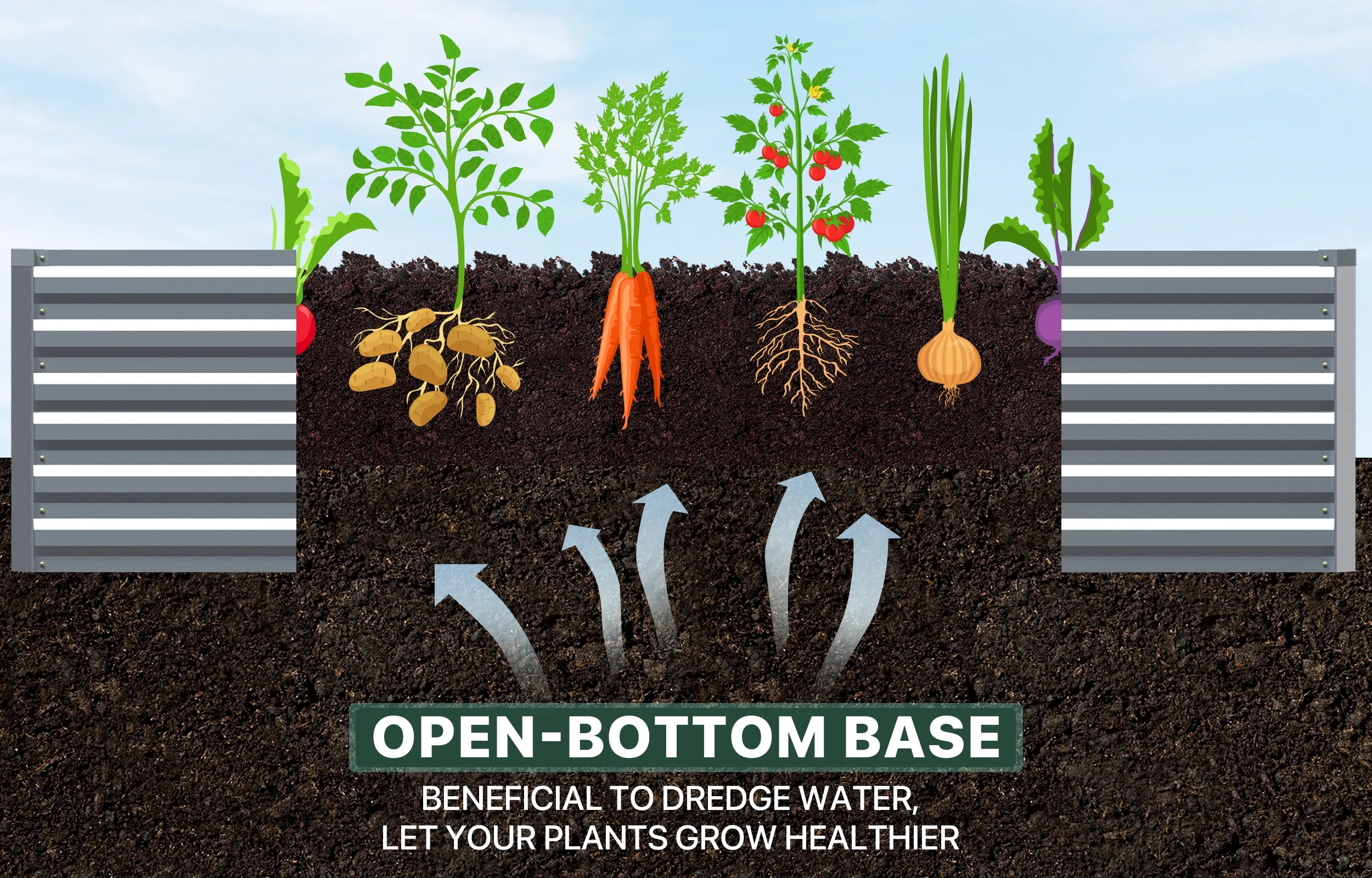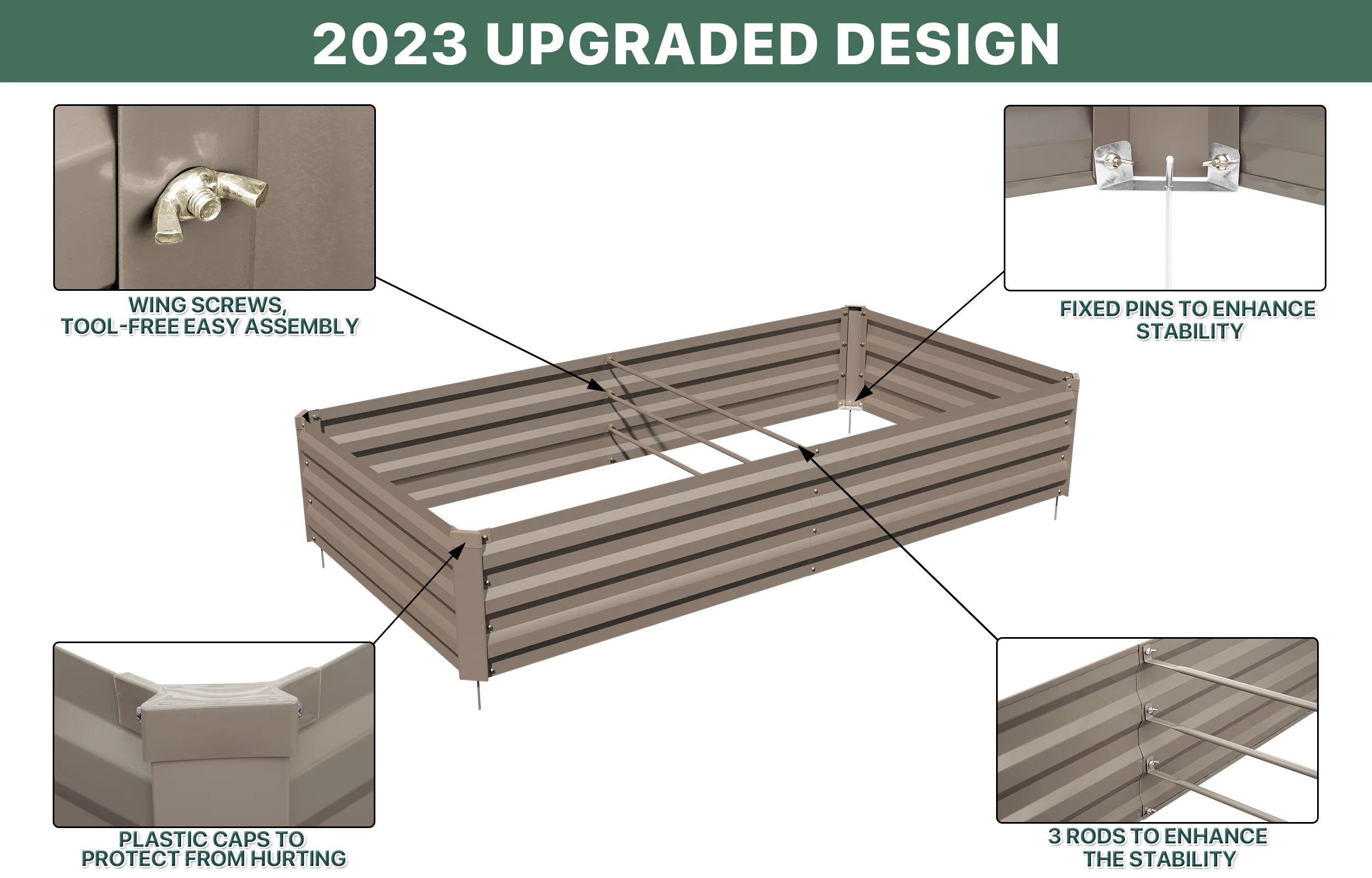AMOBORO 8x4x2ft Outdoor Metal Raised Garden Bed Planter Box for Vegetables, Flowers, Herbs w/ 3 Tomato Cages Silver