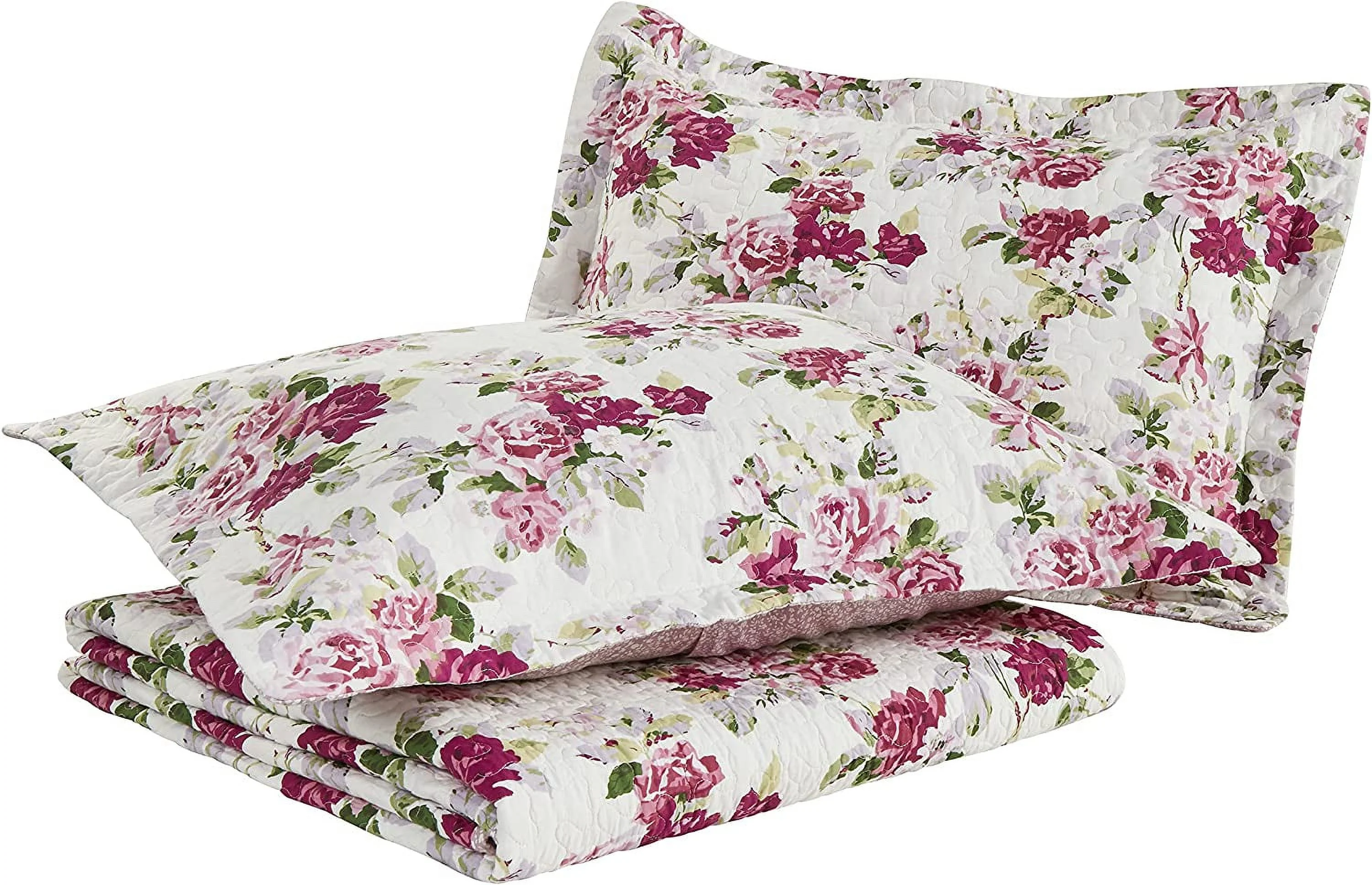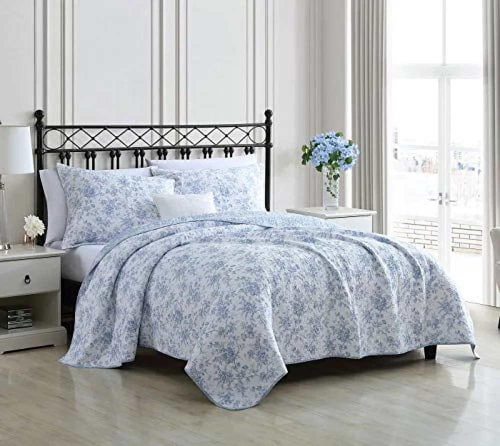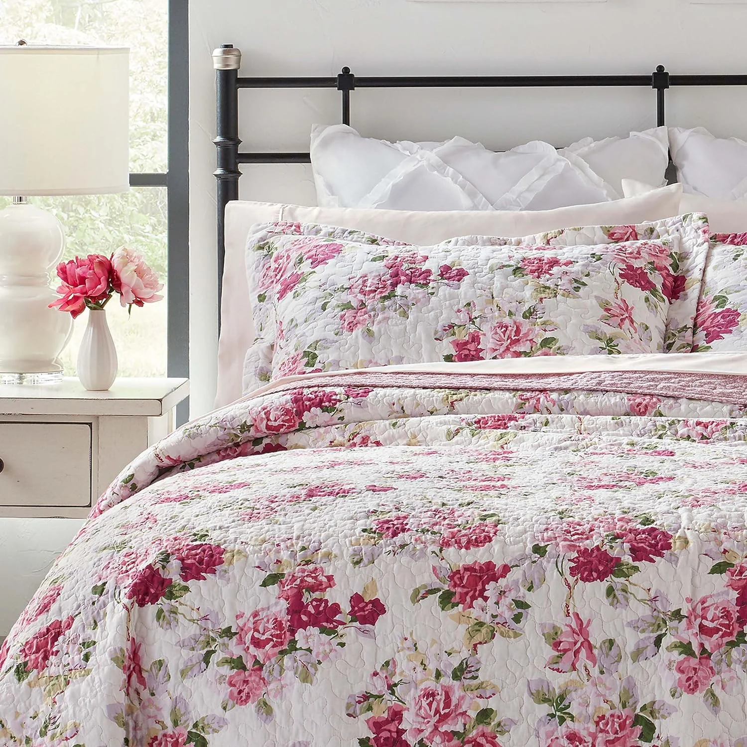 Laura Ashley Wisteria Velour 3-Piece Full/Queen Comforter Set in Blush