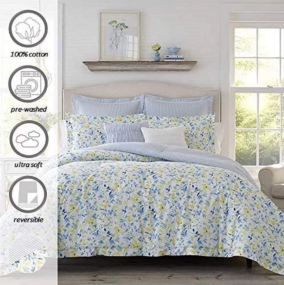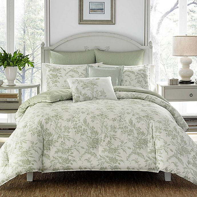 LAURA ASHLEY Natalie 3-Piece Reversible Full/Queen Duvet Cover Set in Sage