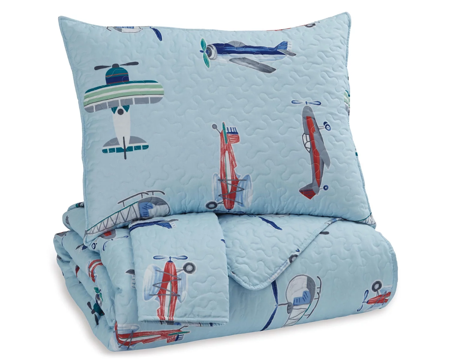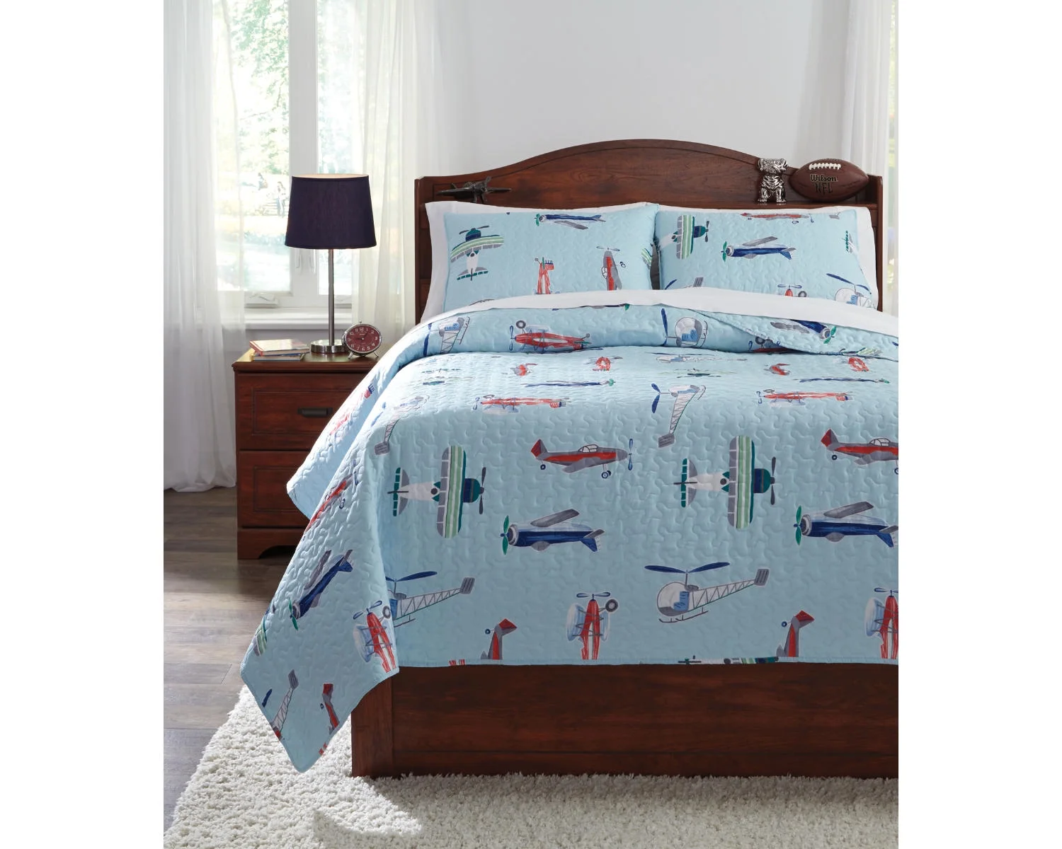 Signature Design by Ashley Youth Merlin 3-Piece Full Coverlet Set Gray/Cream