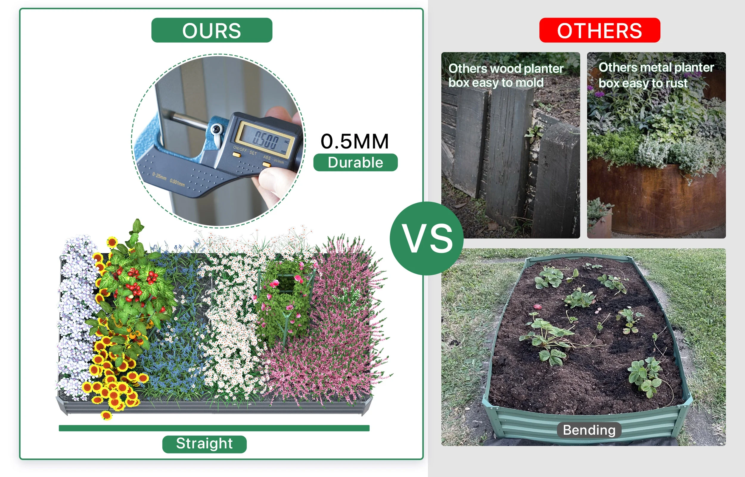 Vego Garden 17" 10 in 1 9.5 ftx2.5 ft / 8 ft x 4 ft Modular Metal Raised Gardening Bed Olive Green