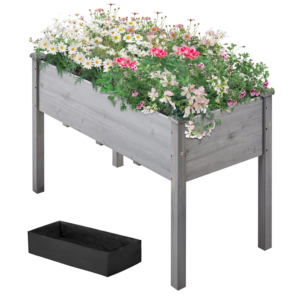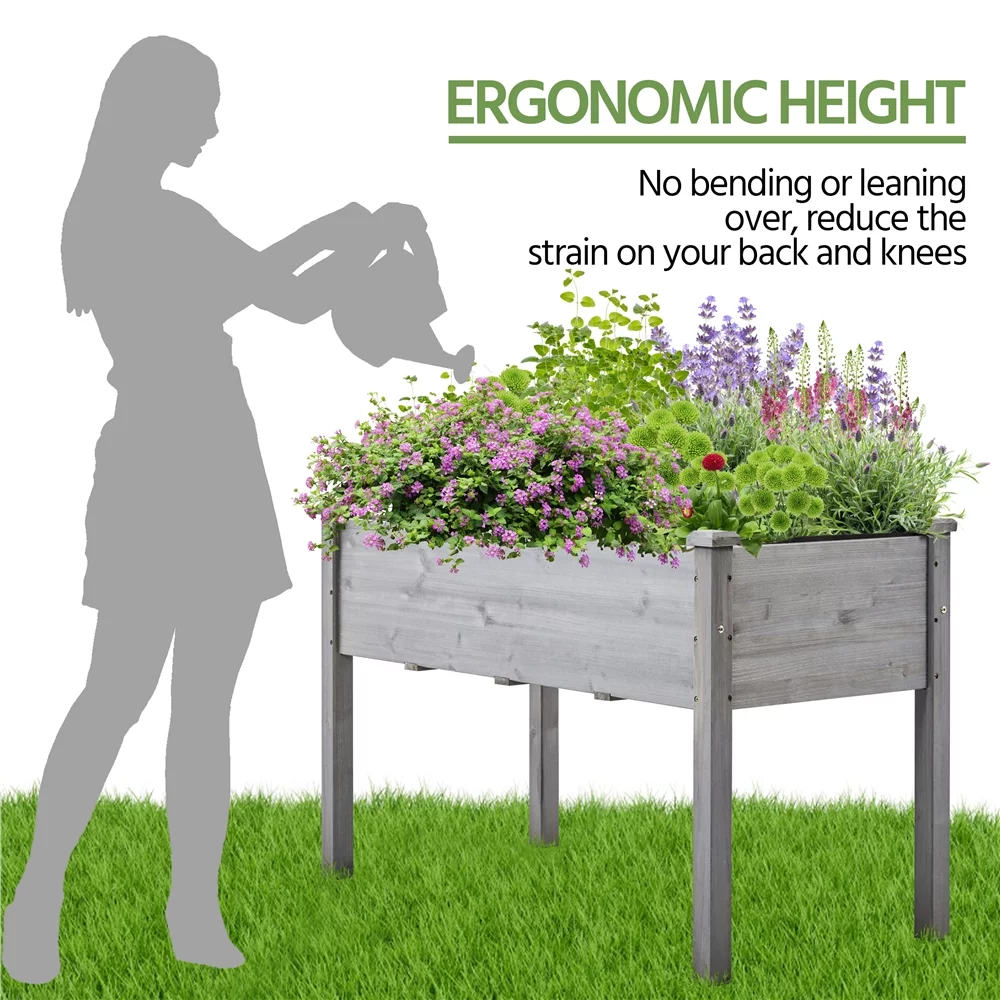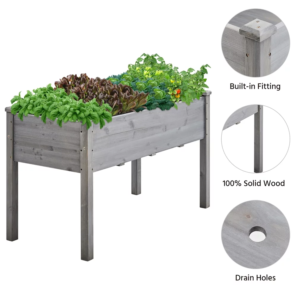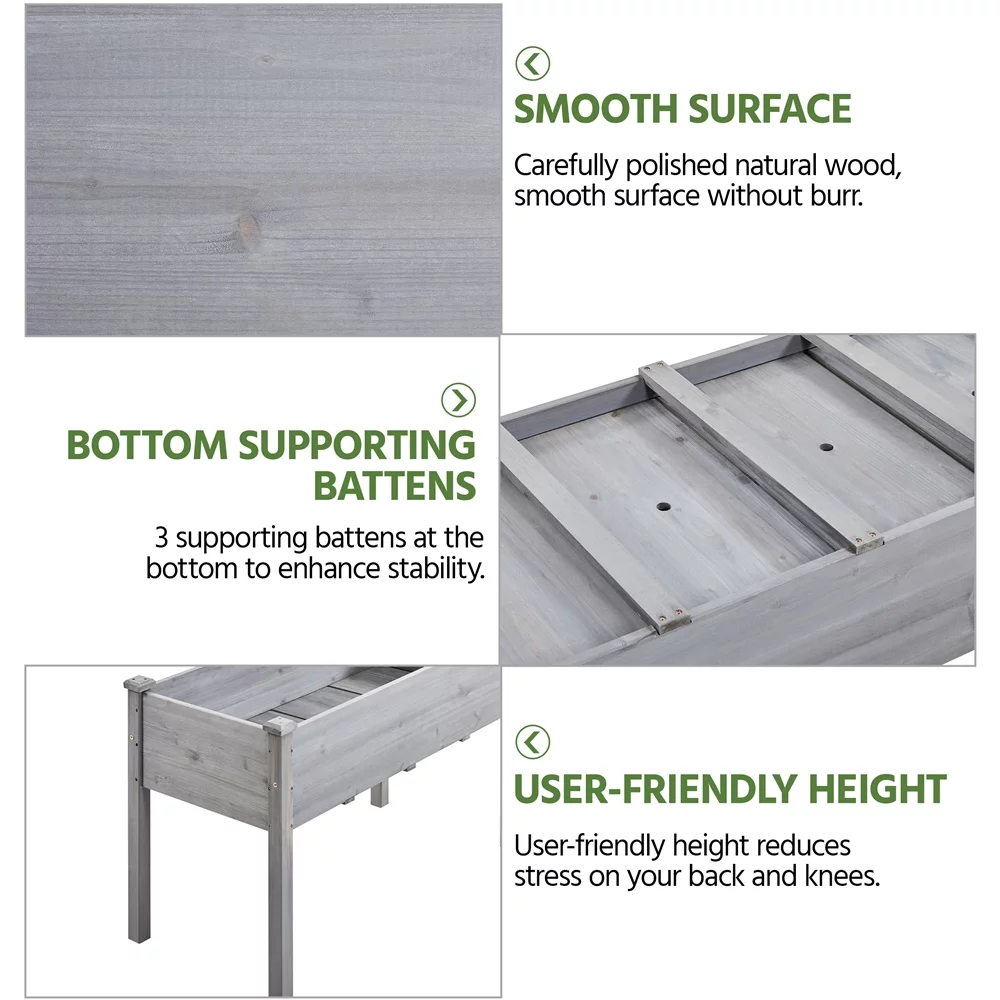 Topeakmart Fir Wood Garden Bed Rectangle Raised Planters Box for Vegetables/Fruits, Gray
