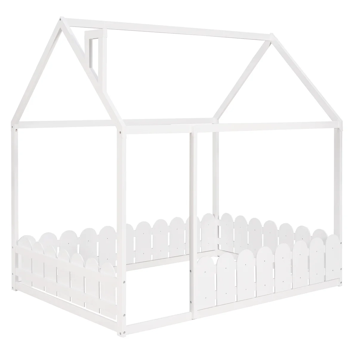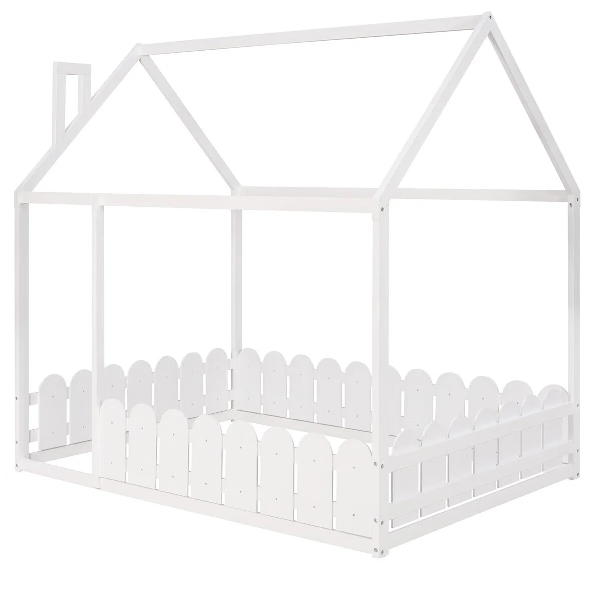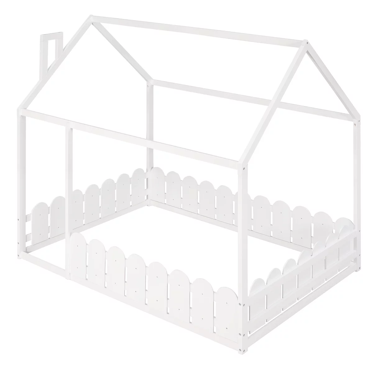 Full Size Wood Bed House Bed Frame with Fence,for Kids,Teens,Girls,Boys (White )
