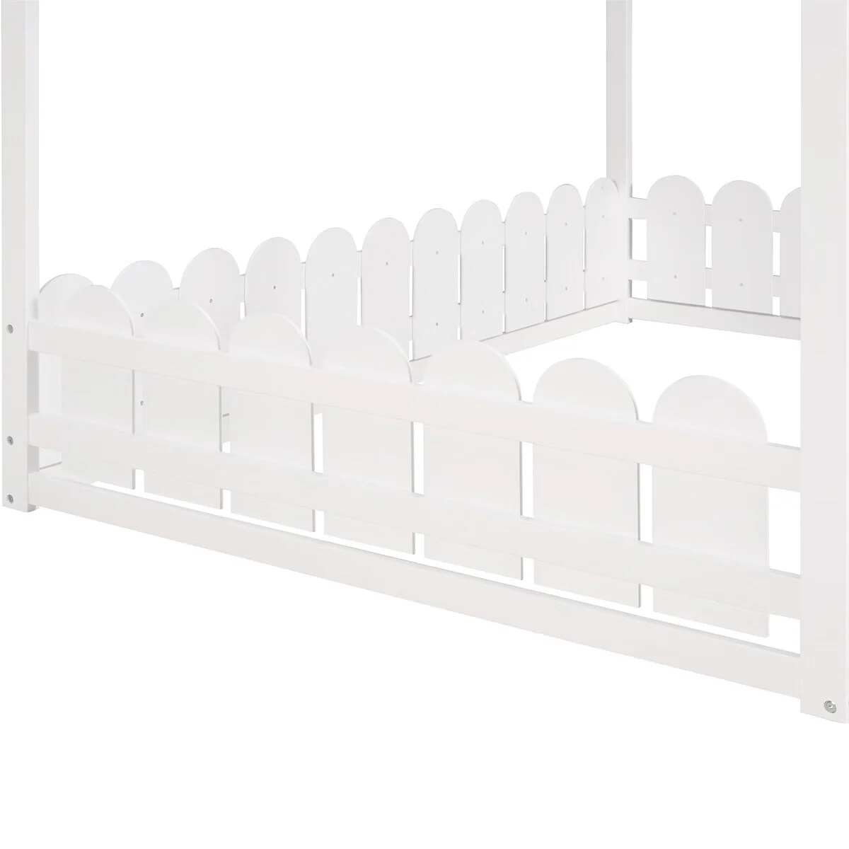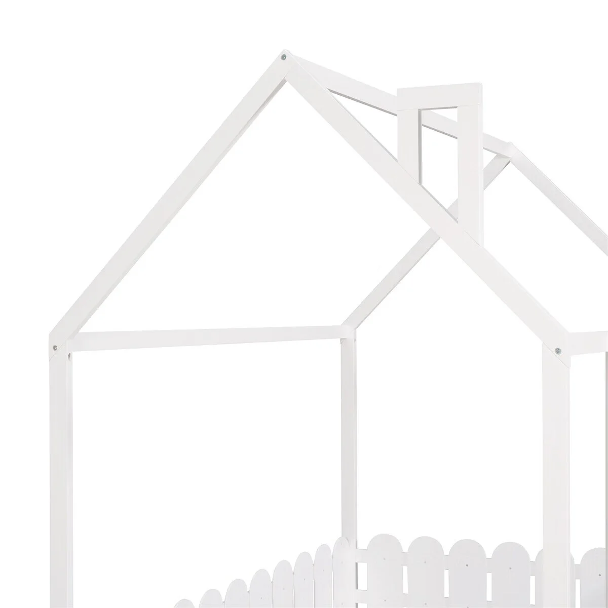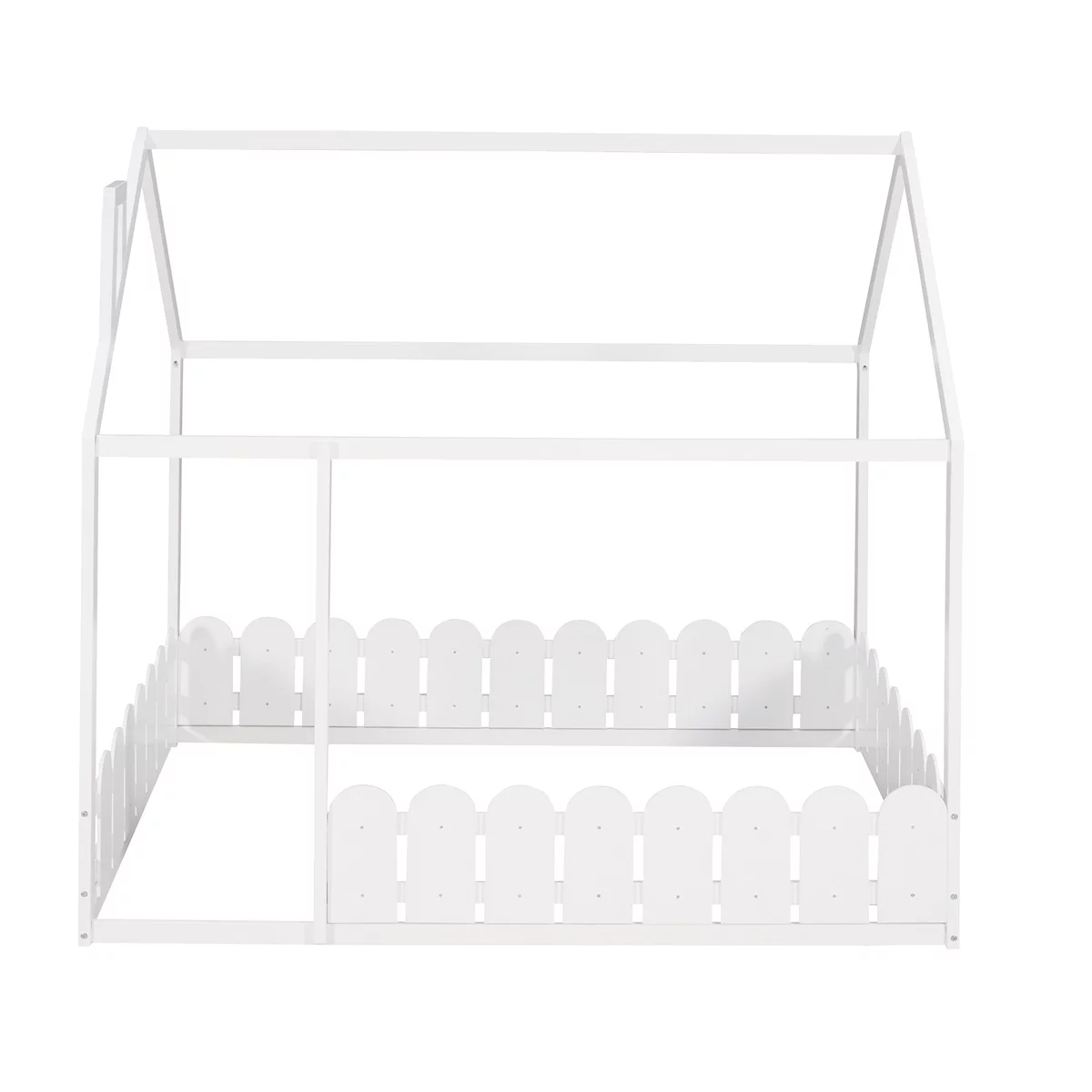 Full Size Wood Bed House Bed Frame with Fence,for Kids,Teens,Girls,Boys (White )