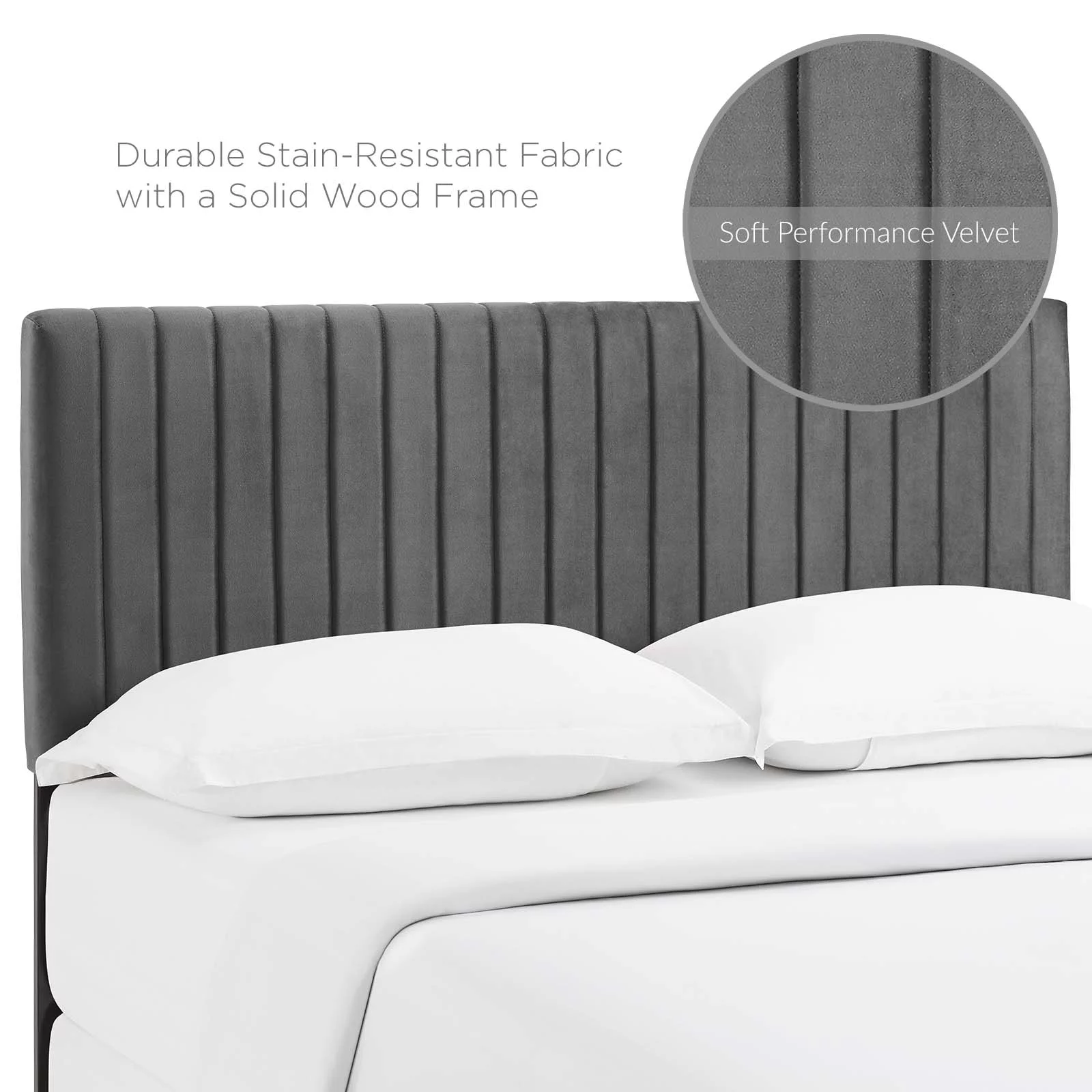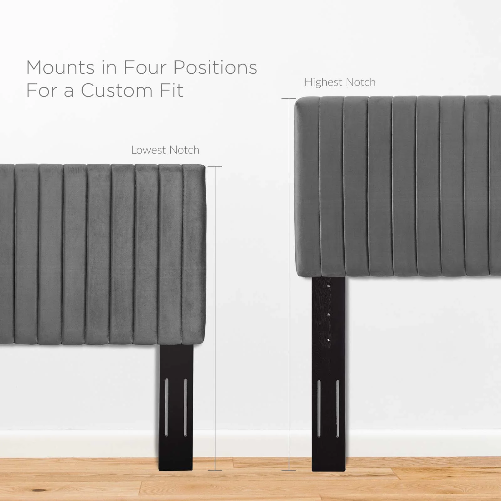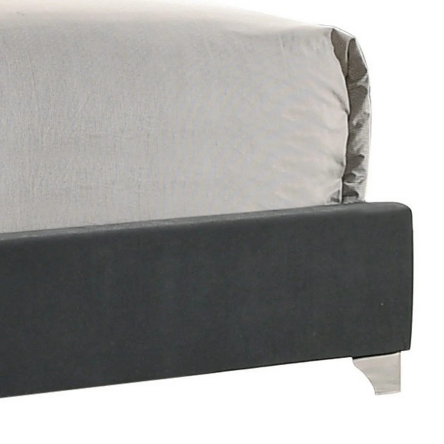 BenJara Giya California King Bed, Tufted Headboard, Nailed Gray Velvet Upholstery