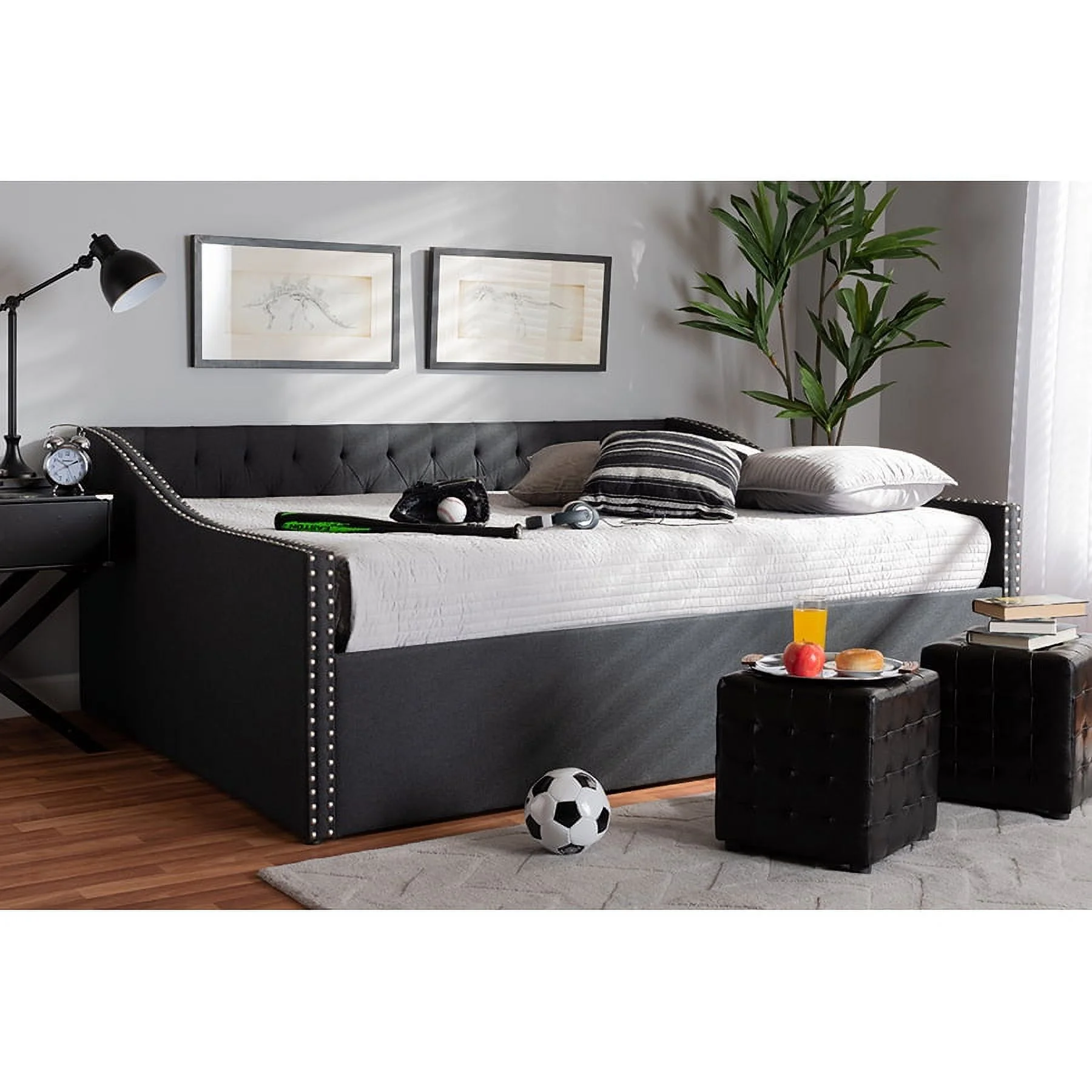 Baxton Studio Haylie Modern and Contemporary Dark Grey Fabric Upholstered Full Size Daybed