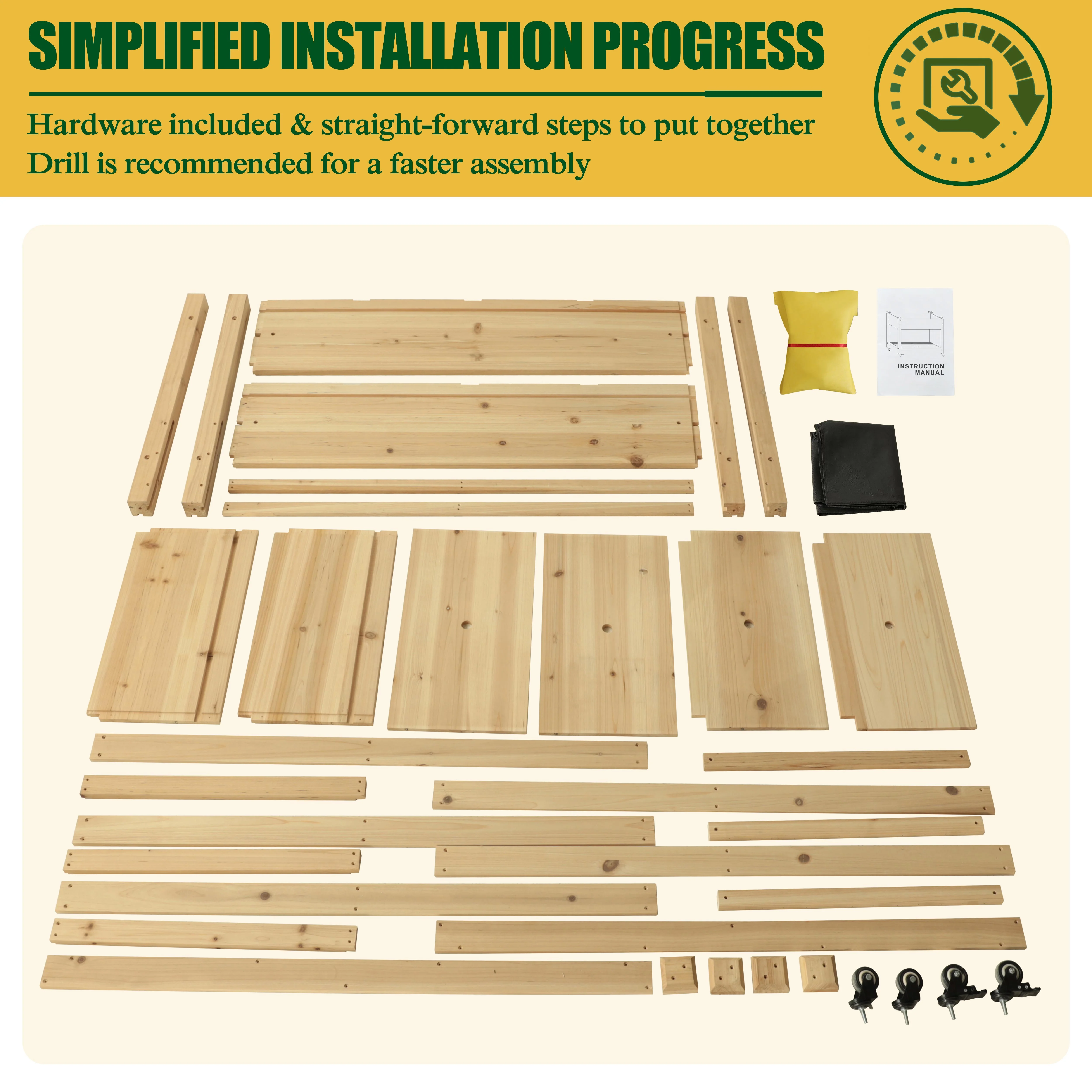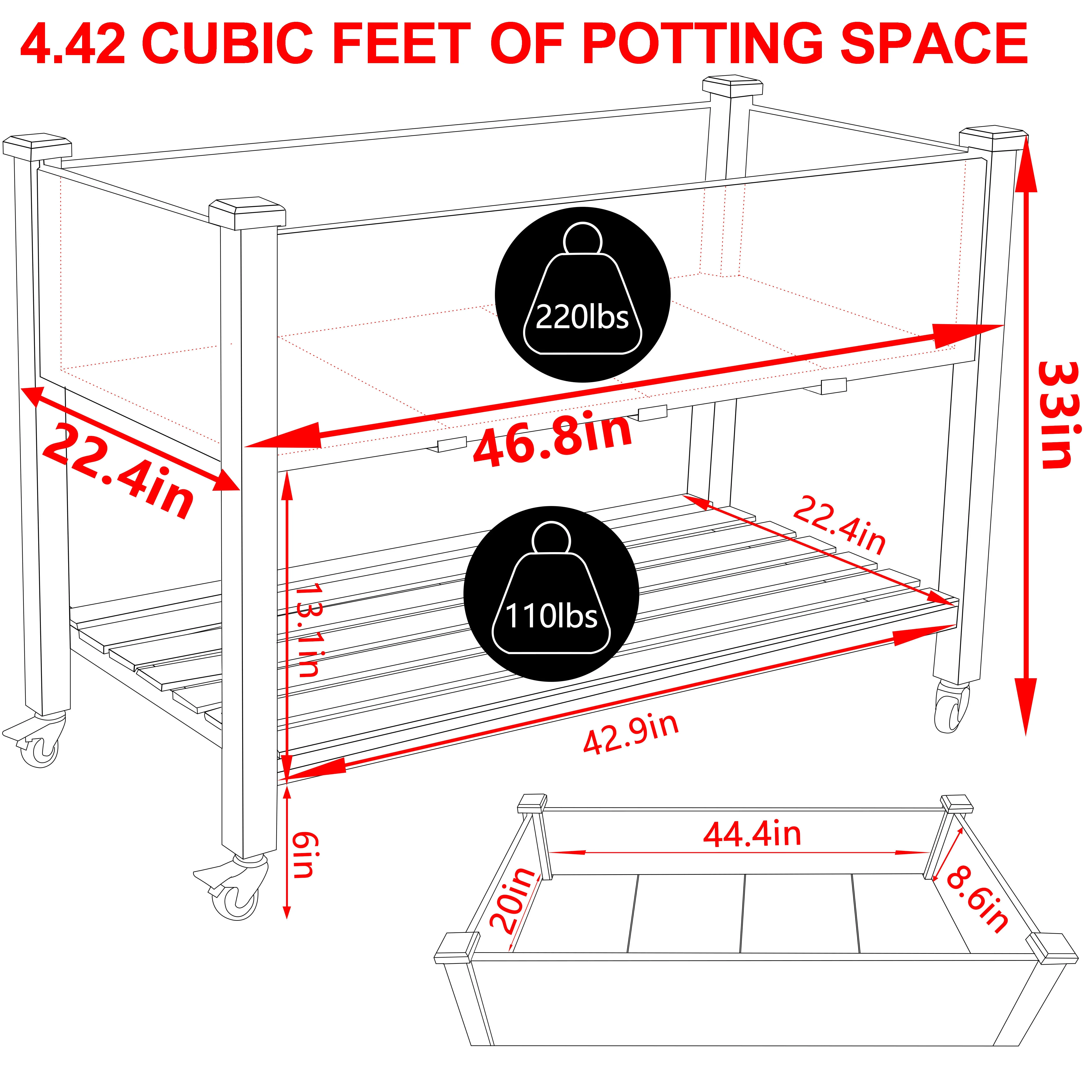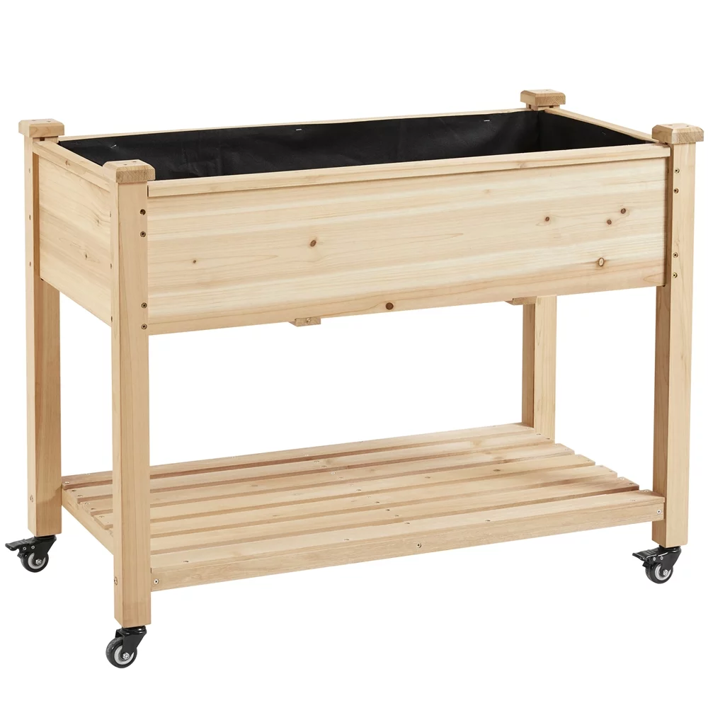 VEIKOUS Raised Garden Bed, 47''W x 22''D x 33''H Planter Box w/4 Wheels and Legs for Herbs and Vegetables