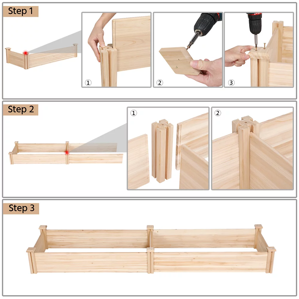 Easyfashion Wooden Raised Garden Bed, 96.7 x 24.6 x 10.6inch (L x W x H),Natural Wood
