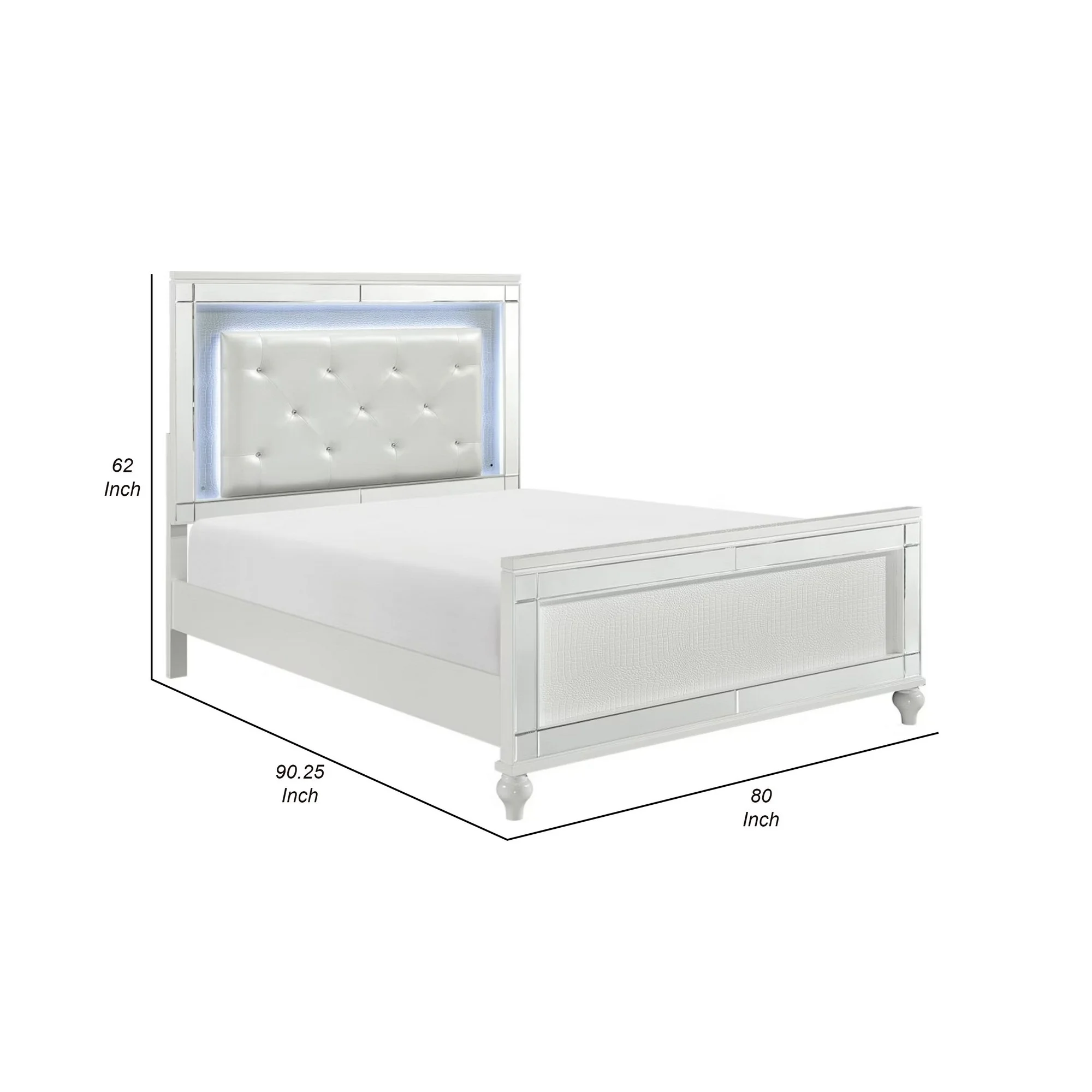 Benjara BM295844 Quinn Modern California Bed - Backlit LED Headboard, Crisp White - King Size
