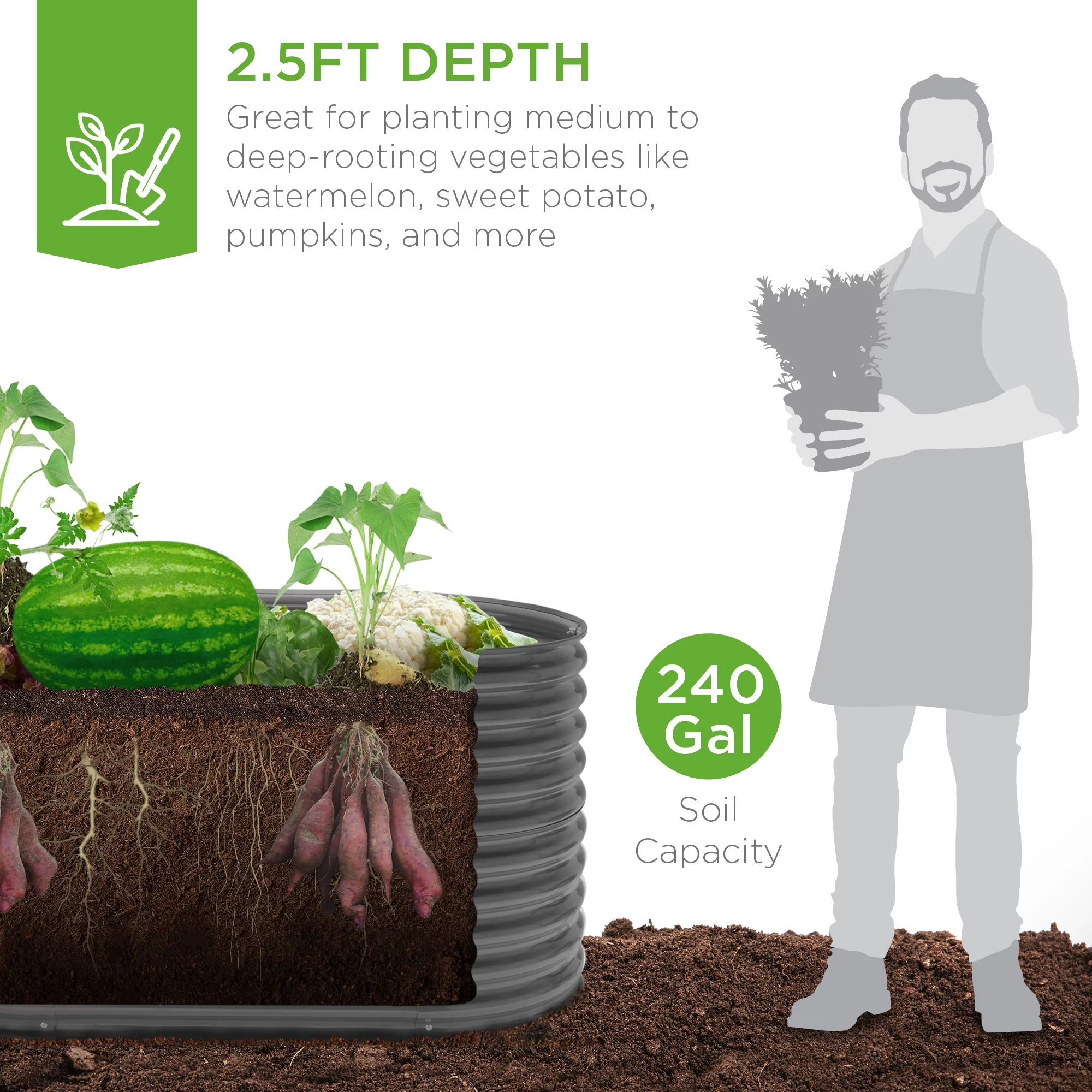 Best Choice Products 4x2x2ft Outdoor Raised Metal Oval Garden Bed, Planter Box for Vegetables, Flowers - Charcoal