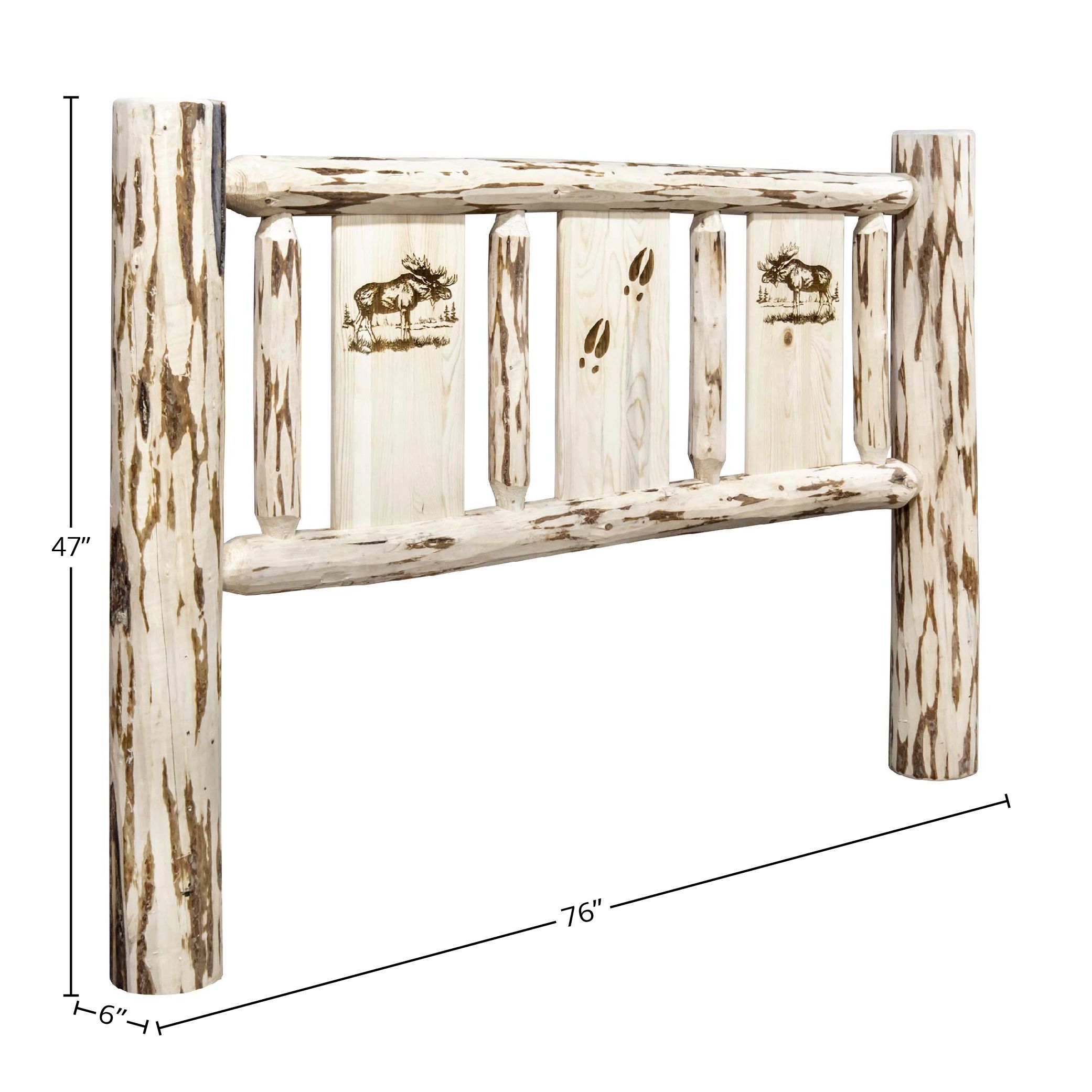 Montana Collection California King Headboard w/ Laser Engraved Moose Design, Clear Lacquer Finish