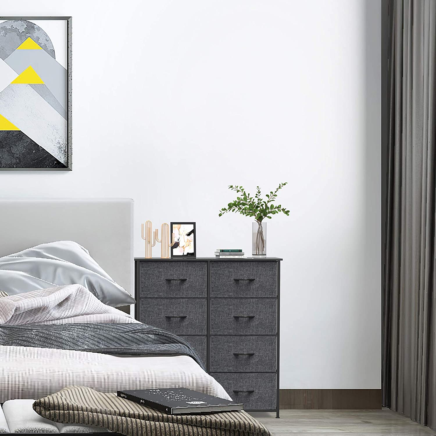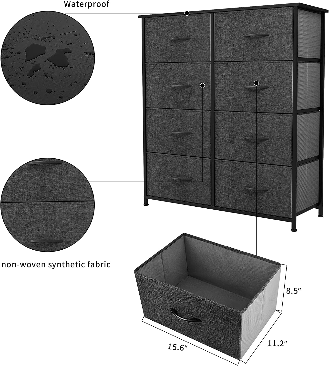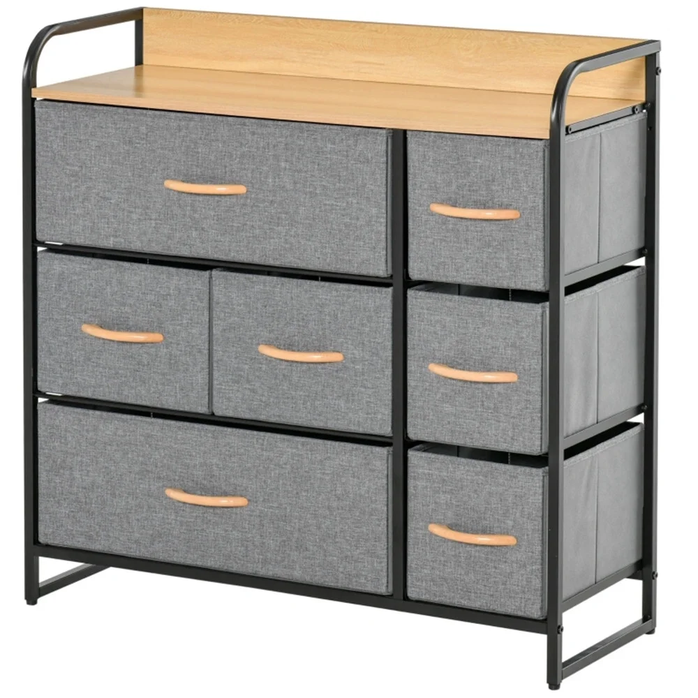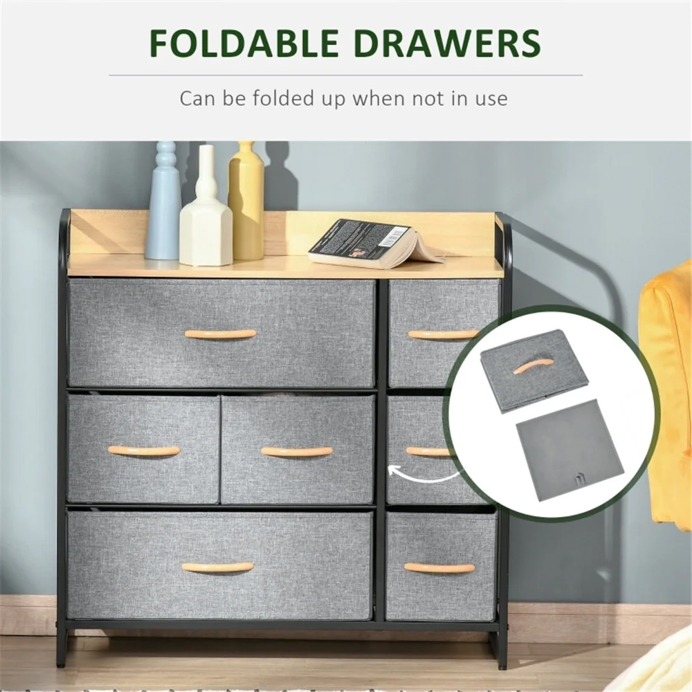 Oufan Fabric Dresser for Bedroom, Storage Drawer Unit,Dresser with 7 Deep Drawers for Office, College Dorm, Gray