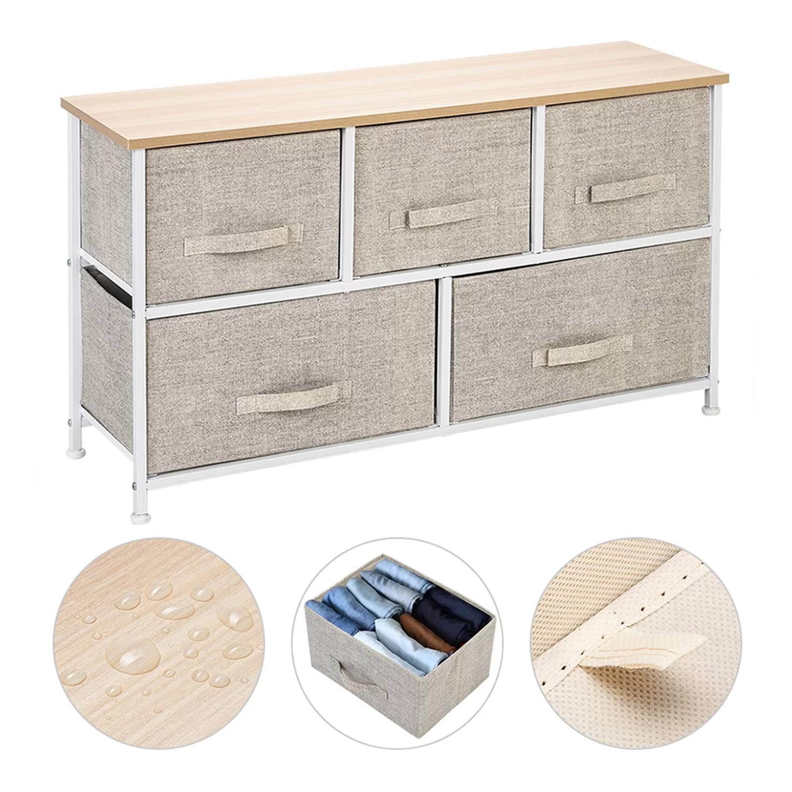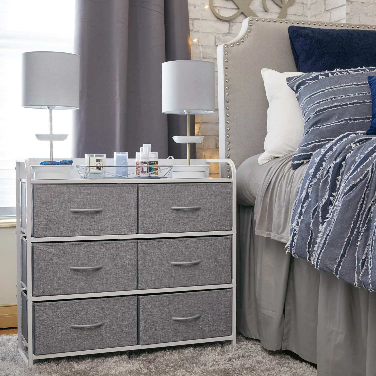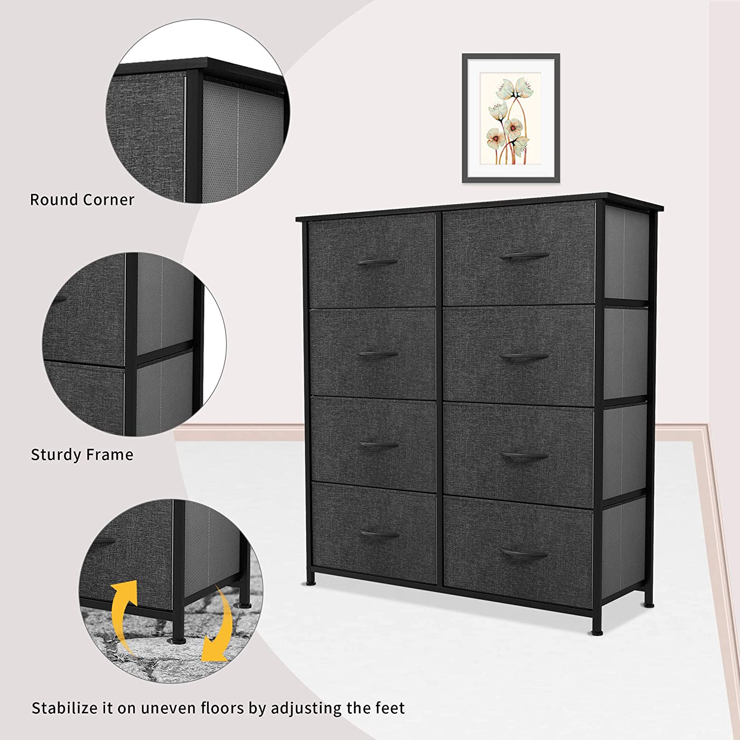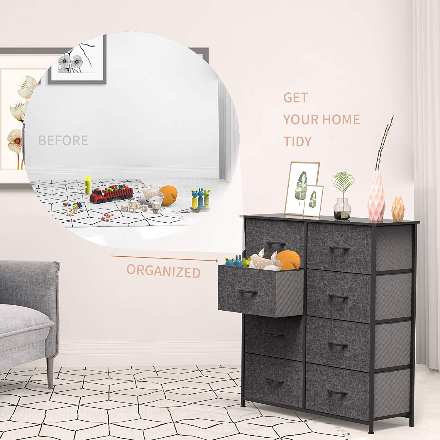 Oufan Fabric Dresser for Bedroom, Storage Drawer Unit,Dresser with 7 Deep Drawers for Office, College Dorm, Gray