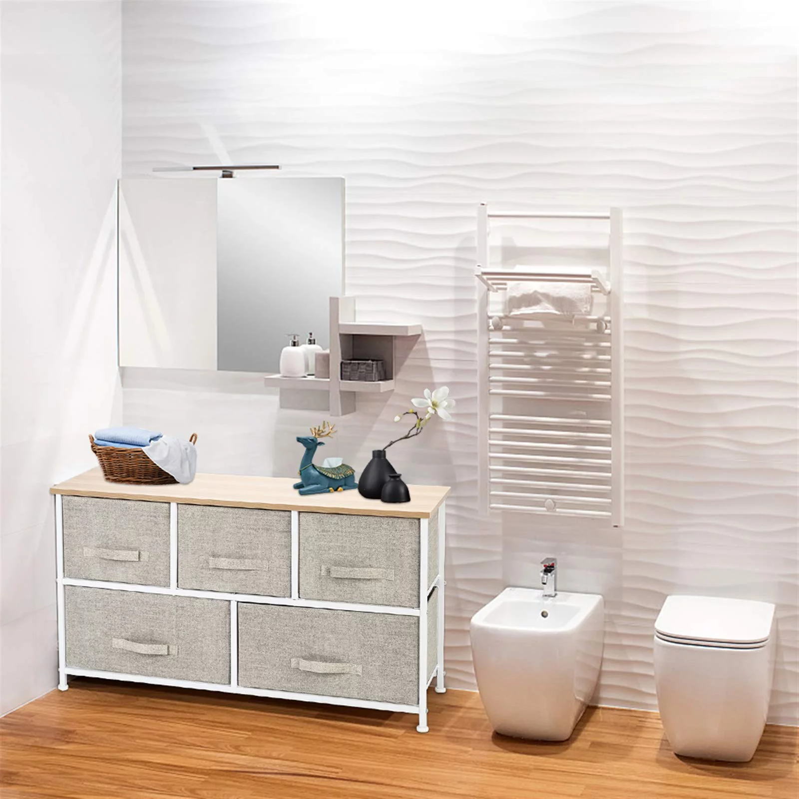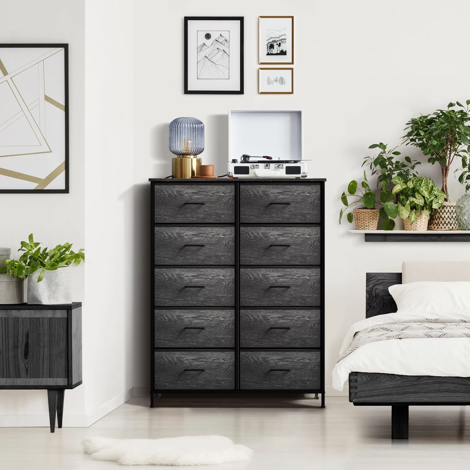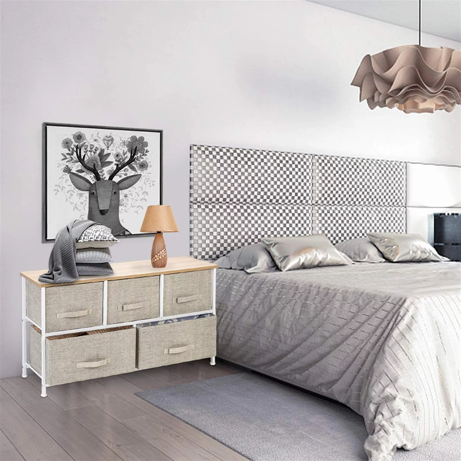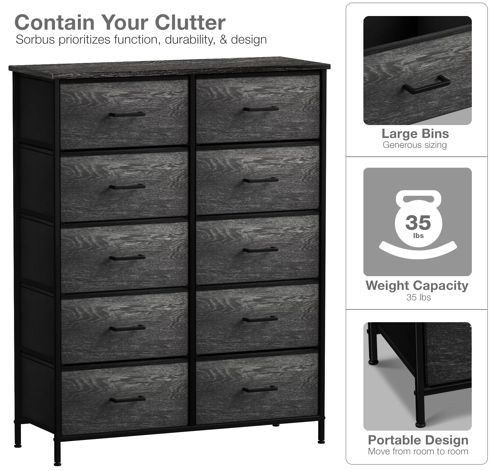 Oufan Fabric Dresser for Bedroom, Storage Drawer Unit,Dresser with 7 Deep Drawers for Office, College Dorm, Gray