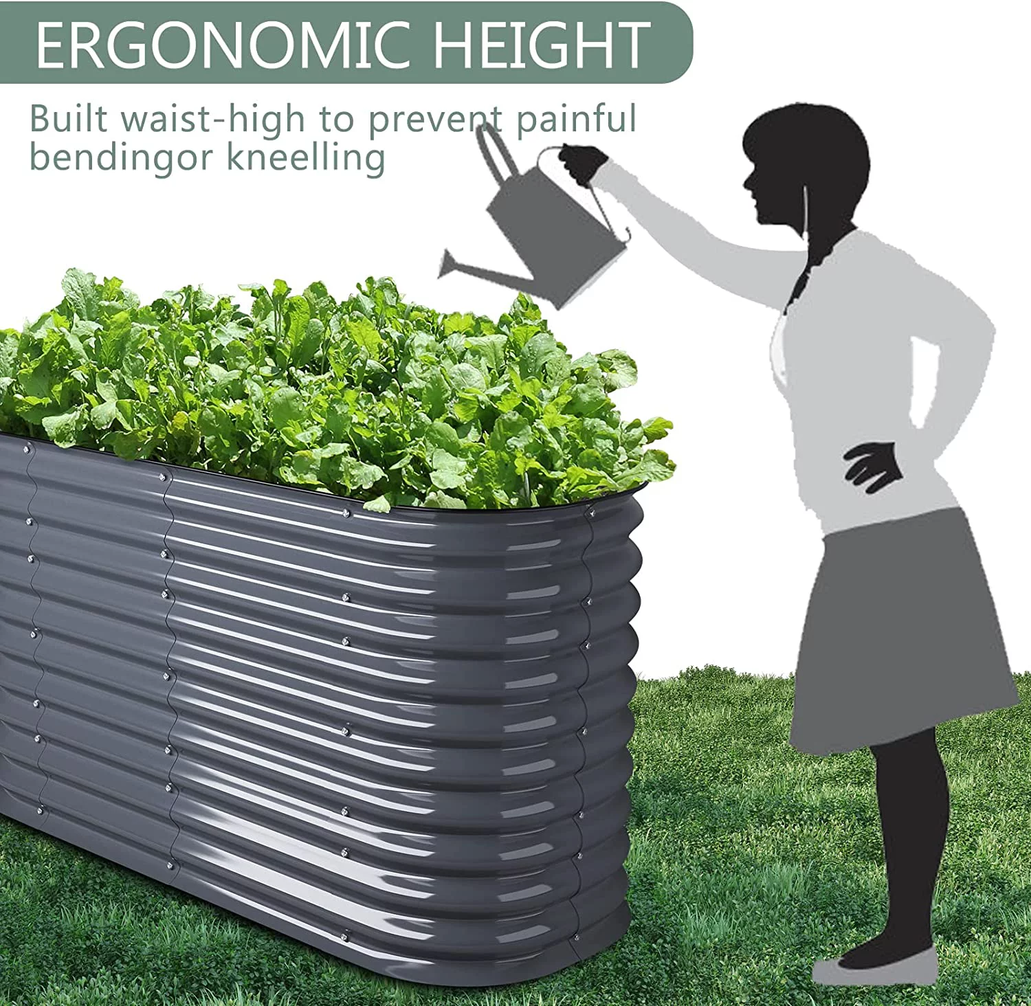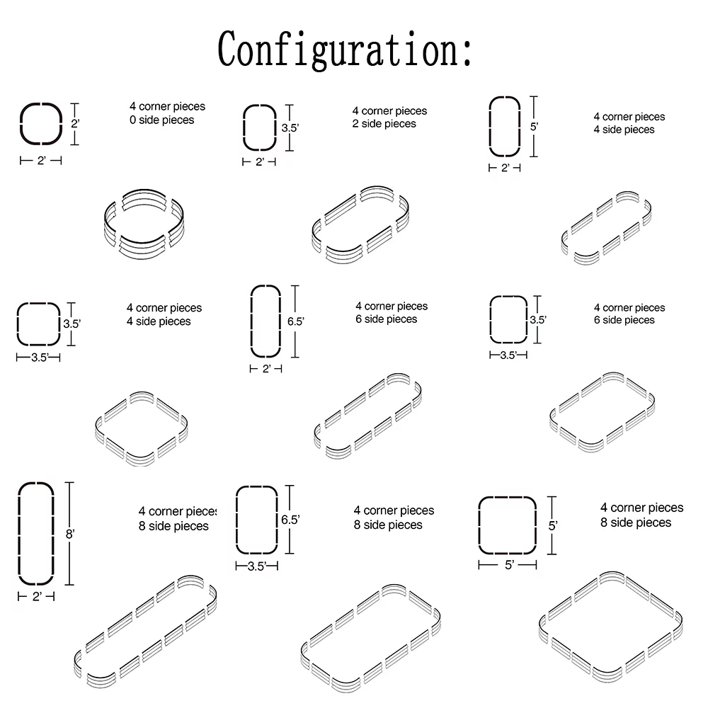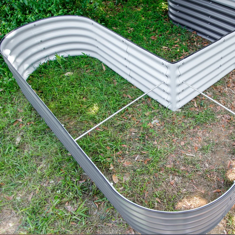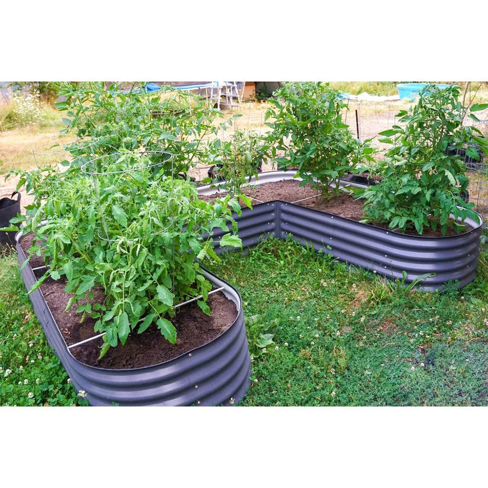 VEGEGA 17" Tall U-Shaped Large Size Grey Metal Modular Corrugated Raised Garden Bed Kit