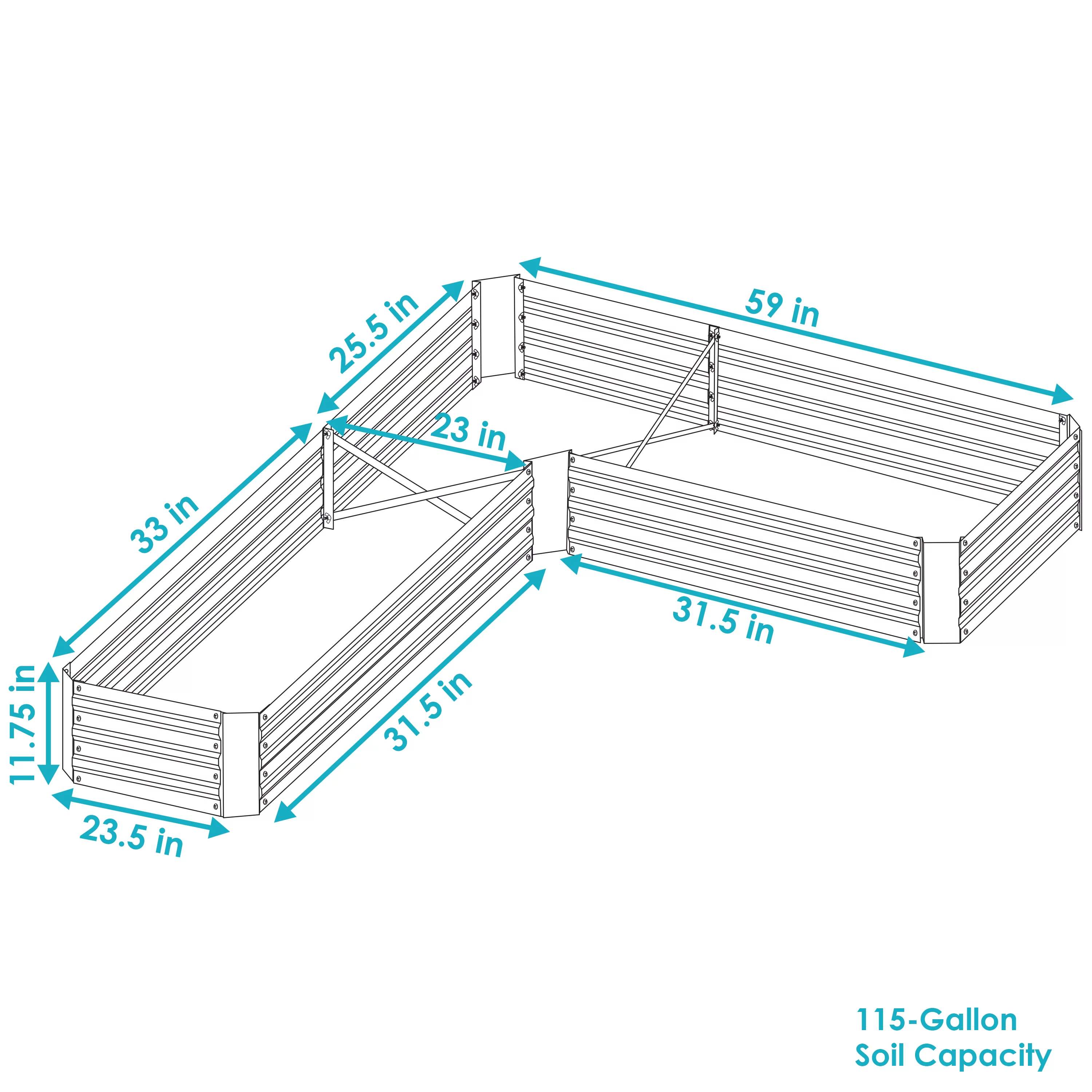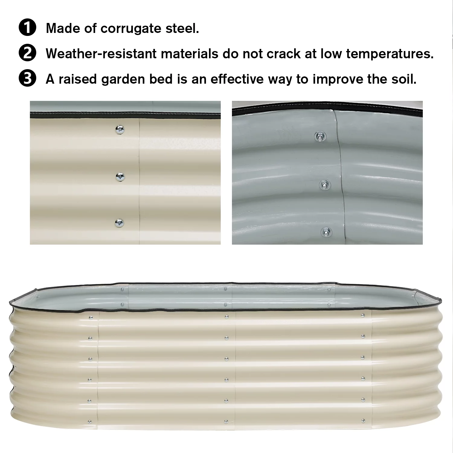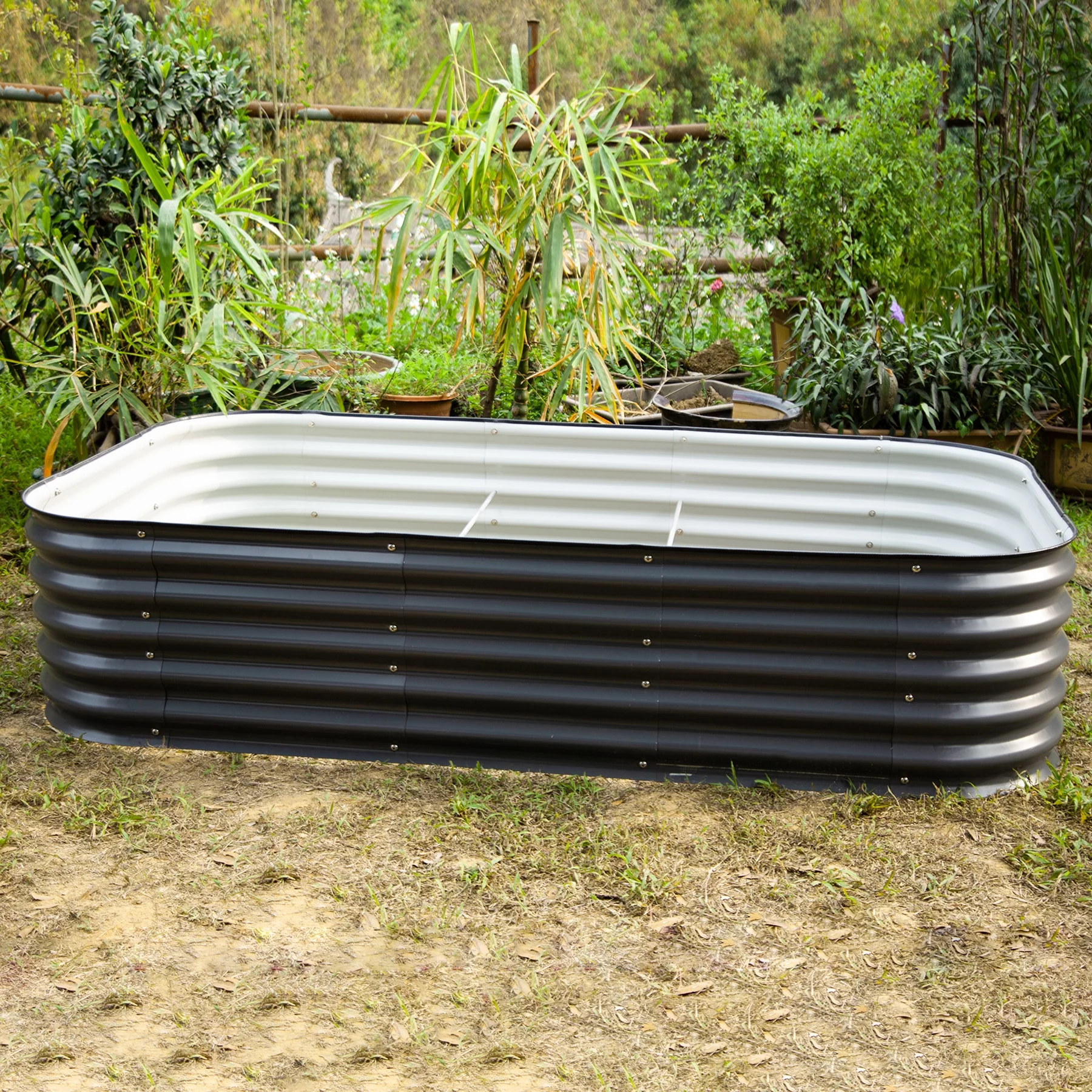 VEGEGA 17" Tall U-Shaped Large Size Grey Metal Modular Corrugated Raised Garden Bed Kit