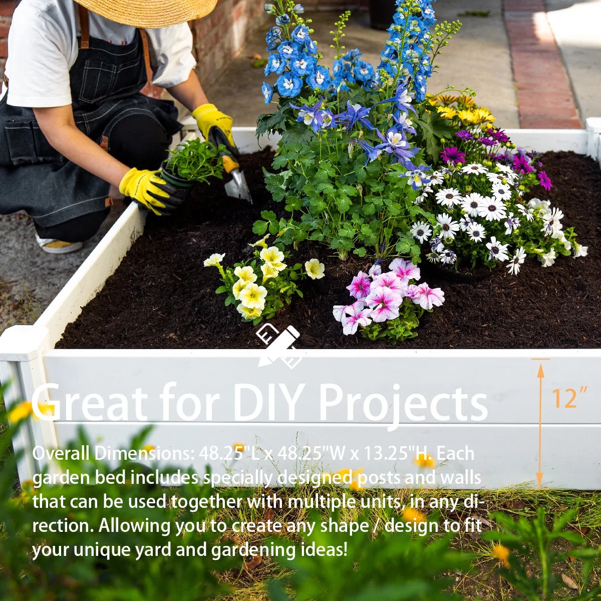 48" x 48" Patio Raised Garden Bed Vegetable Flower Plant Garden Bed Patio Backyard Grow Flowers Plants Planter, White