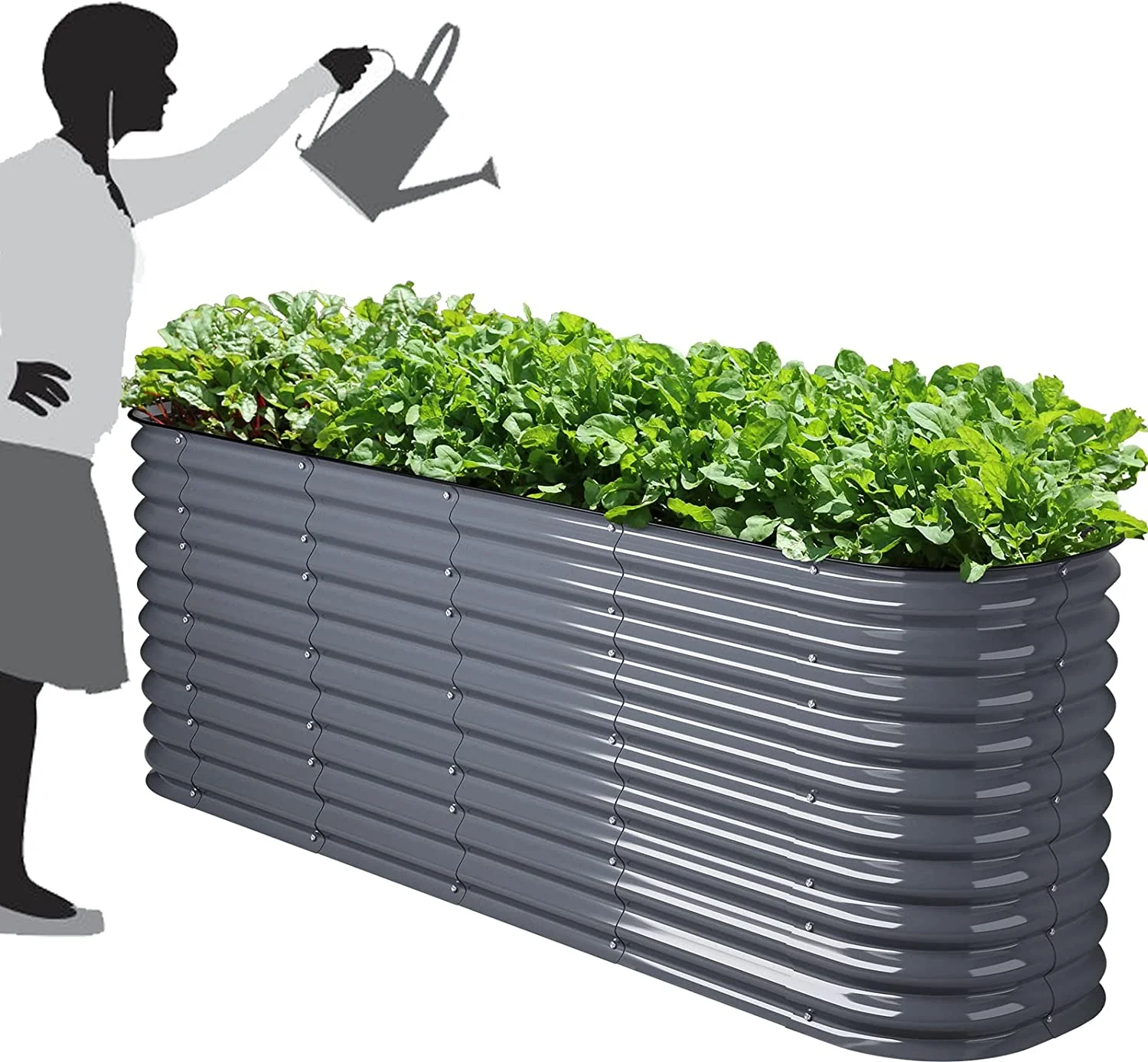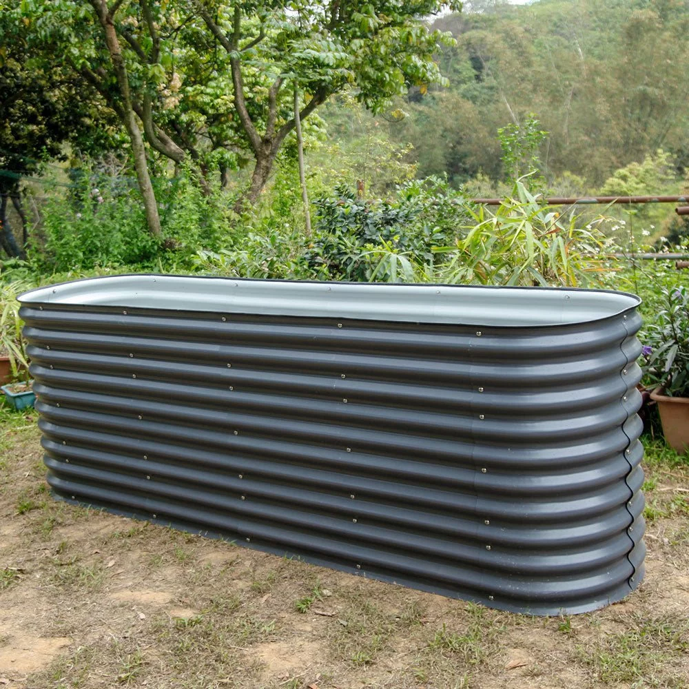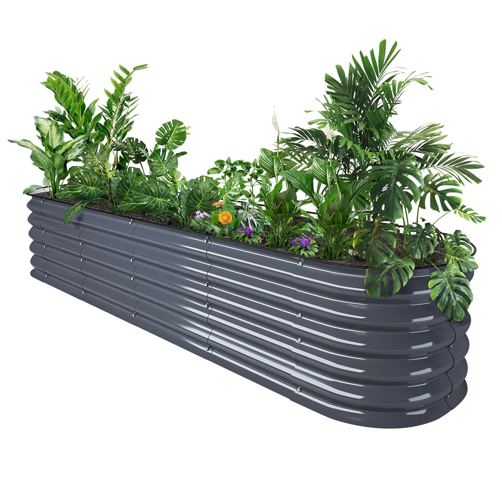 VEGEGA 17" Tall 8'X2' Metal Corrugated Raised Garden Bed Backyard Patio Grow Flowers Planter, Grey (9in1)