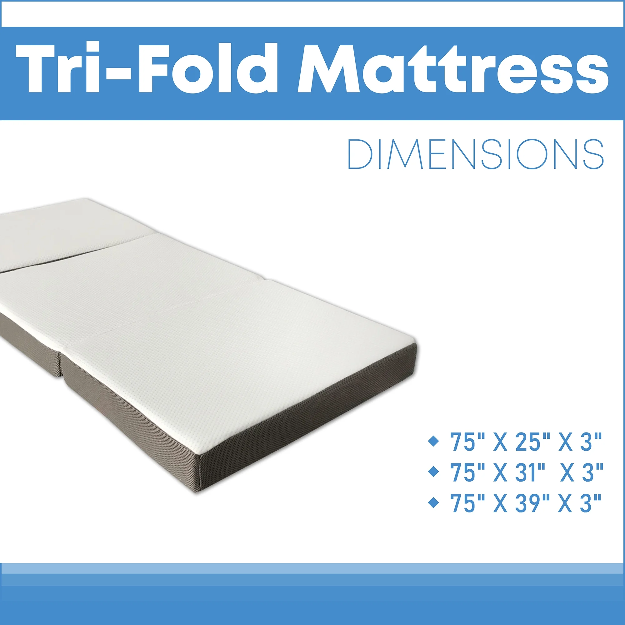 Continental Sleep By Sunset, 3” Memory Foam Tri-fold Mattress, Good for Kids and Adult, Twin.