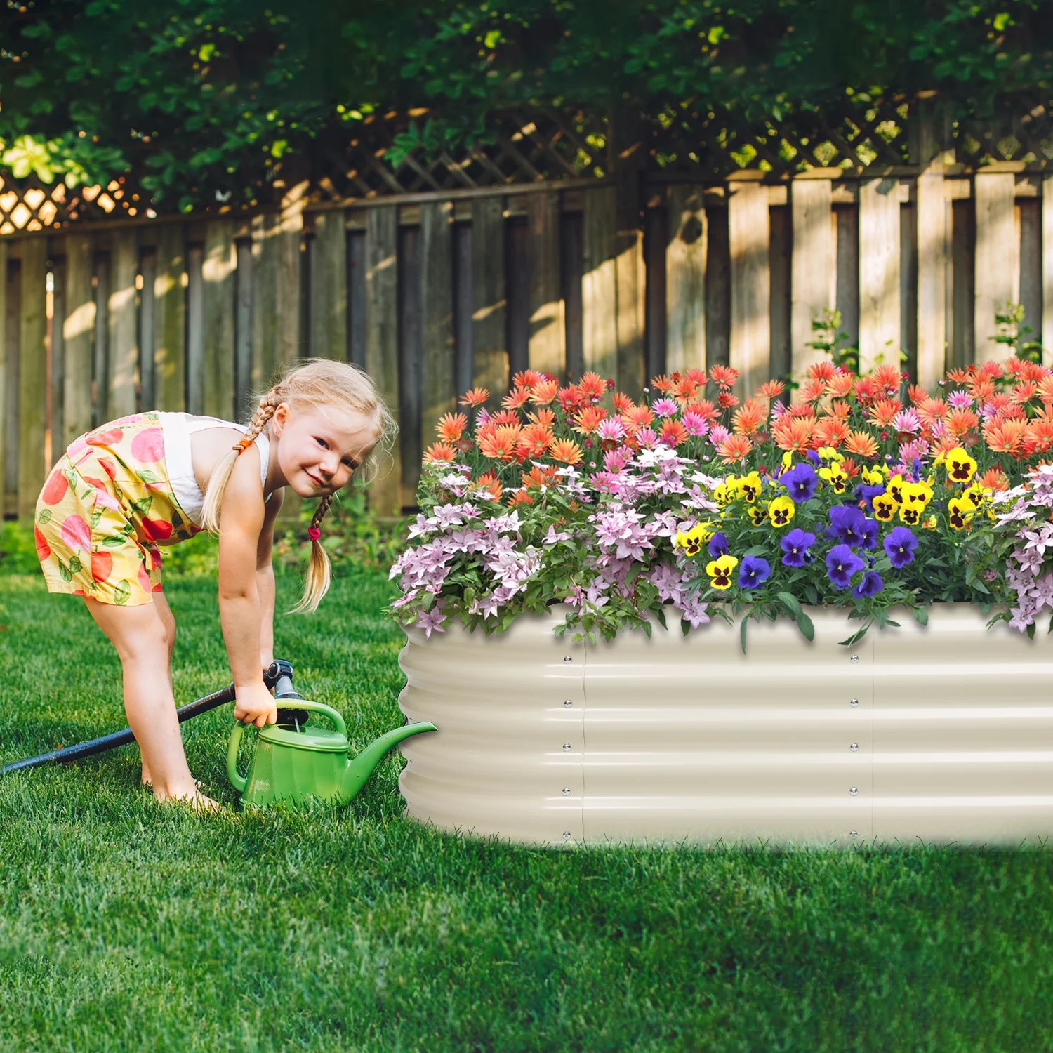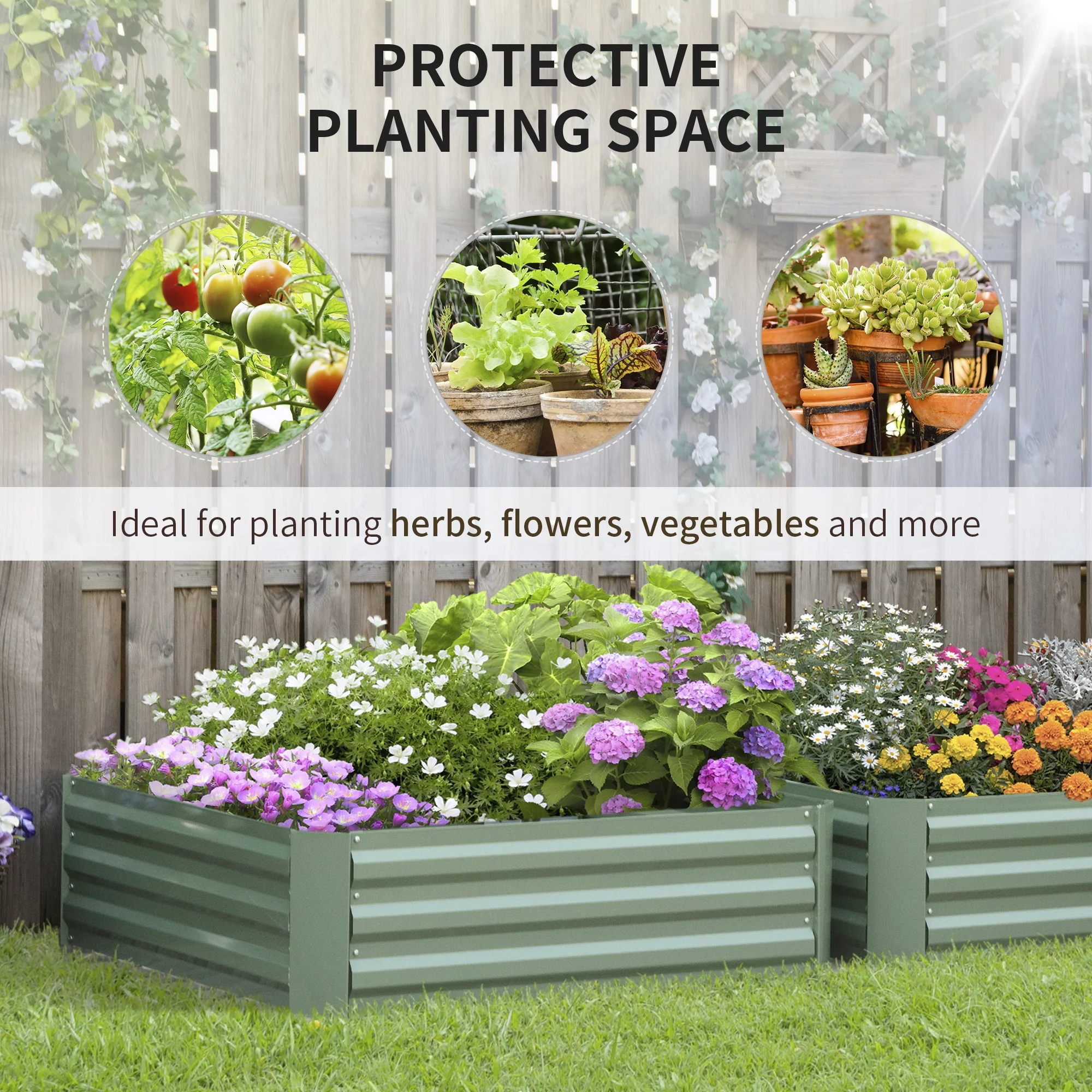 Aoodor 4 in 1 Modular Galvanized Metal Raised Garden Bed for Gardening