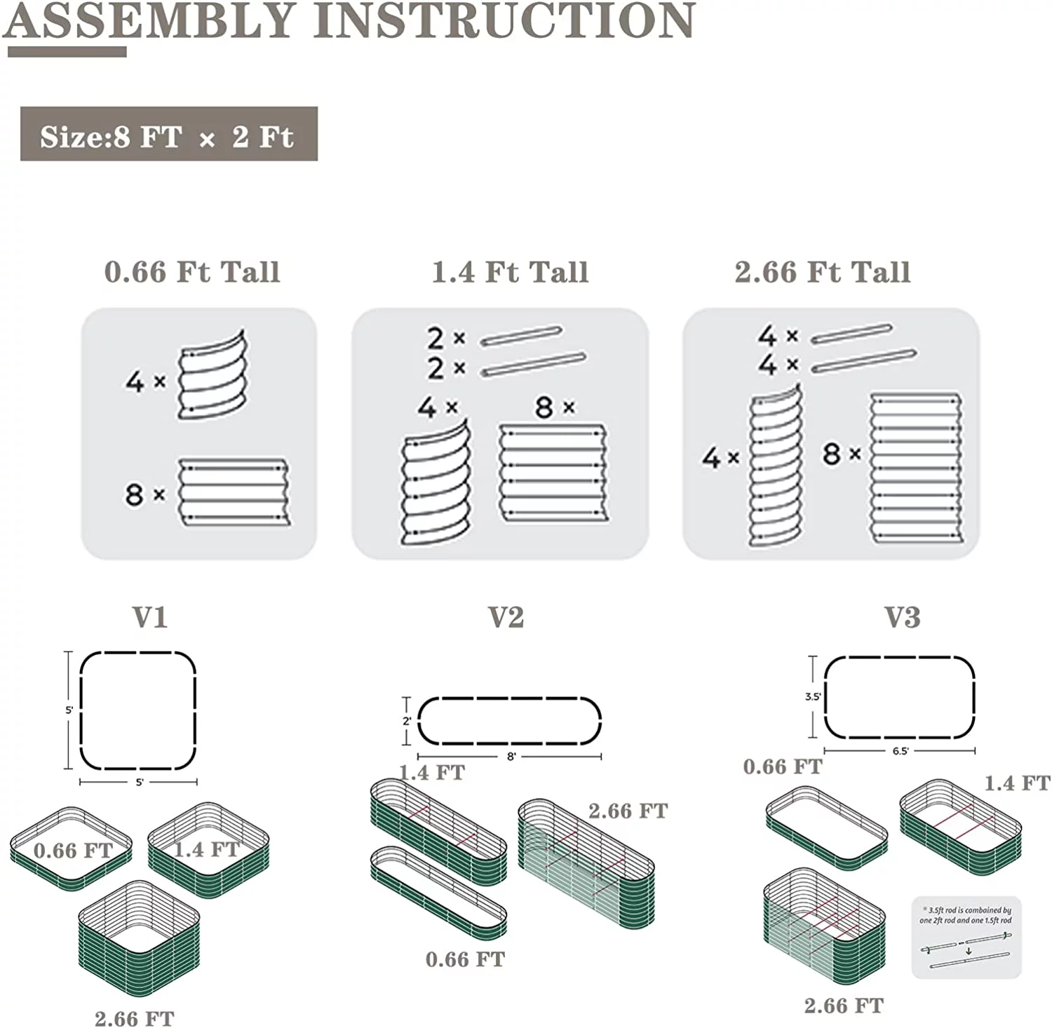 Vego Garden Raised Gardening Bed Kits 11" Tall 9 in 1 8ftx2ft Metal Raised Planter Bed Olive Green