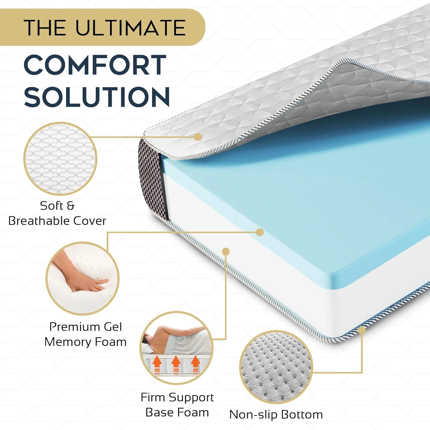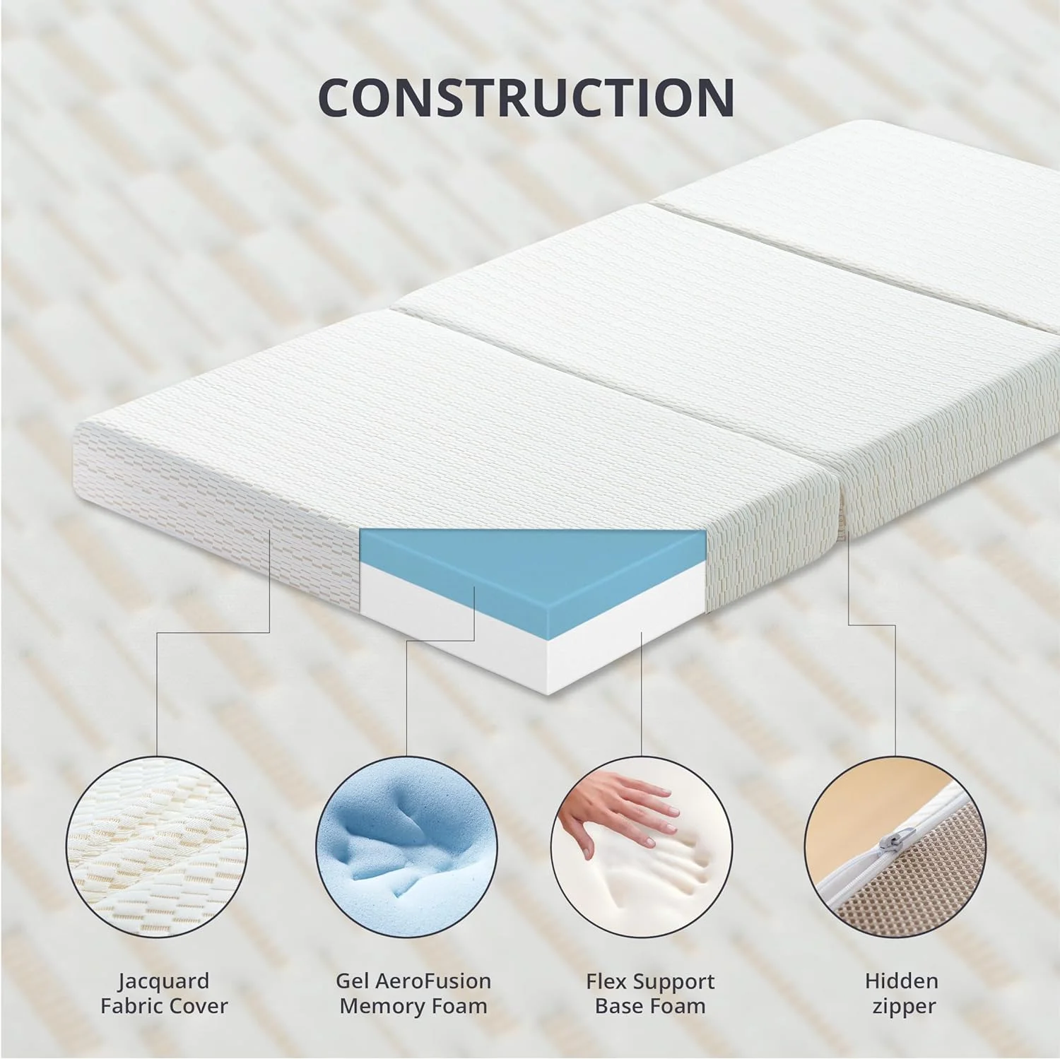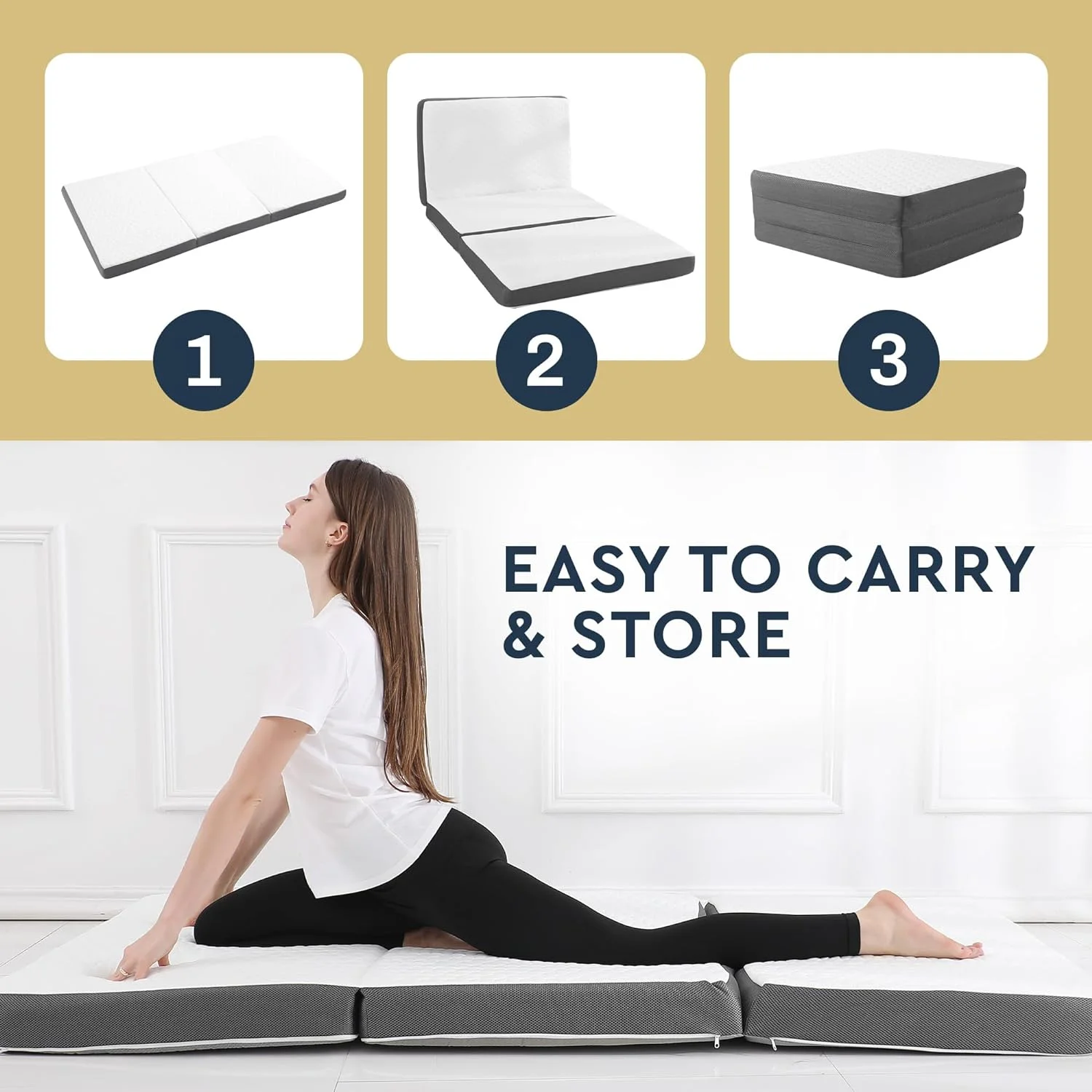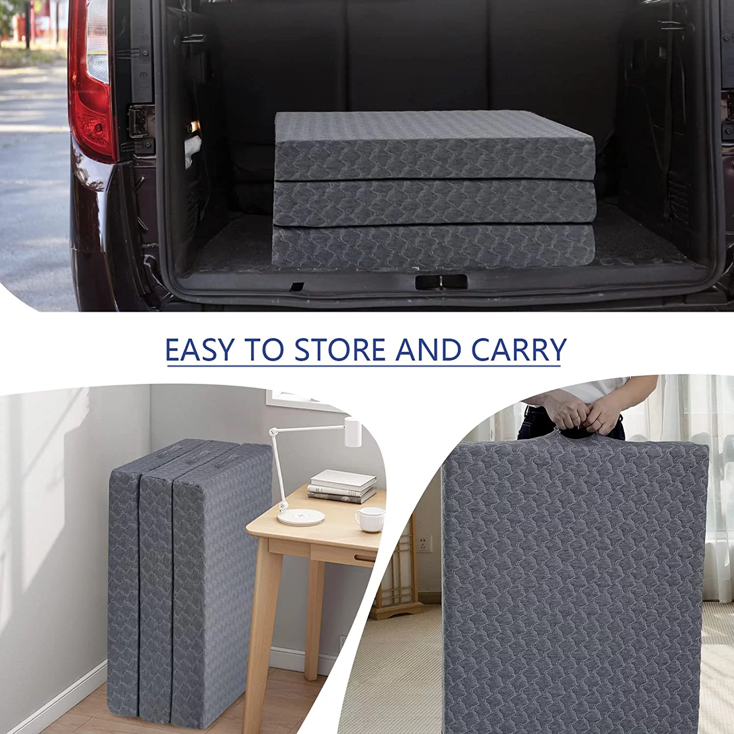 Onetan Folding Mattress, 3", 4" & 5" Gel Memory Foam Portable Tri-fold Mattress. 4-inch 39-inch