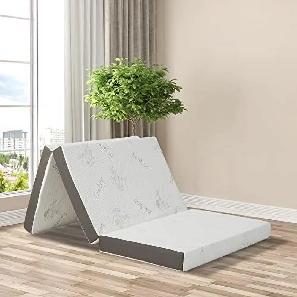 4 inch Tri Folding Gel Memory Foam Mattress, Portable Mattress for Camping, Medium Firm, Twin XL