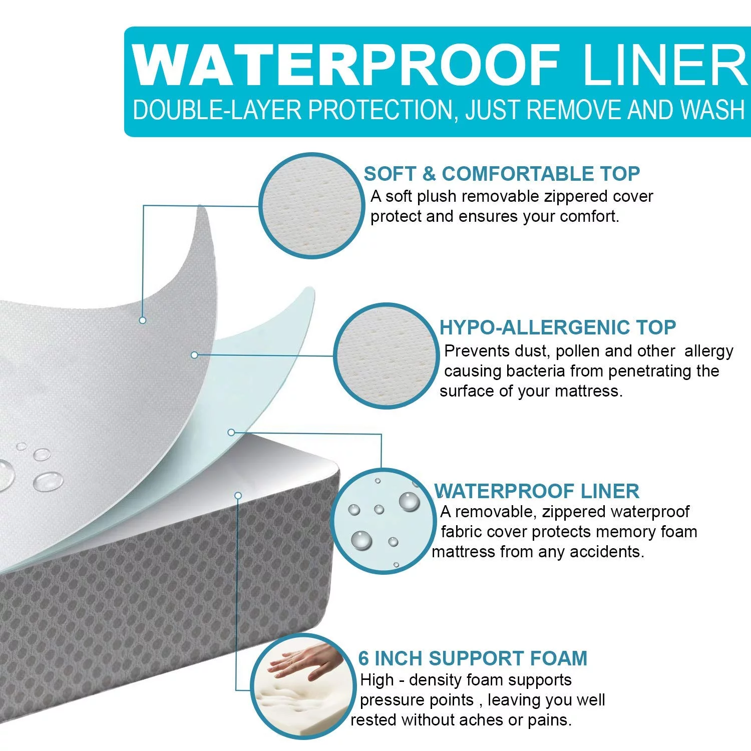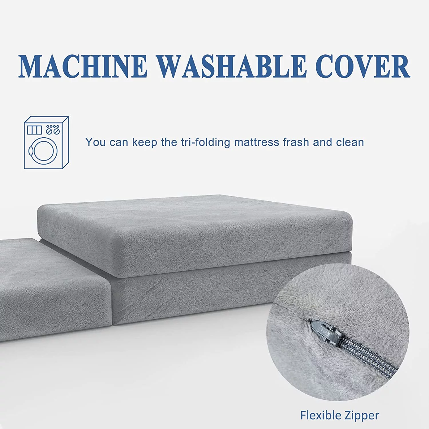 Samay 6 Inch Tri Folding Foam Mattress - Includes Waterproof Mattress Protector and Washable Cover