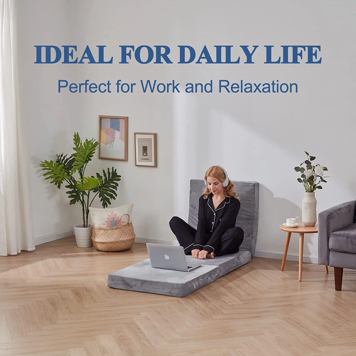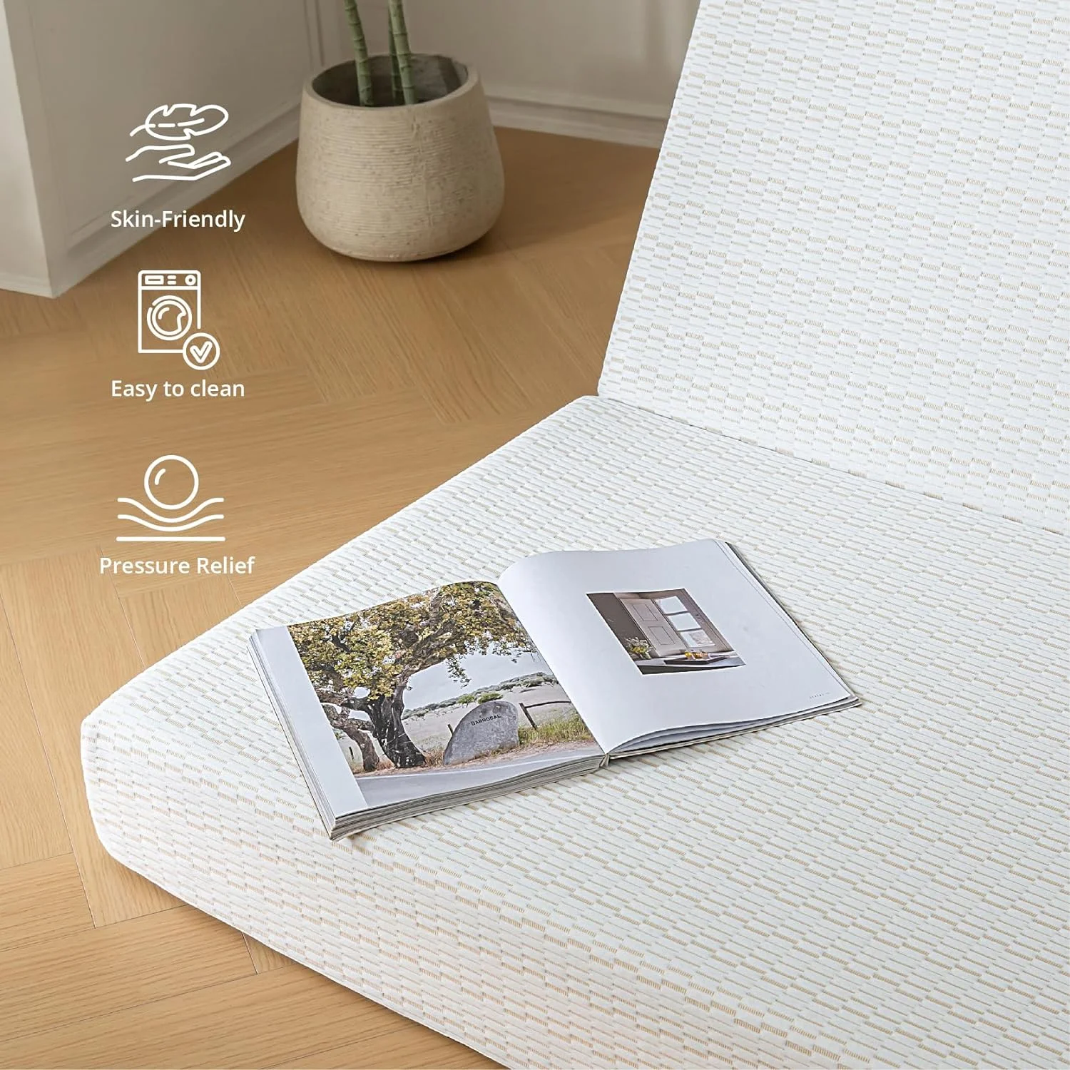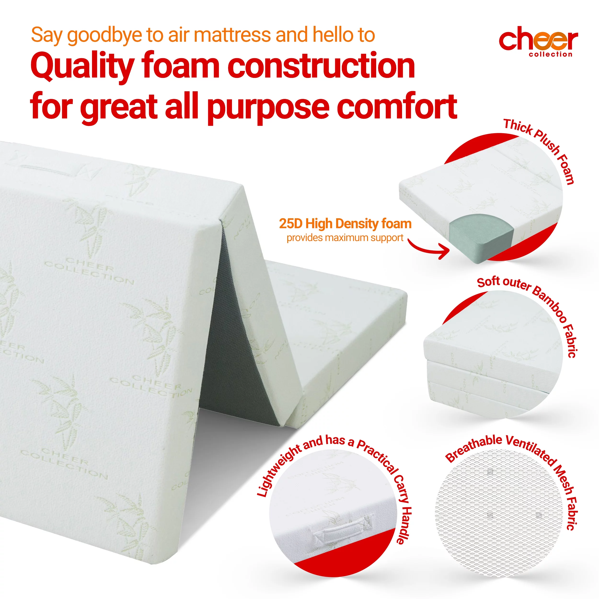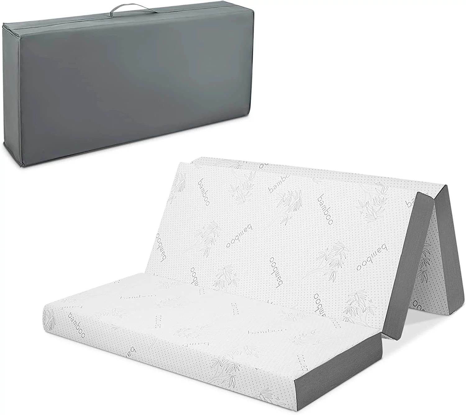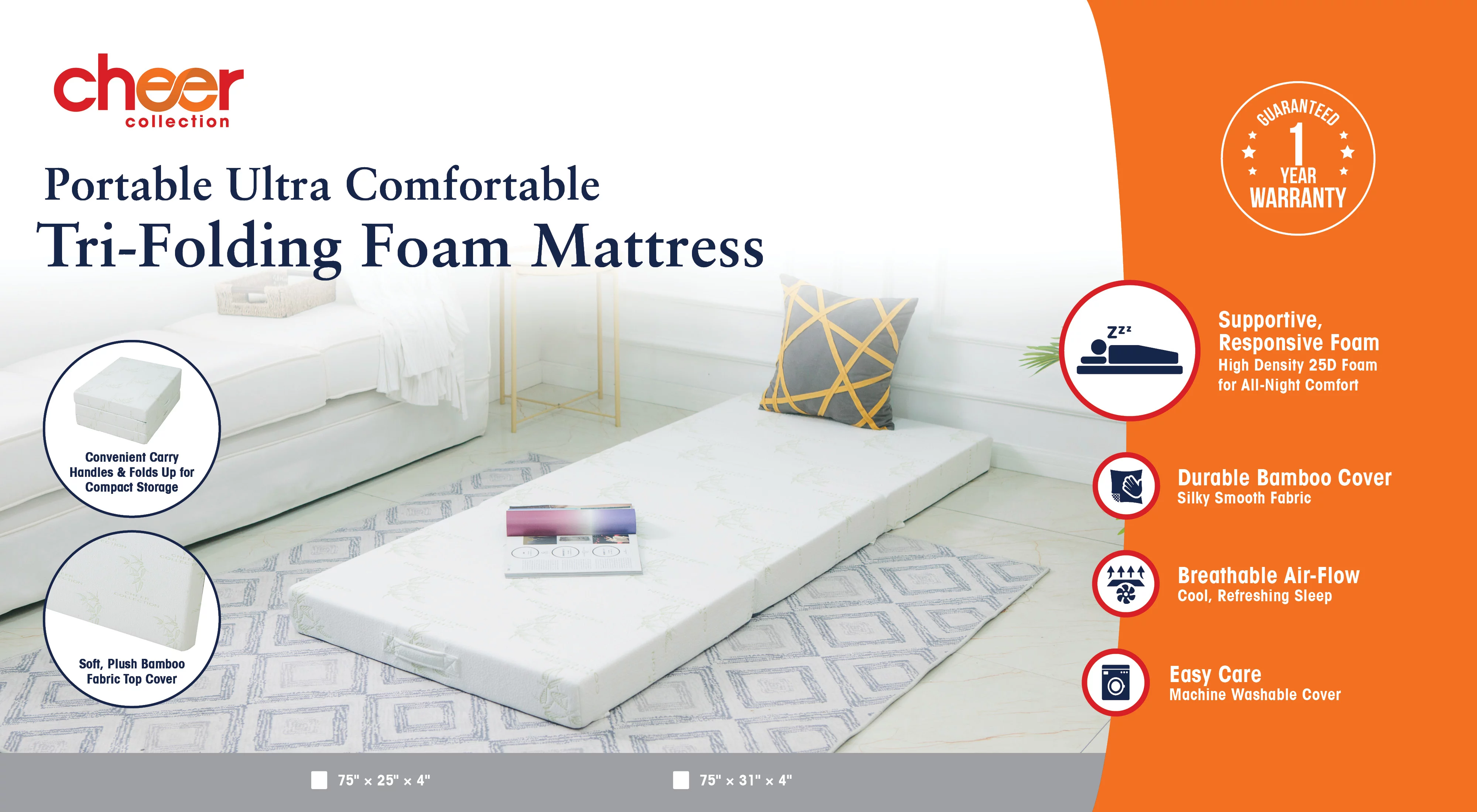 Cheer Collection Tri-Fold Futon Mattress for Guests with Soft Bamboo Washable Cover, 75" x 31" x 4"