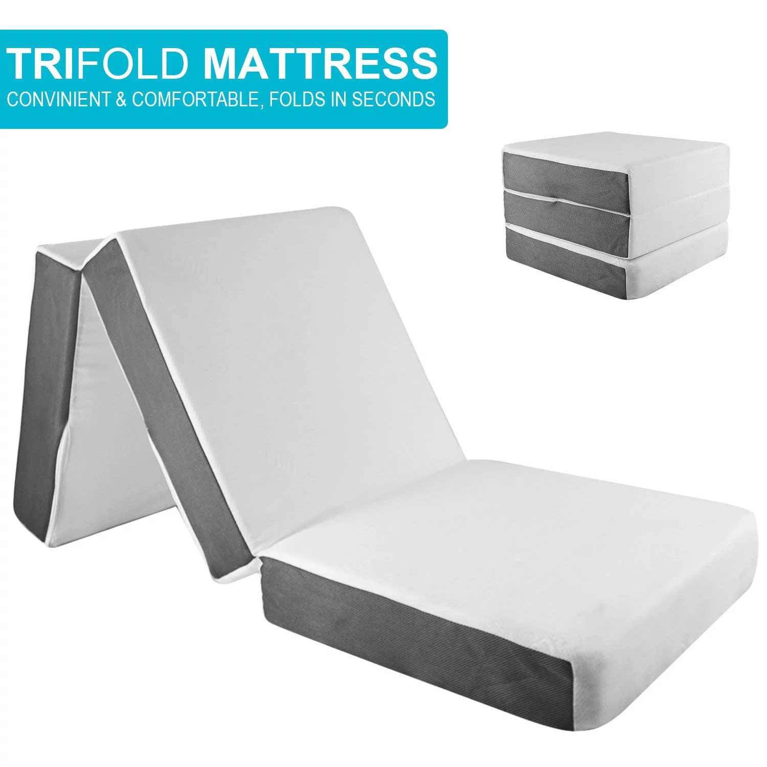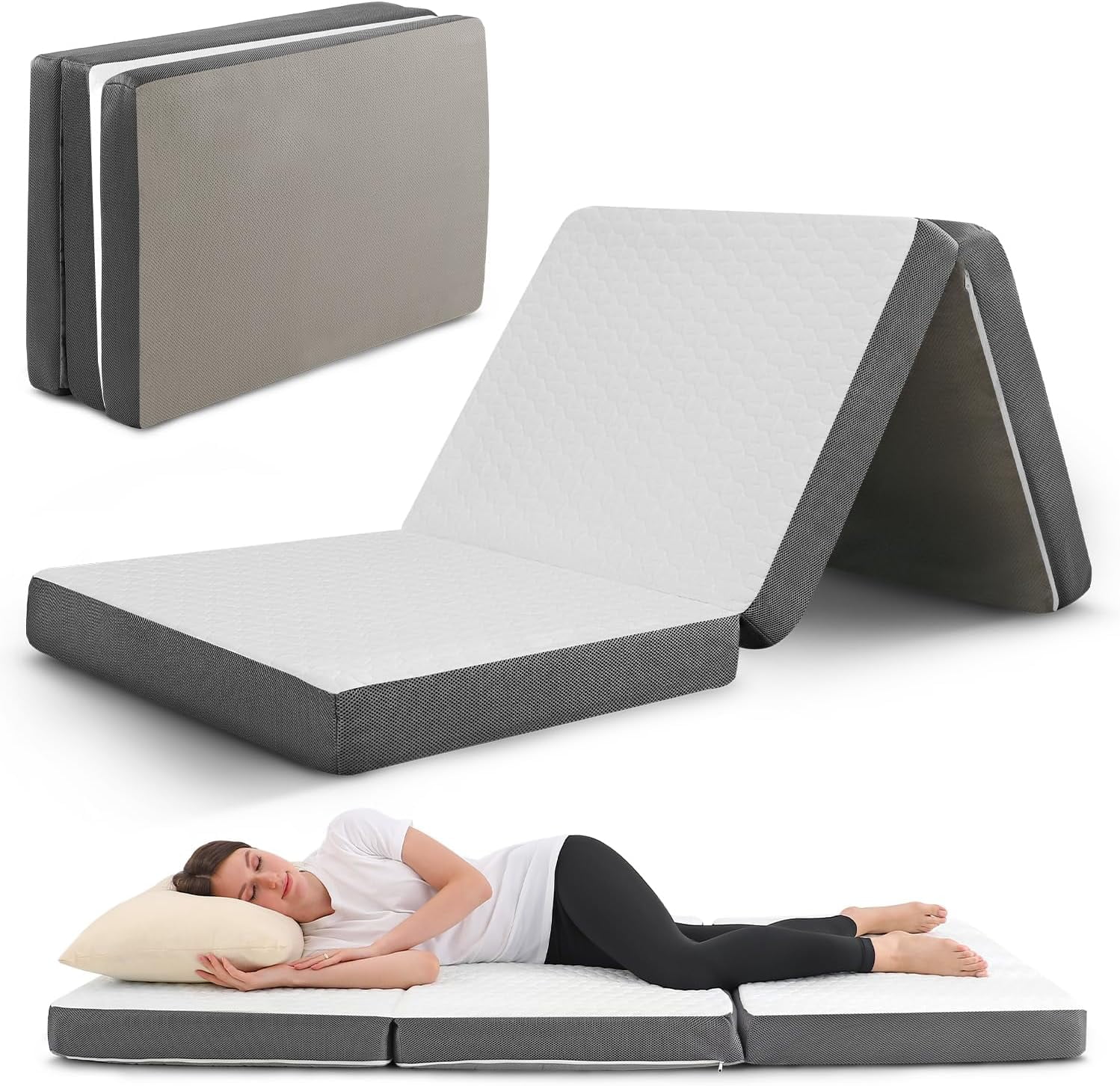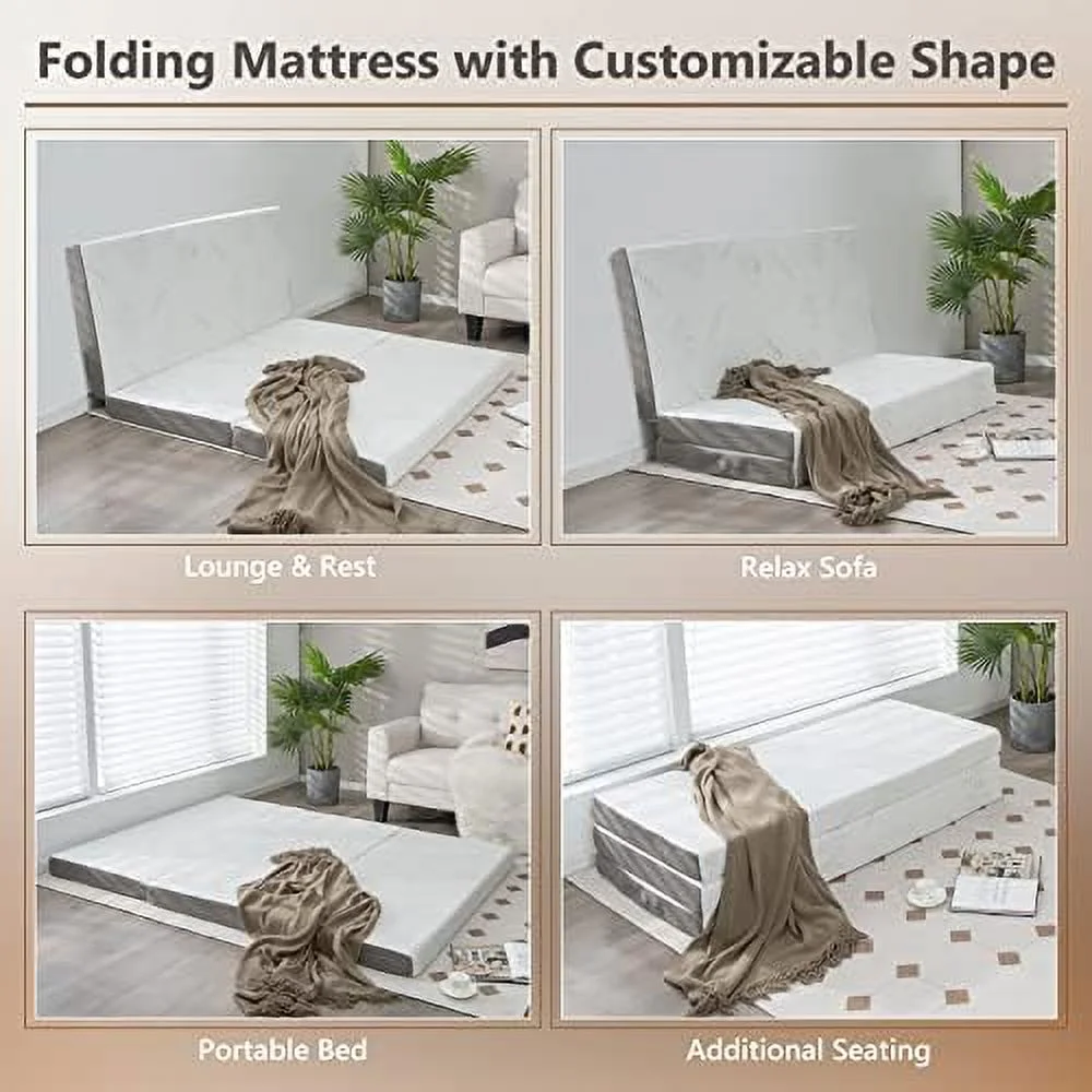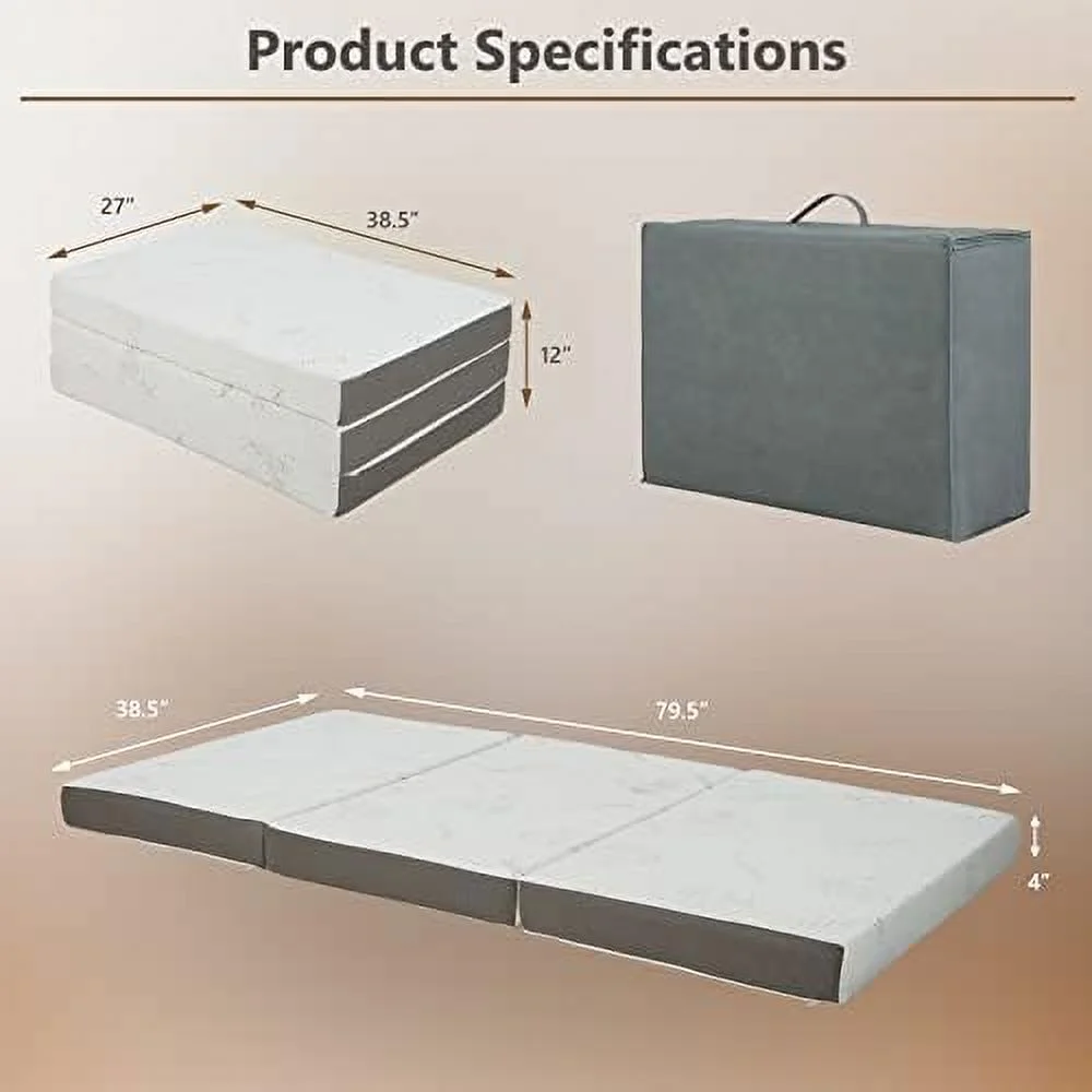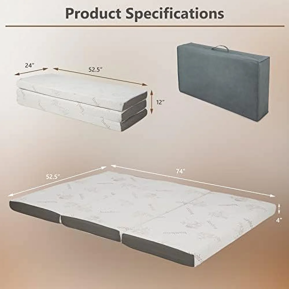 Onetan ,Folding Mattress, 3" & 4" Gel Memory Foam Portable Tri-fold Mattress 4-Inch 25-Inch